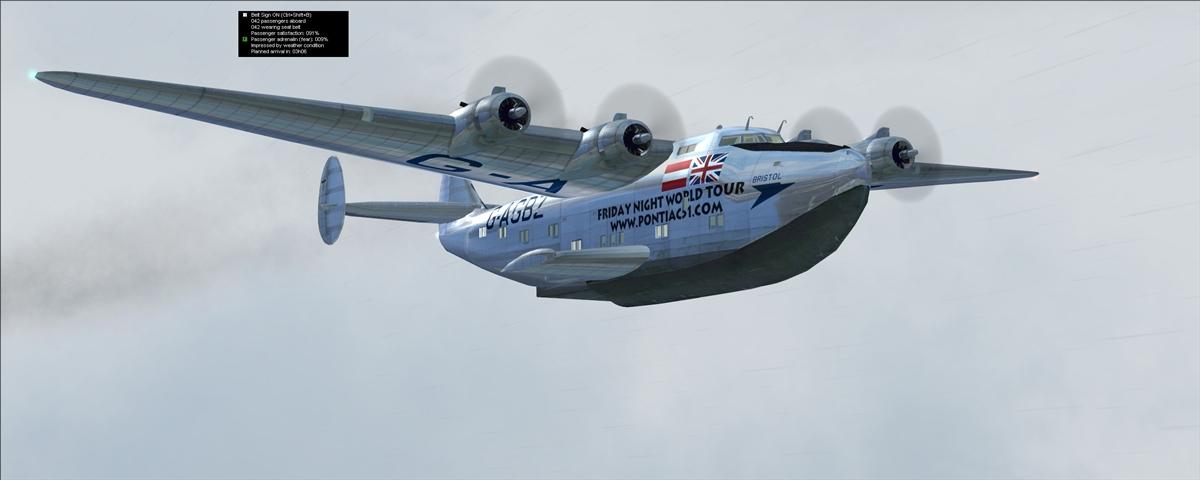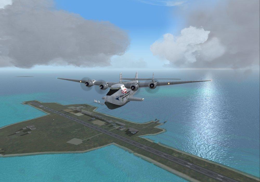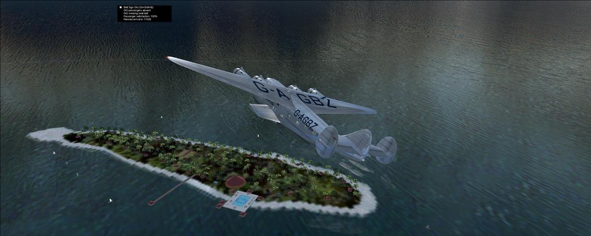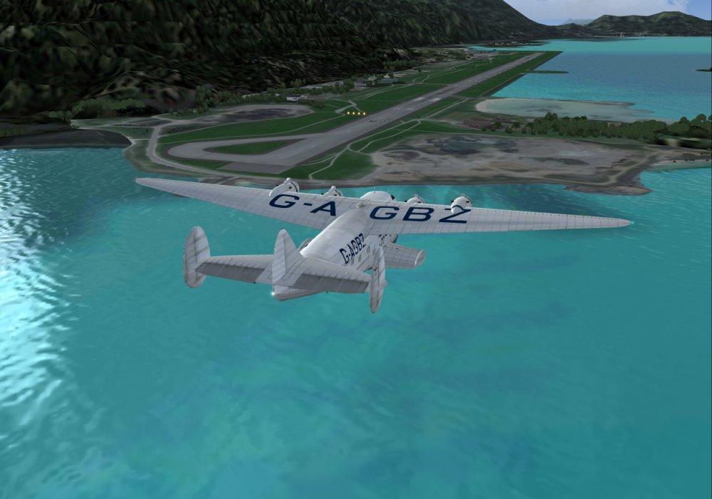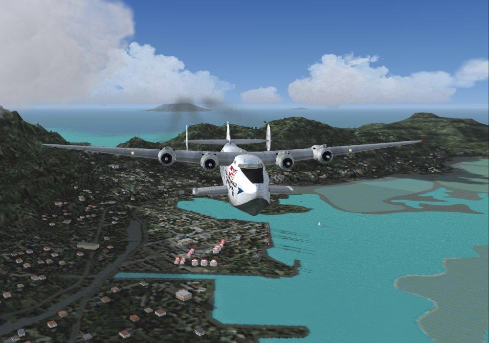 Dieser Flug schien ein Langweiliger werden zu wollen. Der angesagte Wind sollte mir guten Vortrieb möglich machen, ich setzte eine ehrgeizige Ankunftszeit. Doch wie das so oft ist, macht Mutter Natur einem einen Strich durch die Rechnung. So war es die ganze Zeit über sehr böeig und ich musste permanent nachkorrigieren um einen halbwegs stabile Fluglage zu erreichen. Ausserdem hatte ich den hinteren Gepäckraum überladen und hing dementsprechen wie ein nasser Sack im Wind. Ein Ausfahren der Klappen auf 1° half, jedoch gingen die Klappen in dieser Positon fest. Mit dieser Konfiguration war, selbst als der Wind sanfter wurde, kein Halten des Zeitplans mehr möglich, ich wollte nur noch ankommen. Die Seychelles sind ein Reise wert, schon von weitem sieht man die Hauptinsel, dann geht es im Anflug durch ein kleines Tal, über die grösste Staddt der Insel drüber hin zur Landebahn. Ich überflog alles, drehte um und kam im Endanflug etwas lang aufgrund der nicht einsetzbaren Klappen. Aber unten ist unten, einmal umdrehen und festmachen. Und genau dabei habe ich wohl einen Felsen übersehen und setzte die B314 auf Grund. Der Schaden war mit 34.000 Euro gering (Kaufpreis 9 Mill. Euro), doch meine Bewertung war logischerweise im Eimer.
