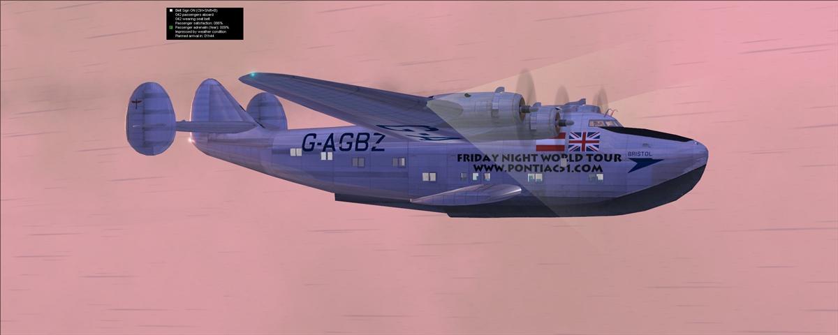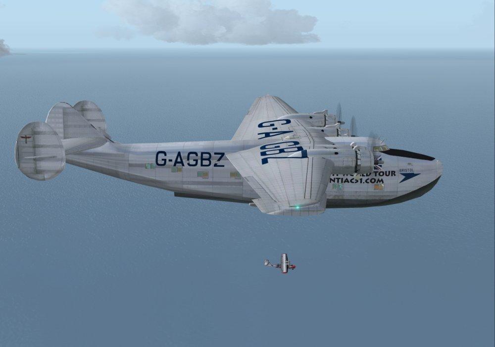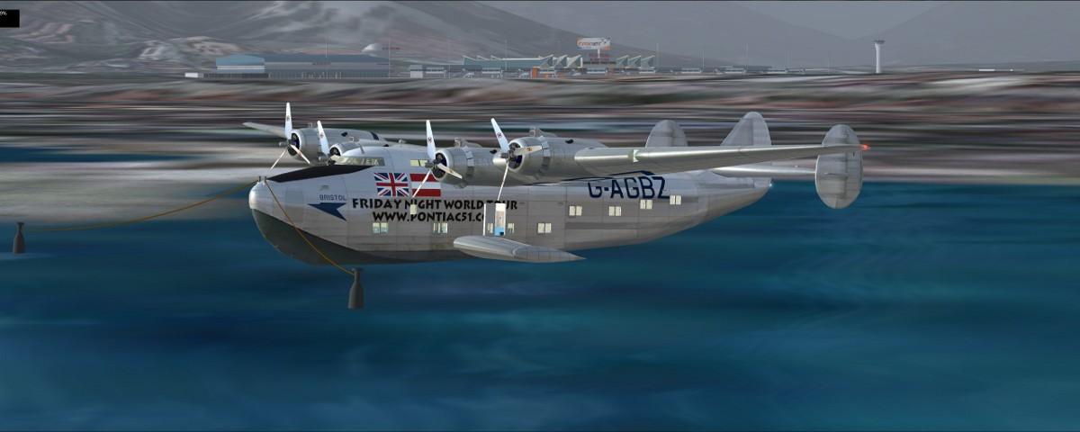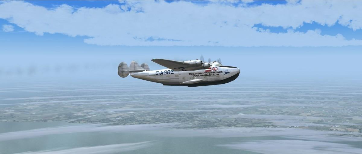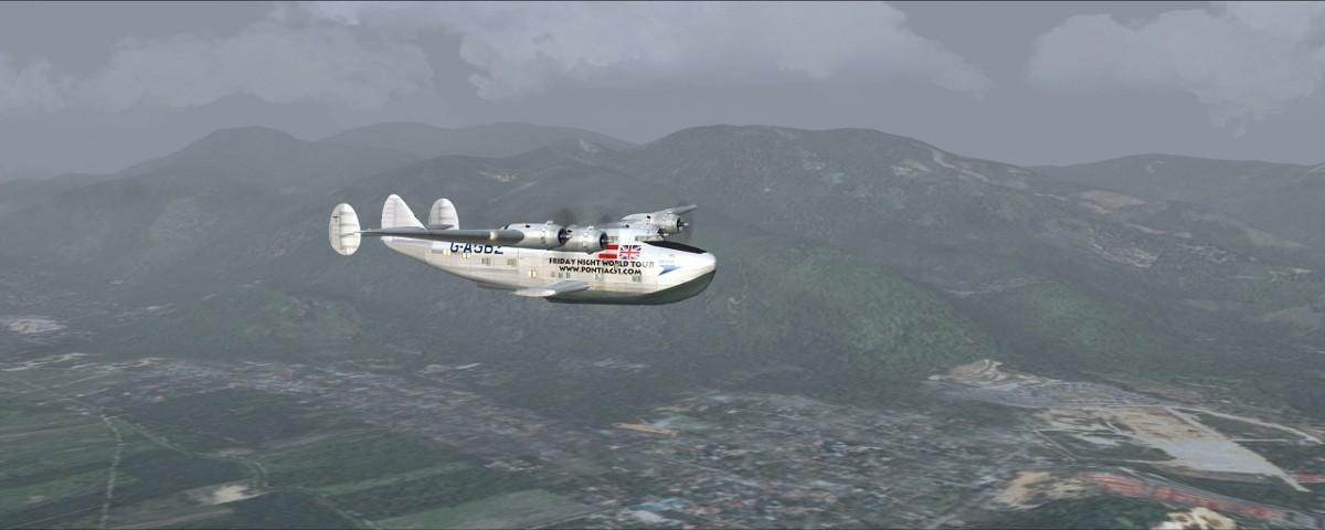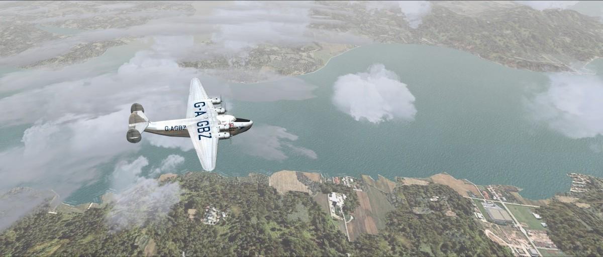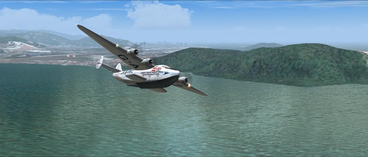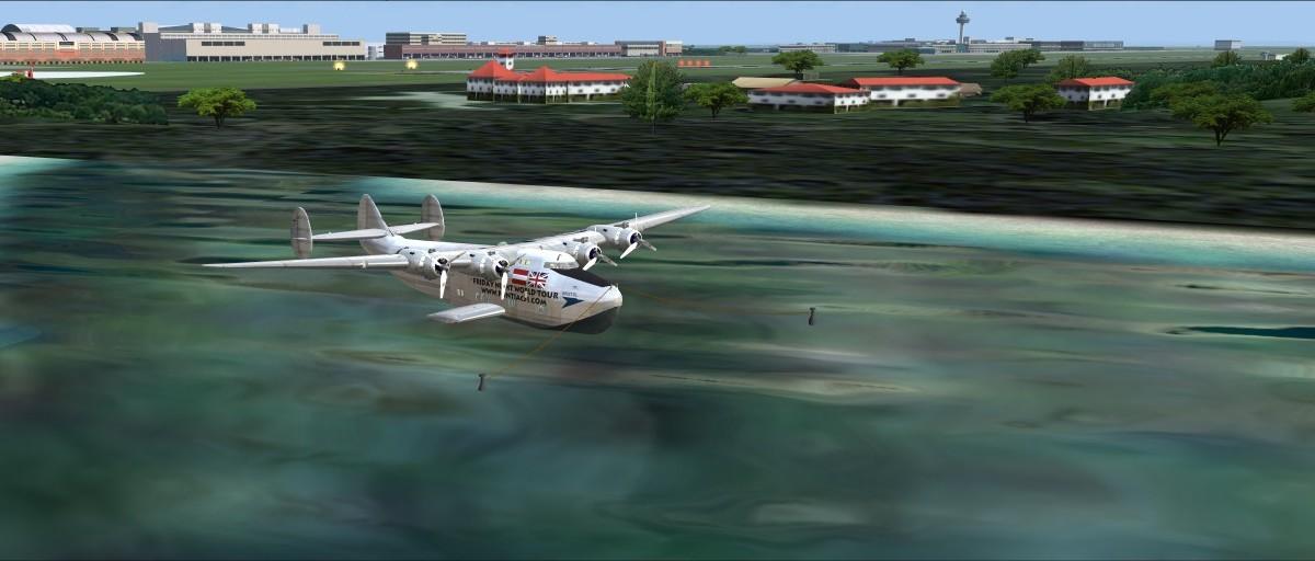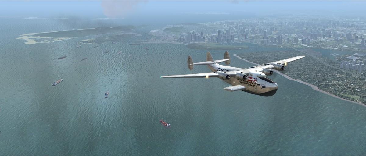 Nach dem eingeschobenen Stopp ist dieser Flug auch etwas kürzer. Singapore stand schon lange als Ziel fest, zu schön liegt diese Scenery. Die B314 schnurrt mit leichtem Rückenwind die Küste entlang, ein paar Wolken am Himmel stören den Flug kaum. Beim Anflug auf Changi überholt mich eine MD11. Dann rührt sich was im Funkgerät, Singapore Radar ist online. Ungläubig fragt mich der Controller 2mal und dann auch noch per Chat, ob es sich wirklich um ein Flugboot handelt. Ich bekommen alle gewünschten Freigaben und bin quasi eigenverantwortlich unterwegs. Ich umrunde die Insel um am Nordende des Flughafens beim Changi Golf Club zu landen. Gerade im Anfug setzt aber auch bereits erwähnte MD11 zur Landung an und ich muss abdrehen. Beim 2. Anflug klappts und ich melde mich beim Controller ab. War für uns beide das erste Mal: Er hatte noch nie ein Flugboot und ich noch nie einen Controller bei einer Landung mit der B314. Das Desaster folgt zum Schluss: Im Wasser ist dank schlechter Programmierung ein 2m hoher Spalt, über den ich beim Taxi drüberrutsche. FSPassengers erkennt das als Absturz, ganz toll. Wieder ein perfekter Flug, für den es keine Punkte gibt.