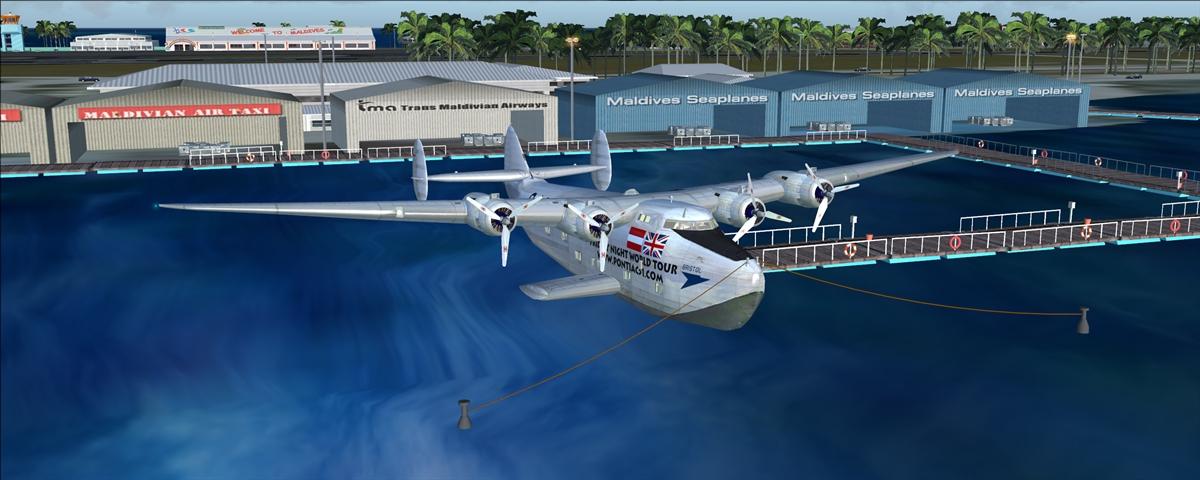 Der bisher längste Flug, den ich jemals geflogen bin, nonstop und ohne Zeitbeschleunigung. Zugegeben, die Aussicht 9h im Cockpit sitzen zu mĂĽssen, löste nicht nur positive Erwartungen in mir aus. Aber mein Reisekollege Stefan Hirche kam mit einer Meldung, die mich aufhorchen liess: ‘Ich flieg heut mit der Catalina.’ Schön, schön, im Formationsflug vergeht die Zeit gleich schneller. Und so starteten wir im Morgengrauen und liessen die Seychellen hinter uns, um einmal durch den indischen Ozean zu kreuzen. Vollbeladen mit Sprit war der Start alleine schon eine Herausforderung, ich machte aber alles richtig und sogar meine Zylinderkopftemperaturen blieben diesmal innerhalb der vorgeschriebenen Werte. Während der Reise gab es nur ein paar Mal eine kräftige Windänderung, trotzdem flogen wir permanent mit RĂĽckenwind. Meine Crew hatte alle Hände voll zu tun, 3mal wurde Essen serviert, einmal gabs nen Snack und Drinks fĂĽr alle gab es auch 3 mal. Das Wetter meinte es wirklich gut mit uns, erst in Male beim Endanflug kam auf einmal Dunst auf. Die inzwischen tiefstehende Sonne blendete mich zusätzlich und ich hatte MĂĽhe die Insel zu erkennen. Schlussendlich hat aber alles perfekt geklappt und ich konnte nach dem Vertäuen zufrieden und todmĂĽde auf mein Kissen sinken.