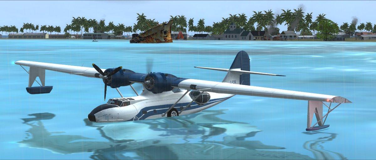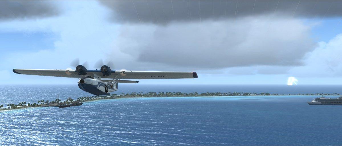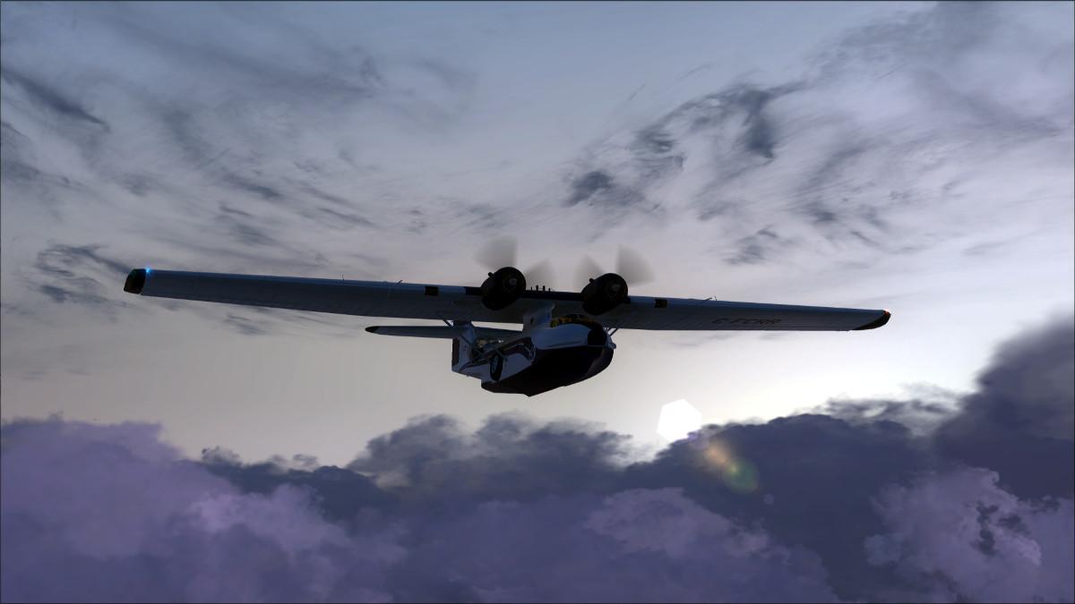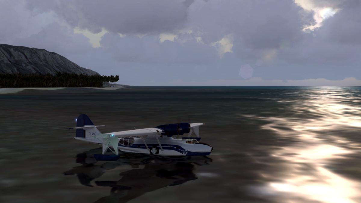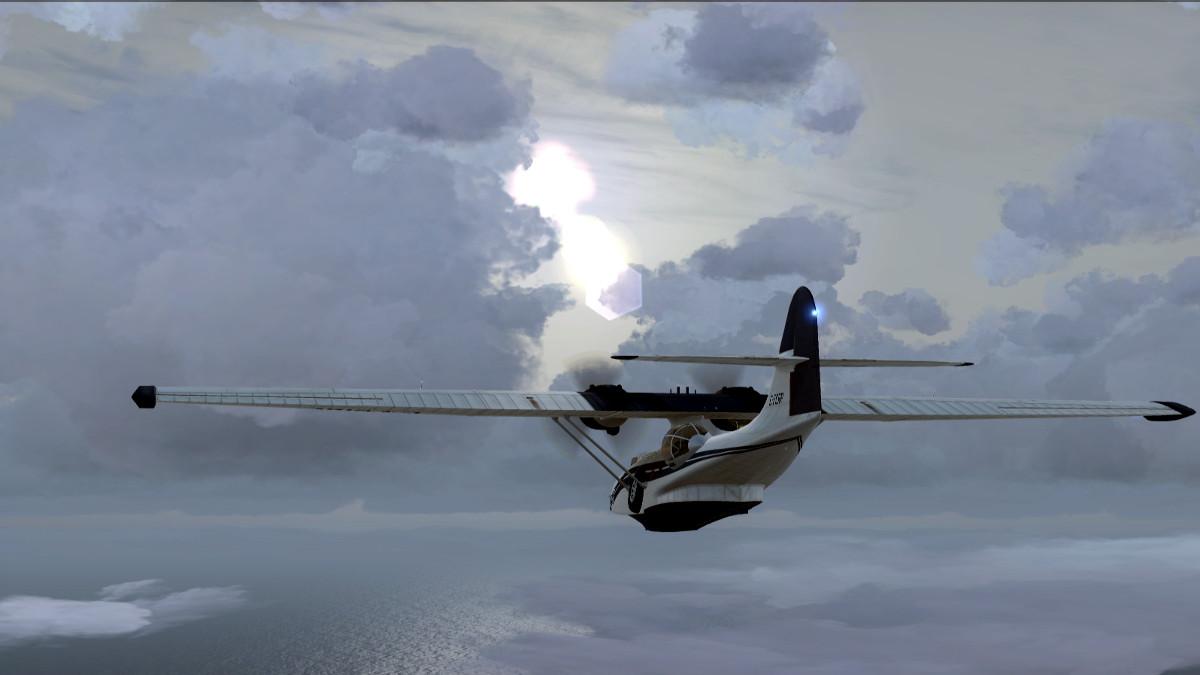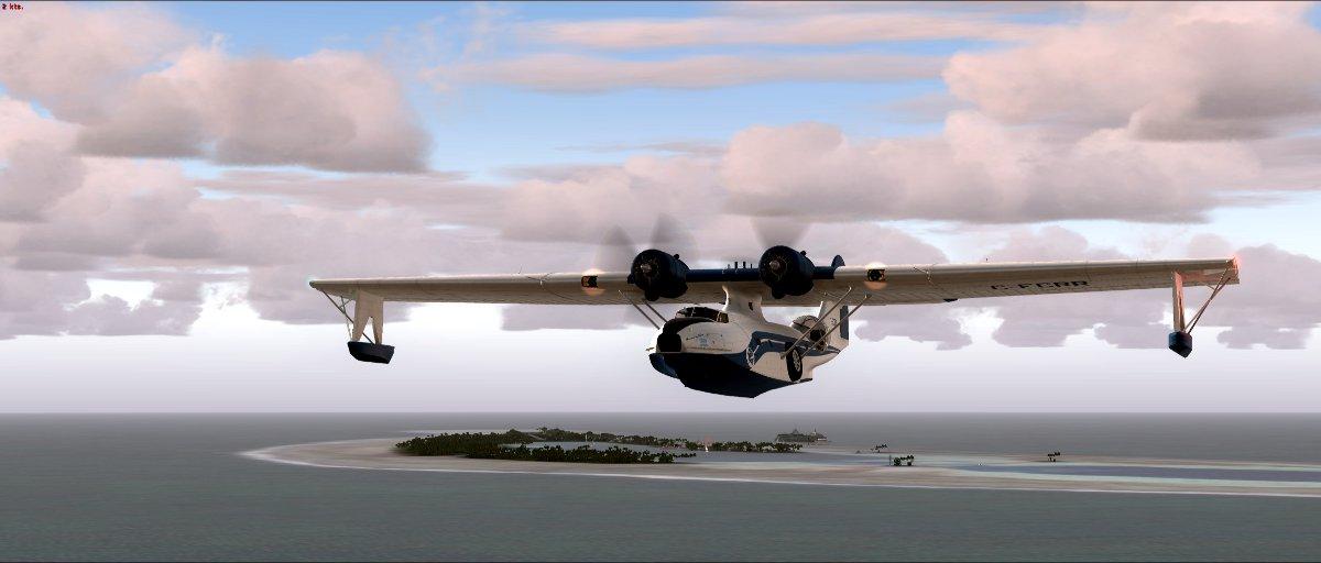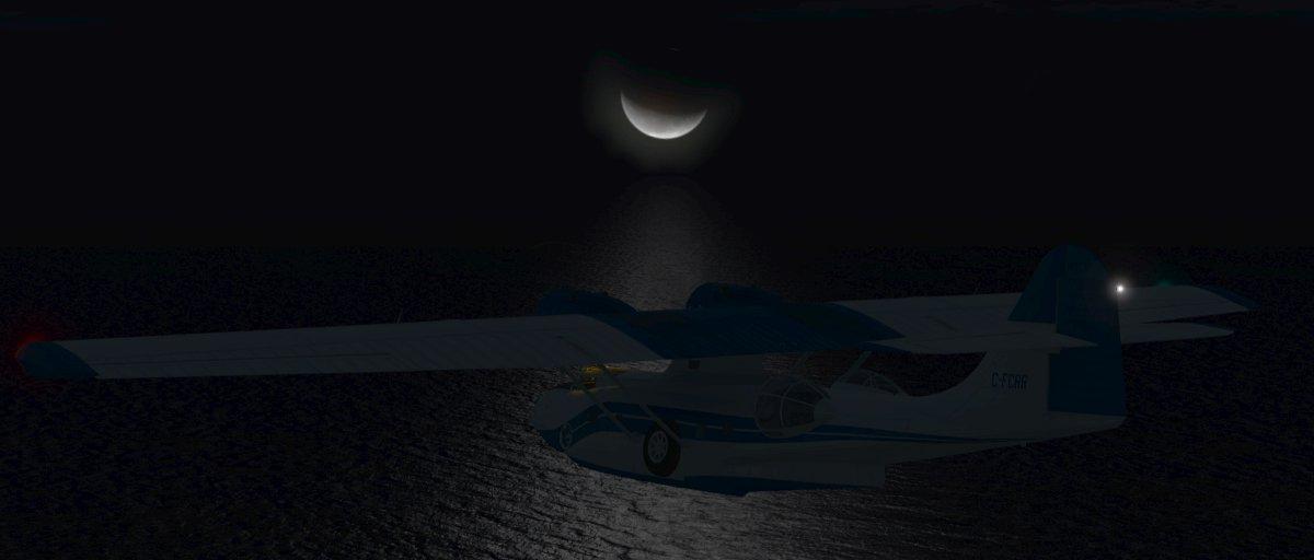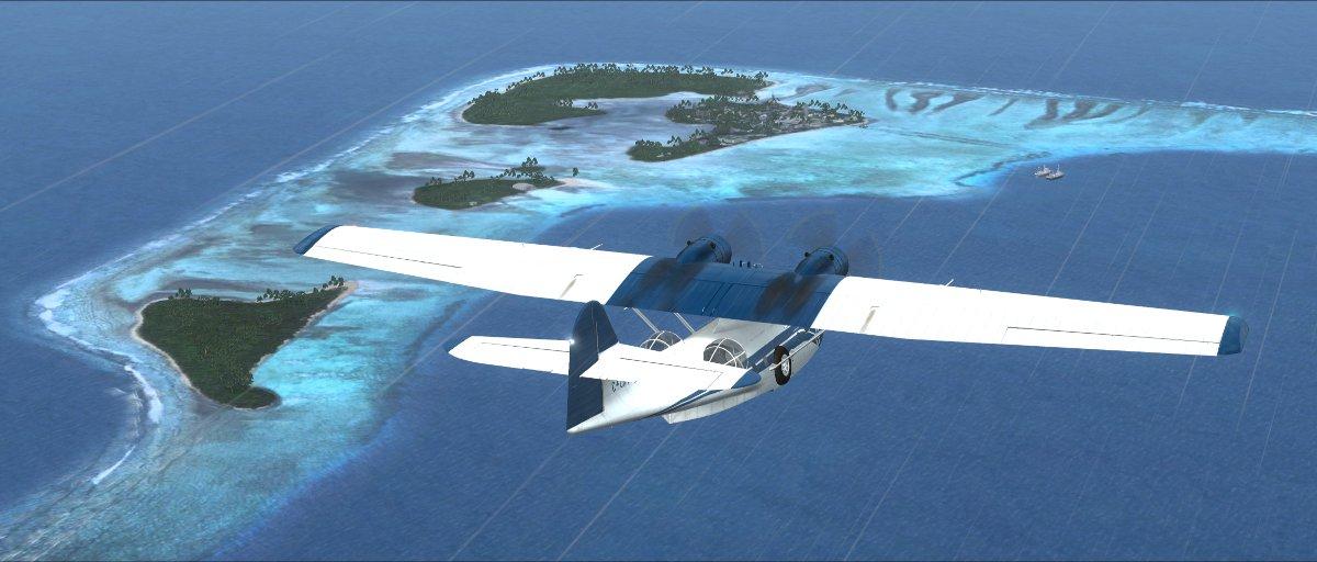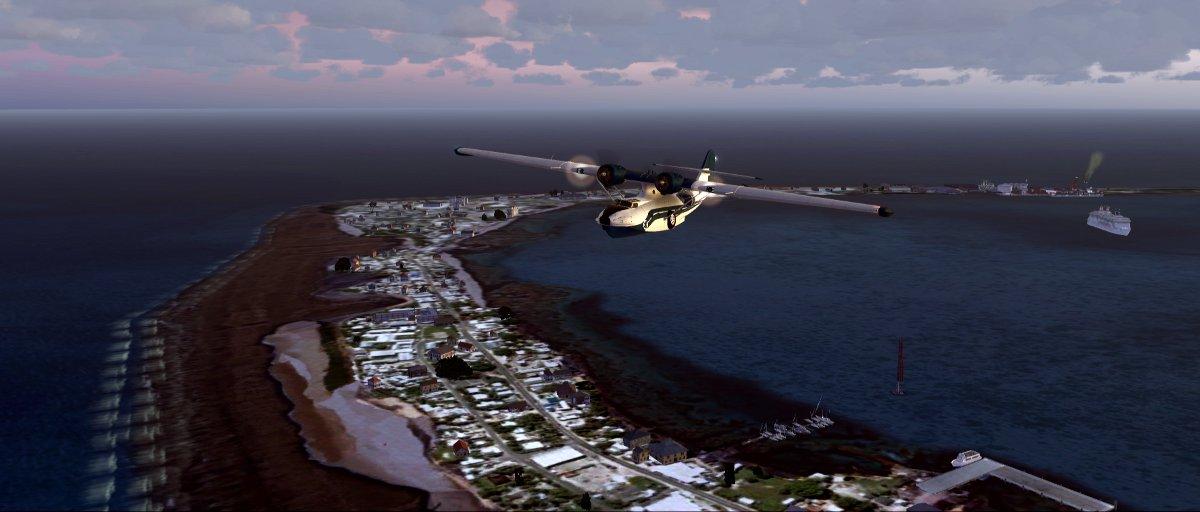 Der lĂ€ngste Flug meine Sim-Karriere steht bevor, von den Marshall Islands geht es nonstop nach Hawaii. Um möglichst frĂŒh die Nacht hinter mir zu haben, starte ich kurz vor Sonnenuntergang von den Marshalls (real ist es 0725). Schon bald ist es zappenduster, nur mit MĂŒhe kann ich den Besuch von Sebastian in seiner Thunderbolt ausmachen. Er kehrt nach etwas Geleitschutz wieder zu den Marshall Islands zurĂŒck. Als ich die Landelichter, die ich zur Erkennung angemacht habe, wieder ausmache, erwische ich den falschen Schalter und sitze im Dunkeln. Bange Minuten vergehen bis ich den Schalter fĂŒr die Cockpitbeleuchtung wieder finde. Puh! Stunden spĂ€ter scheint der Mond dann am Himmel und ich habe etwas mehr Orientierung (real ist es 1300). Nun kommt Besuch aus der anderen Richtung, Gunter umkreist mich mit seiner F18 von Johnston Island aus. Nach 11h Dunkelheit geht die Sonne wieder auf, ein erhebender Anblick (real ist 1900 und schon lĂ€ngst dunkel). Dann endlich wieder Land, Johnston Island, 2/3 des Fluges liegen hinter mir! Nun schleppen sich die Stunden dahin, es wird immer schwerer die Augen offen zu halten. Böeiger Wind kommt auf, aber die Catalina schnurrt weiter, meine Reserve bleibt bei 2h (den zuvor getesteten Zusatztank habe ich NICHT mit). Dann endlich taucht Hawaii aus dem Dunst auf (real ist es 0100). Selbst plötzlich auftretender schwerer Regen kann meine Euphorie nicht dĂ€mpfen, ich habe es geschafft. Noch ein kleines StĂŒck nach Norden und dann wassere ich die Catalina in der NĂ€he des Campingplatzes in Dilligham (real ist es 0130). HundemĂŒde verlasse ich den Flusi und lege mich ins Bett.