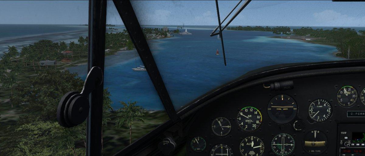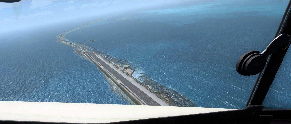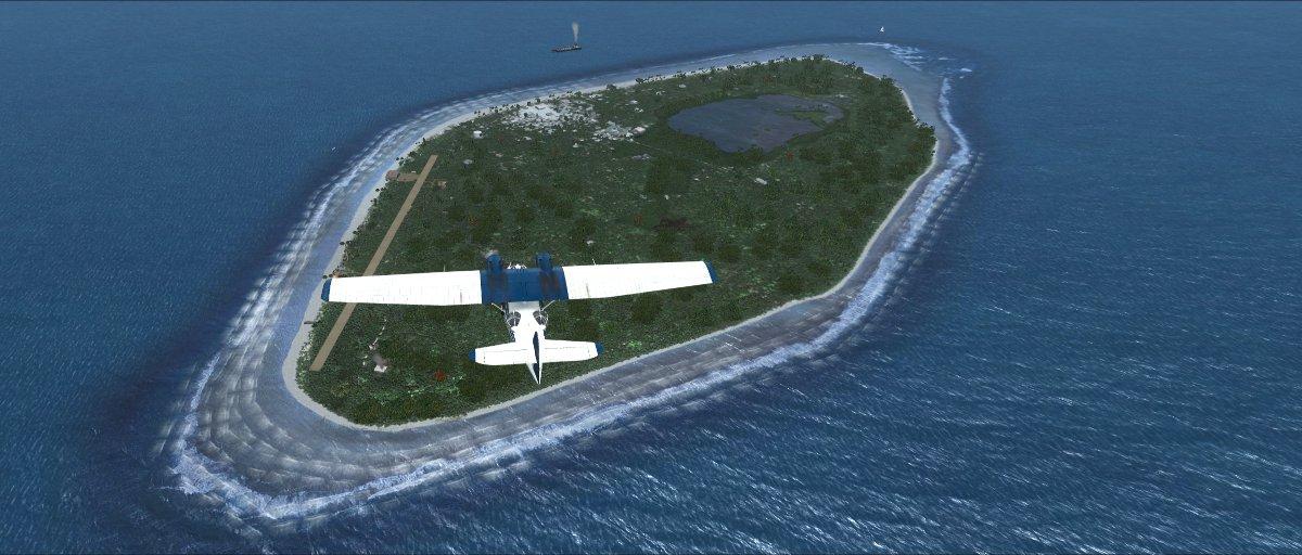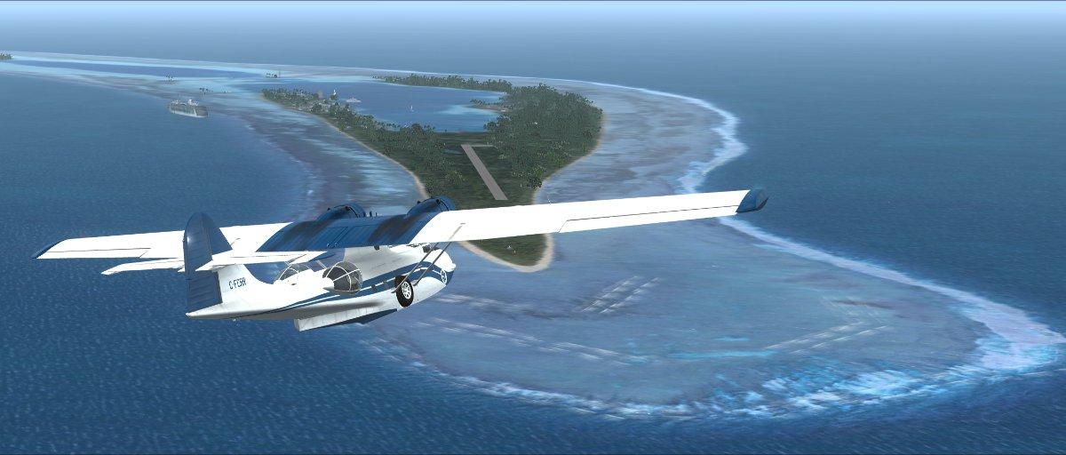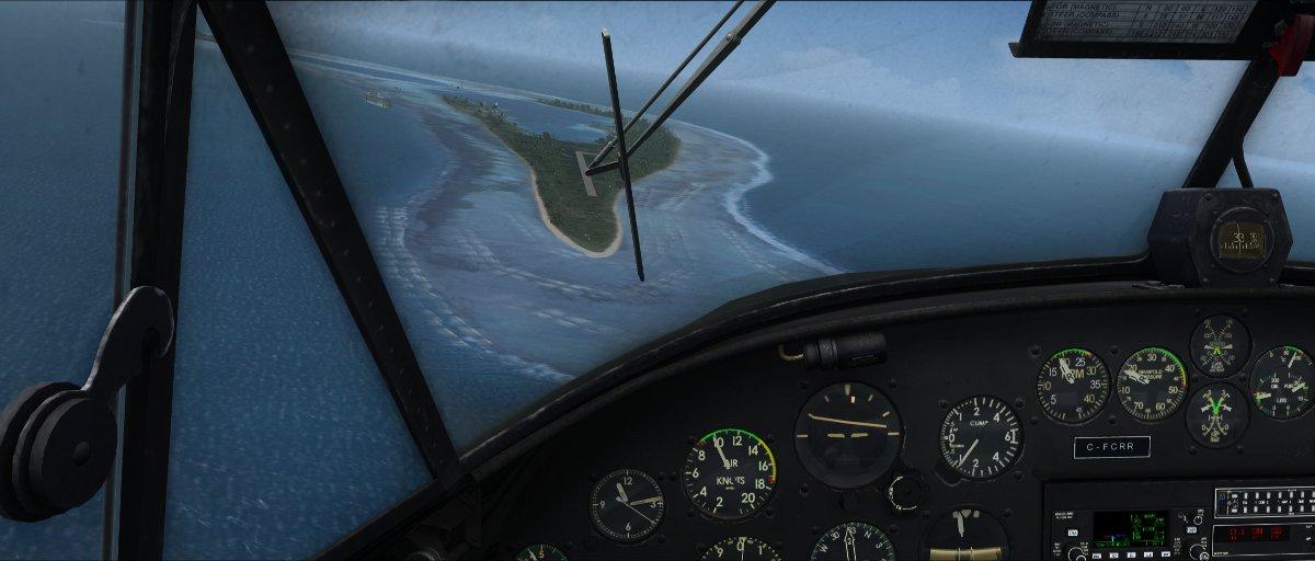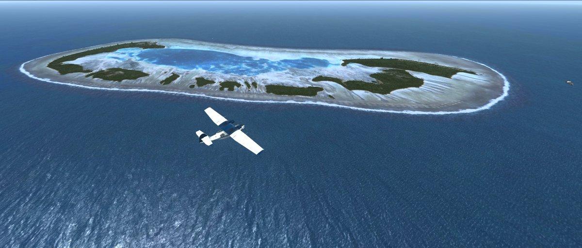 Nun wieder was LĂ€ngeres, von Nunumea geht es an vielen Atollen vorbei zu den Marshall Islands. Ausserdem hab ich im Vorfeld mit einem Zusatztank experimentiert, der mir nochmal 3h extra an Reichweite gibt. Damit erhöht sich die Gesamtreichweite auf 22h, das sollte bis nach Hawaii reichen. DafĂŒr können aber dann leider keine Passagiere mehr mitfliegen. FĂŒr heute ging es noch, also einsteigen und los. Schön langsam gewöhne ich mich an die Maschine, die Motoren laufen klaglos. Als kleiner Zwischenstopp dient Tarawa/Bonriki bei ungefĂ€hr der HĂ€lfte des Weges. Dort ist auch das Wetter am unbestĂ€ndigsten, aber ausser ein paar Böen passiert nichts, kein Gewitter und vor allem kein Regen. Da ich genug Sprit mithabe (5h Reserve) fliege ich nach Bonriki im “fast cruise”, das spart mir schlussendlich 20mins Flugzeit. Die Motoren bleiben dabei gerade noch so im grĂŒnen Bereich (22°C OAT). Marshall Islands ist dann wieder eine Augenweide. Ich dachte ja Funafuti sei schon ein grosses Atoll, aber das hier ist noch viel grösser. Im Inneren des Atolls habe ich keine Probleme einen Lande- und Ankerplatz zu finden.