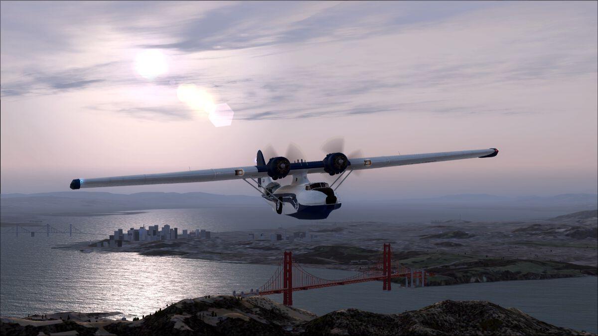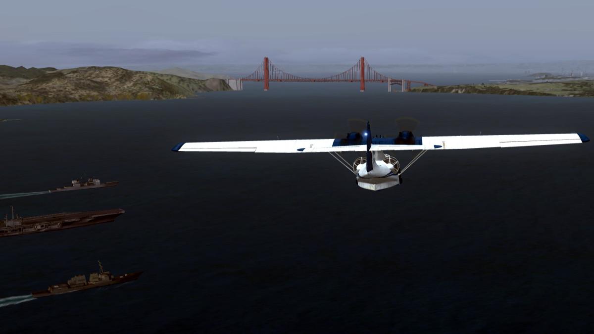 Und schon wieder der lĂ€ngste Flug, der letzte ganz lange auf dieser Tour. Von Hawaii geht es Non-Stop (da keine Zwischenlandung möglich) nach Commodore Center, einem Wasserflughafen in der San Francisco Bay. Kurz vor 7 Uhr abends hebe ich in Dillingham ab (real ist es 7 Uhr morgens). Nach einem kurzen Blick auf Hawaii drehe ich auch schon auf den Pazifik in östlicher Richtung ein und kurz danach ist es dunkel. Die Catalina wird heftig durchgeschĂŒttelt und es beginnt zu regnen. Dieser Regen verlĂ€sst mich bis zum Morgen nicht mehr. WĂ€hrend hoch ĂŒber mir viel Verkehr herrscht (viele 747s und 738er sind zwischen Hawaii und der WEstkĂŒste unterwegs) kĂ€mpfe ich mit böeigen Winden und einfrierenden Vergasern. Doch die Windvorhersage stimmt und aus einem kurzen RĂŒckstand von ĂŒber einer Stunde wird schnell ein Vorsprung von einer halben, den ich bis zum Schluss halte. StĂŒndlich ĂŒberprĂŒfe ich den Sprit, doch es gibt keine Ăberraschungen. Gute Flugvorbereitung ist eben alles! Kurz nach 1600 Ortszeit in San Francisco ĂŒberfliege ich meinen letzten Navigationspunkt CINNY, noch 150NM bis Commodore Center. Und nun schlĂ€gt VATSIM wieder zu! Im San Francisco Tower gehen die Lichter an, Approach, Tower und Ground werden besetzt. Und ich suche derweil die VFR Karten fĂŒr meinen Einflug in die Kontrollzone eines der dicht beflogensten FlughĂ€fen dieser Welt heraus. Nach einigem BlĂ€ttern und suchen habe ich meine Route gefunde und melde mich beim Controller: “Nordtac control, request permission to transit your airspace via FARRA (ein kleine Inselgruppe 30NM vor der KĂŒste) and GOLDEN GATE to land at COMMODORE CENTER, CFCRR.” “CFCRR, youre cleared for COMMODORE CENTER VFR, repoprt altitude changes.” Ist doch schön wenn man das machen darf was man will. đ Und so fliege ich in 1000ft Höhe gerade wegs zur VordertĂŒr herein ĂŒber die Golden Gate Bridge, bevor ich nach links abdrehe und kurz nach 1730 in der Bucht lande. Real ist es inzwischen schon wieder morgen, nĂ€mlich 2 Uhr frĂŒh. Nach 20h Flug und dem VertĂ€uen ist nur mehr zufriedenes Schlafen angesagt.