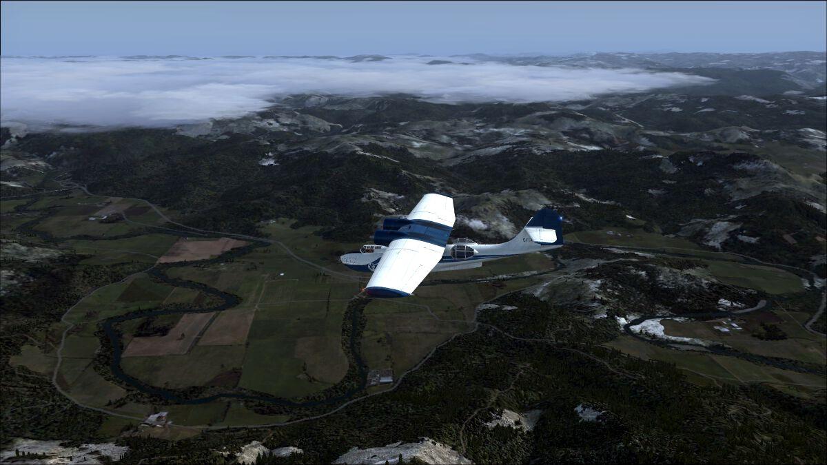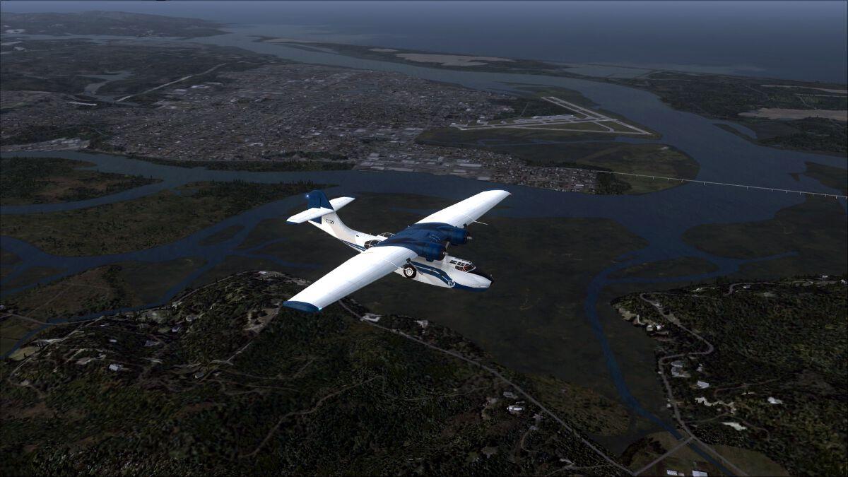 Diesmal was Kurzes, aber dafĂŒr landschaftlich umso schöner. Kein Wasser! Von der San Francisco Bay geht es hinauf zur kanadischen Grenze in den Bundesstaat Washington. Der erfahrerne Flusianer weiss, da oben ist alles ORBX-Land, einer der HauptgrĂŒnde hier diesen Abstecher zu machen. Der andere sind die Rocky Mountains zur rechten, die Catalina ist fĂŒr solche Höhen nicht gebaut. Ein genaues Studium der VFR Karten und der minimum safe altitude ergibt eine Reiseroute entlang der KĂŒste. Am frĂŒhen Morgen geht es los (1), zunĂ€chst geht es flach dahin und es ist noch alles grĂŒn (2), dann wird es hĂŒgeliger (3) und auch das Wetter spielt mir immer wieder einen Streich mit plötzlich auftretenden Nebelfeldern (4). Auf der Route gibt es viele kleine und grössere FlughĂ€fen, die allesamt an FlussmĂŒndungen liegen, so auch Coos Bay (5).Es geht weiter nach Astoria (6), eine der grössten Bays auf dem Weg, vorbei an der Megler Bridge (6,6km). Kurze Zeit spĂ€ter, ĂŒber Grays Harbour (7), entschliesse ich mich meine Route zu Ă€ndern. Anstatt nördlich nach Makah Bay und ĂŒber die Juan-de-Fuca Strasse einzufliegen, drehe ich auf Osten Richtung Seattle. Hier erfordert es nun old-school VOR-Navigation, vorbei an den 8000ft hohen Bergen des Olympic National Parks (8). Ăber Port Townsend habe ich die Berge hinter, aber den Nebel vor mir (9). Bis auf 1000ft muss ich sinken um in der Rosario Strait den Flughafen ausmachen zu können (10). Kaum dass ich das Rosario Resort & Spa Hotel erkenne, bin ich auch schon unten (11). Der Anflug war dermassen kurz, dass ich vergessen habe die Mixtures wieder auf “Auto Rich” zu stellen, daher gehen nach der Landung erst mal beide Motoren aus. Wieder angeschmissen tuckere ich hinĂŒber zum Landungssteg und gehe vor Anker (12 & 13).