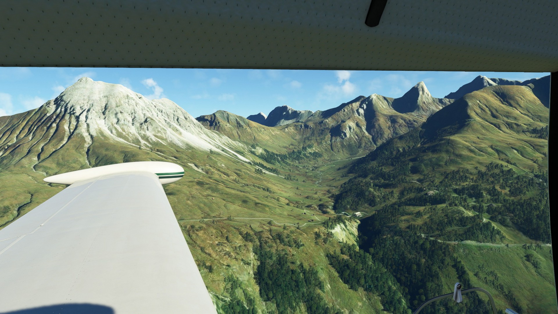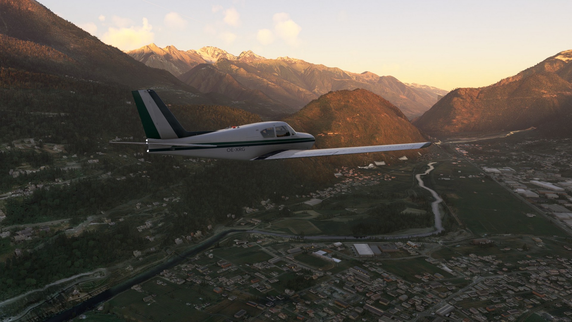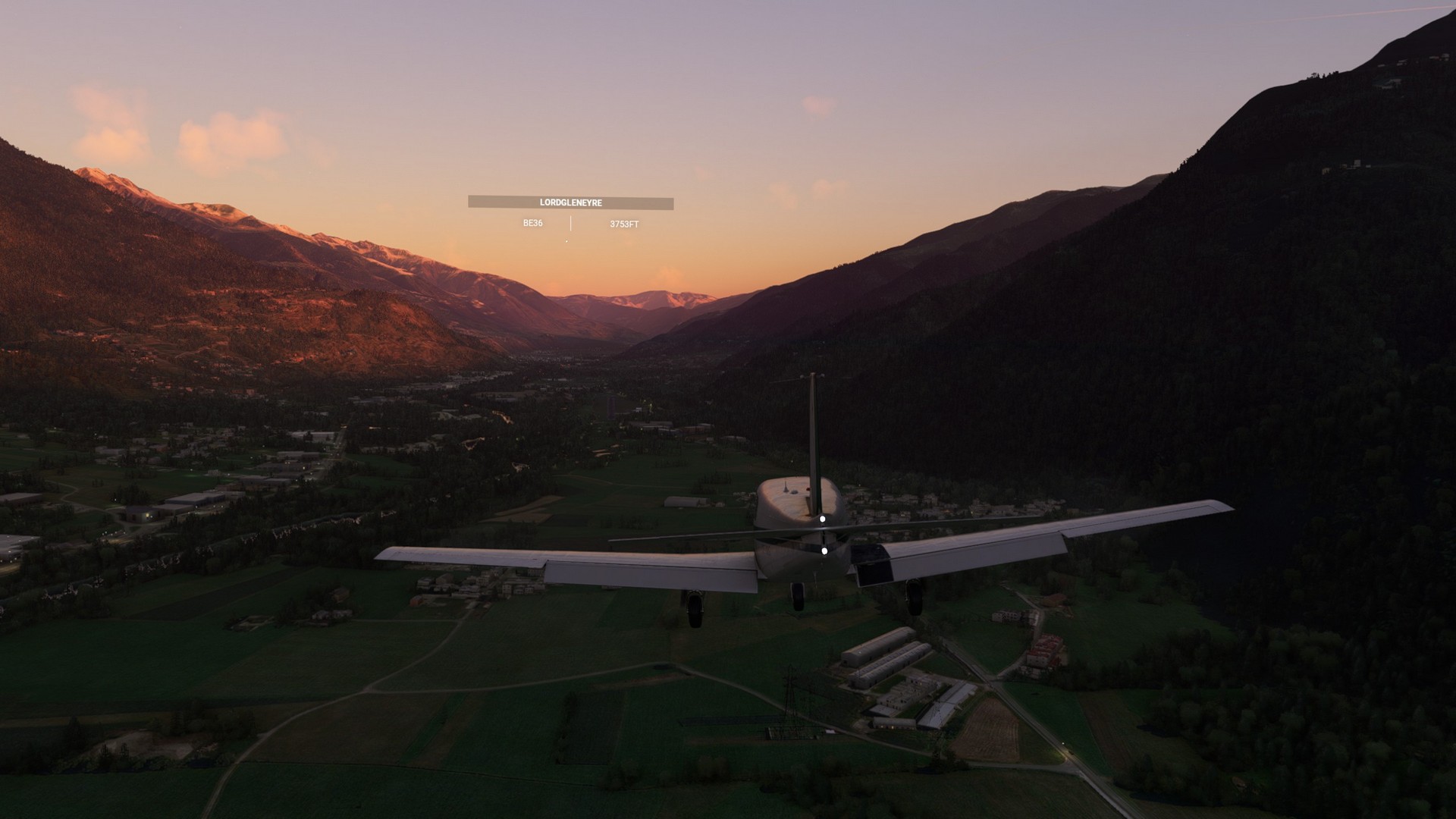 The final turn took me east along the Adda river. The last obstacle in my way was Dazio hill on my left. With just enough sunlight to spare I made it into the little airport at Caiolo (beautifully done by Asobo).