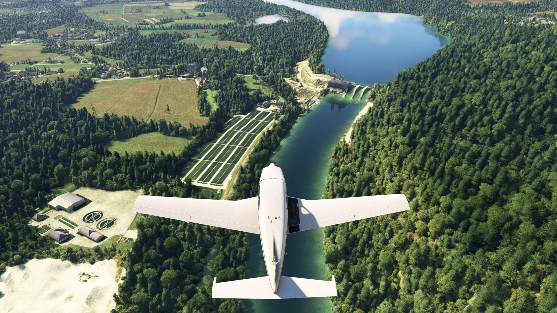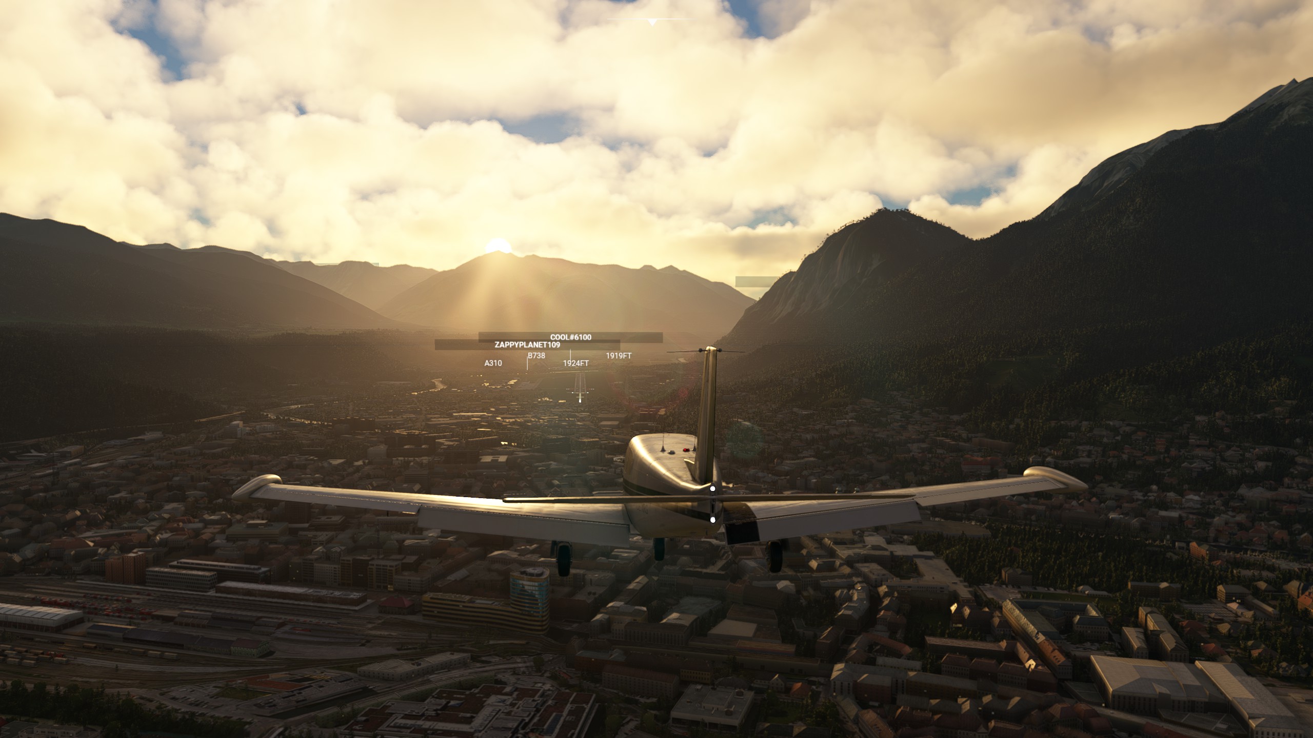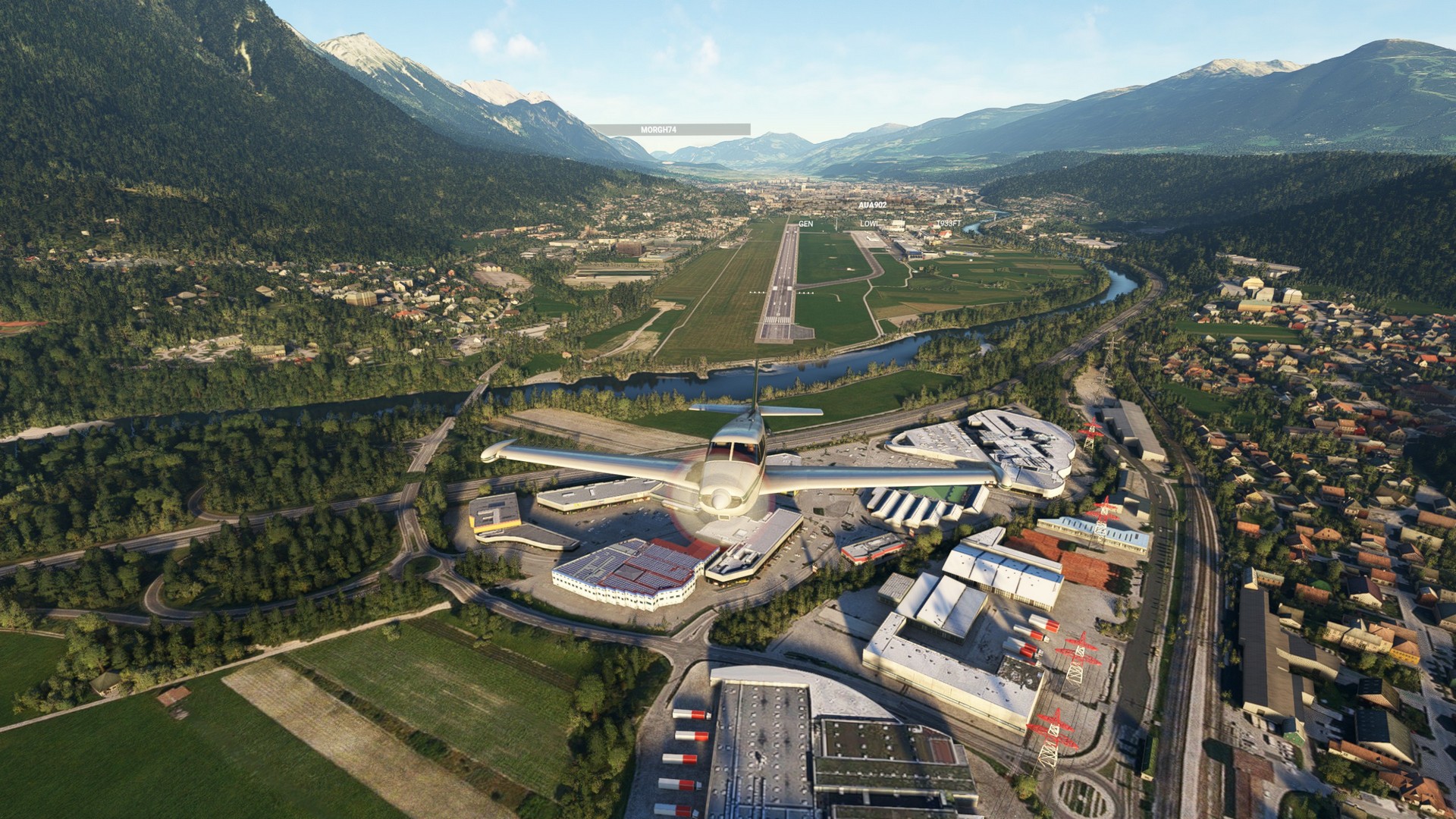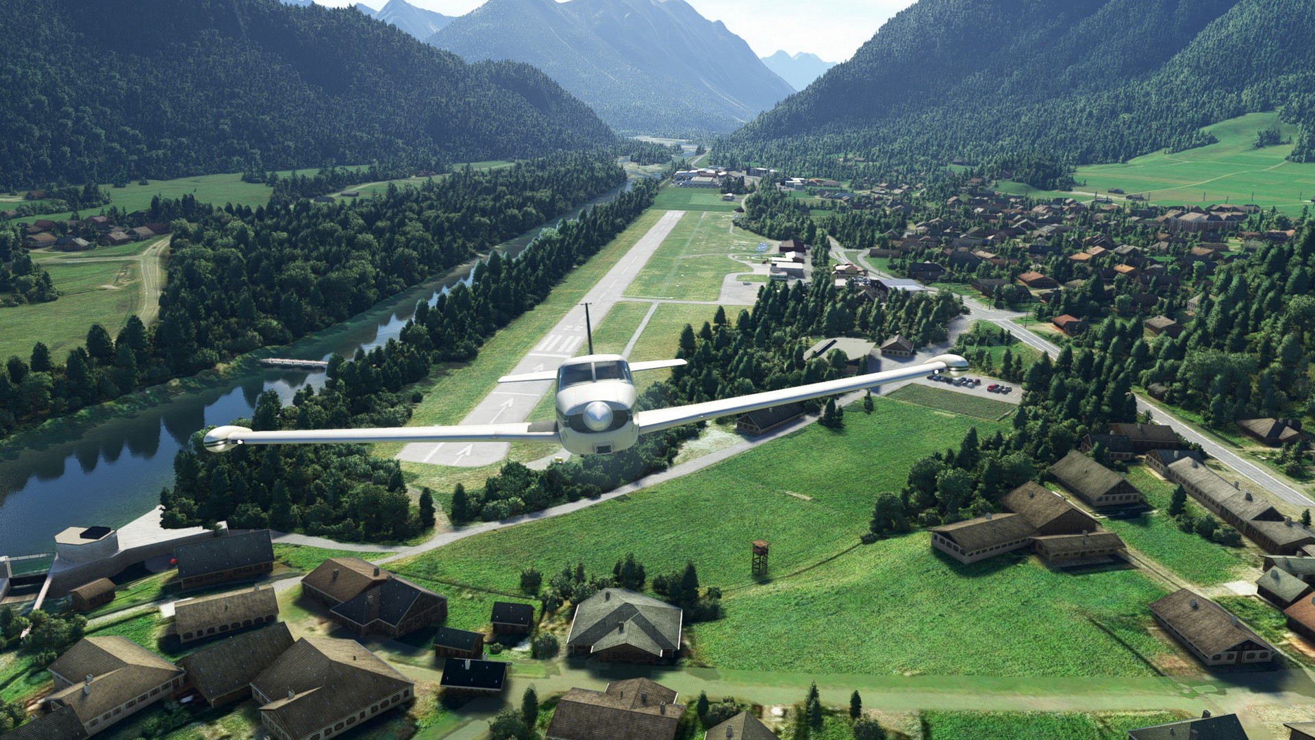 The final turn took me east along the Adda river. The last obstacle in my way was Dazio hill on my left. With just enough sunlight to spare I made it into the little airport at Caiolo (beautifully done by Asobo).