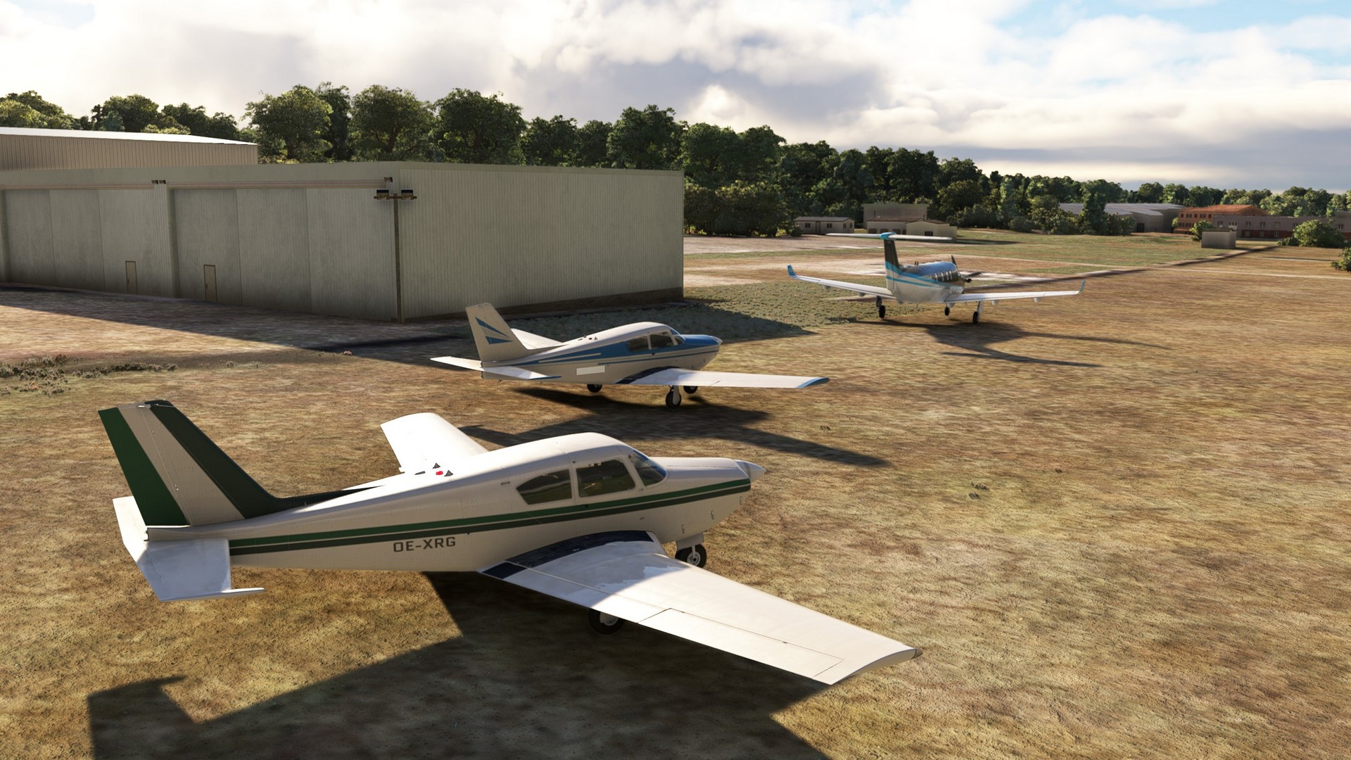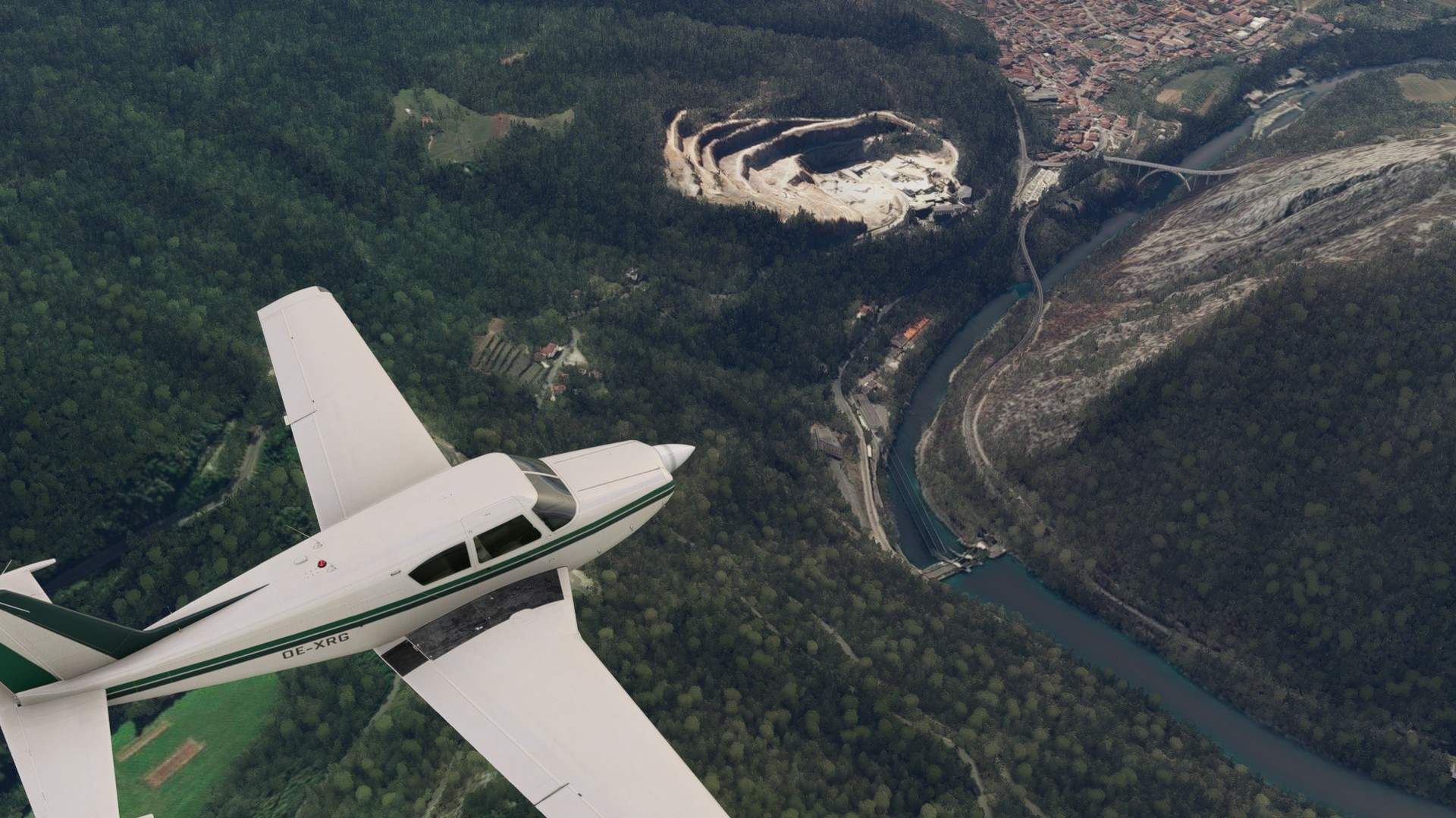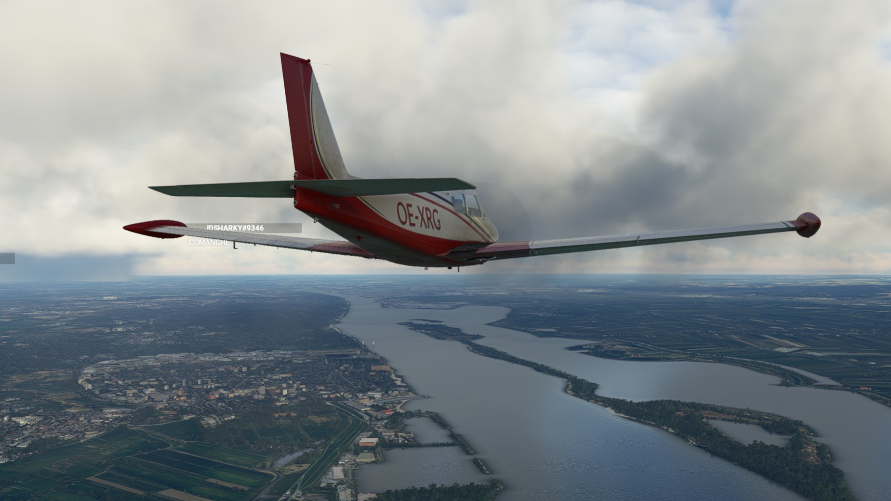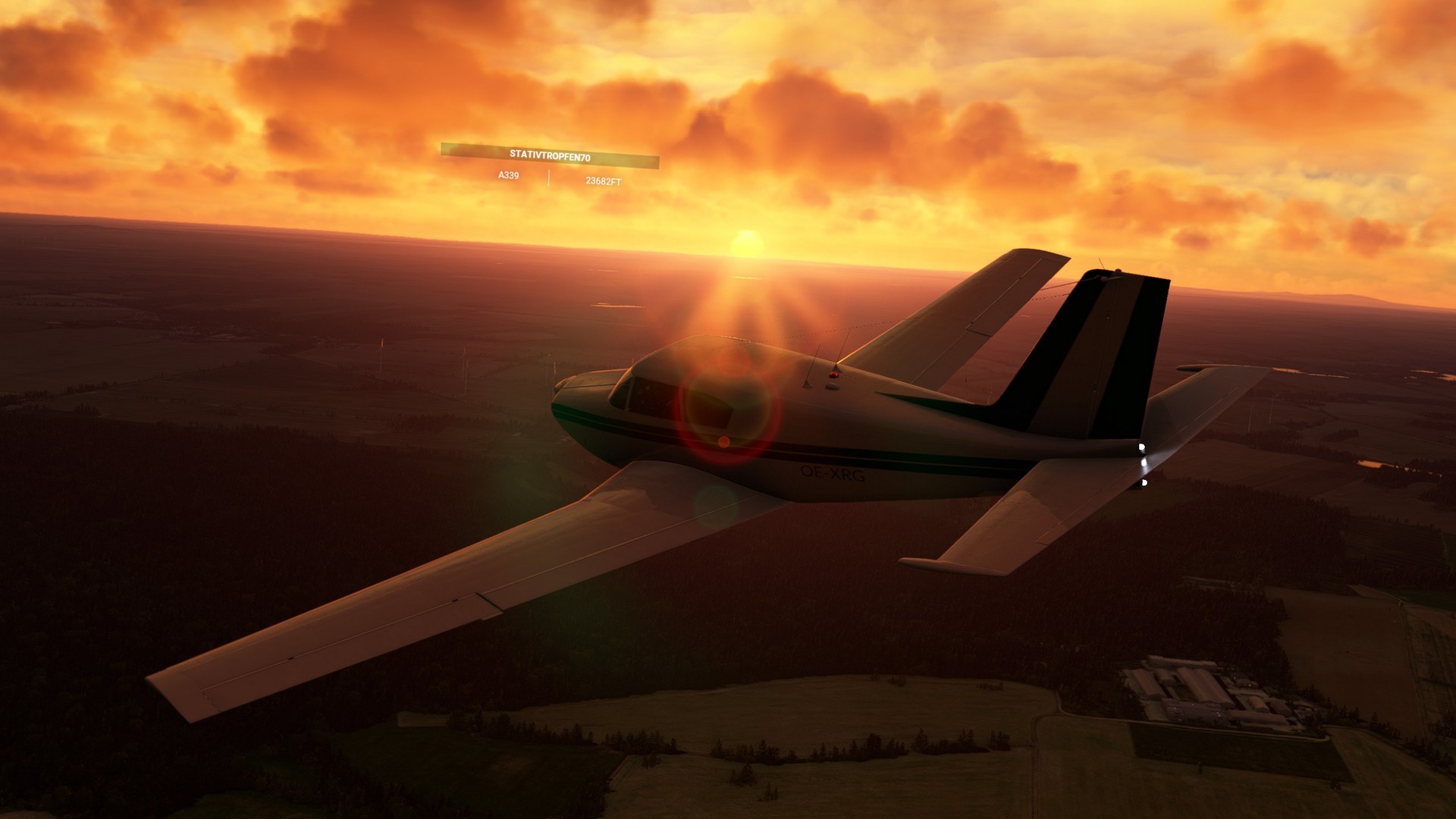 Roughly following the bush trip for MSFS, we (Chergo and Jörg were on board) started up our mixed bunch of planes at the Lufthansa apron in Leipzig. Chergo showed off his brand new TBM850, Jörg opted for the Grand Caravan and I had chosen the trusty Comanche. Hence I was the slowest of the bunch and would dictate cruising speed.
