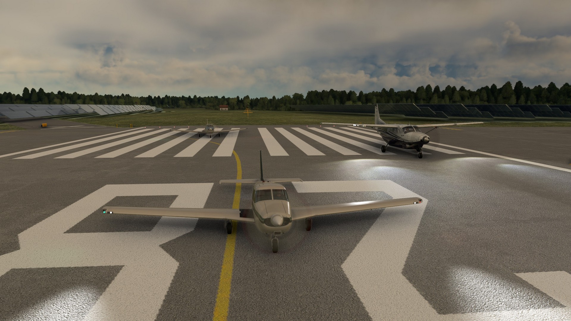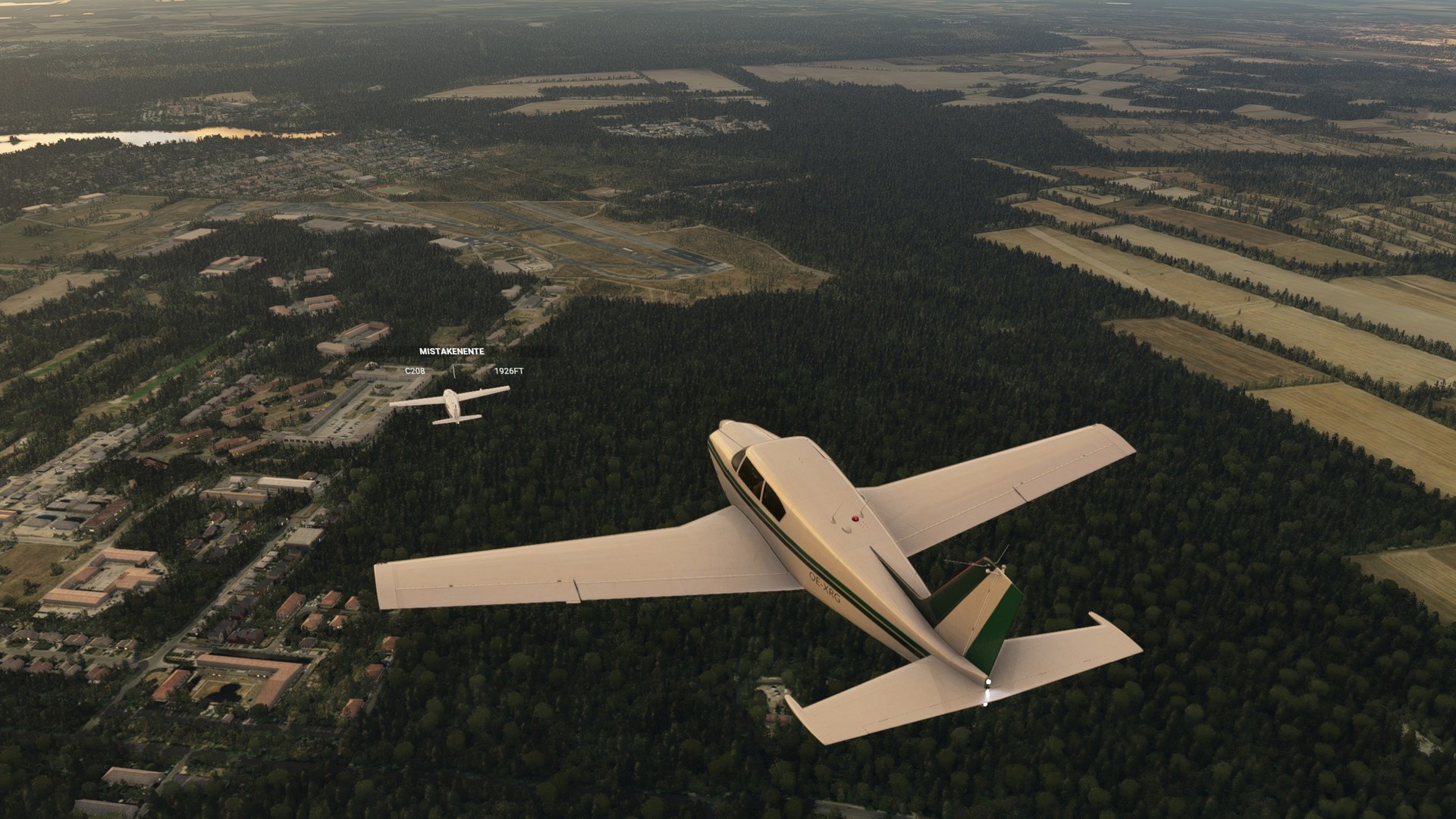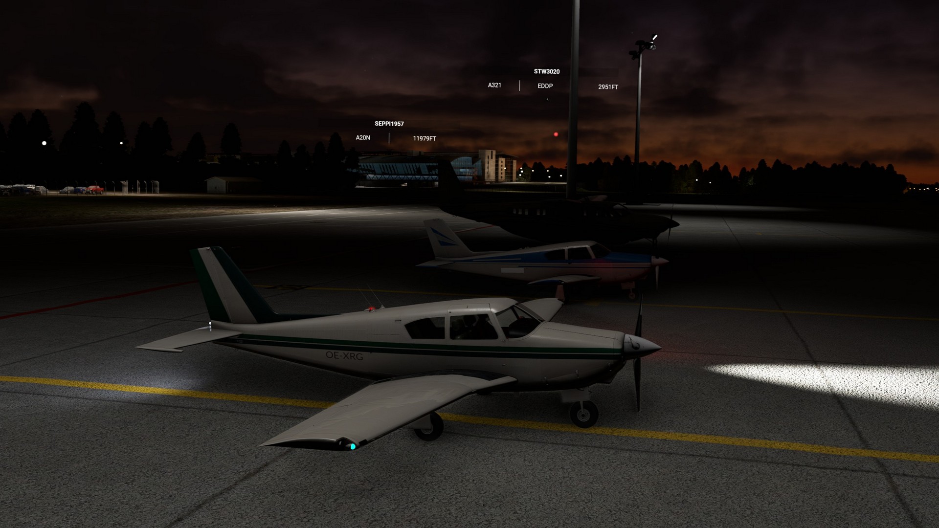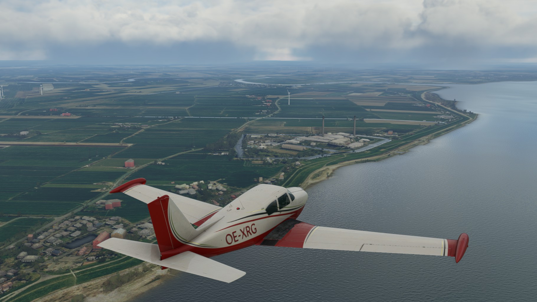 Roughly following the bush trip for MSFS, we (Chergo and Jörg were on board) started up our mixed bunch of planes at the Lufthansa apron in Leipzig. Chergo showed off his brand new TBM850, Jörg opted for the Grand Caravan and I had chosen the trusty Comanche. Hence I was the slowest of the bunch and would dictate cruising speed.