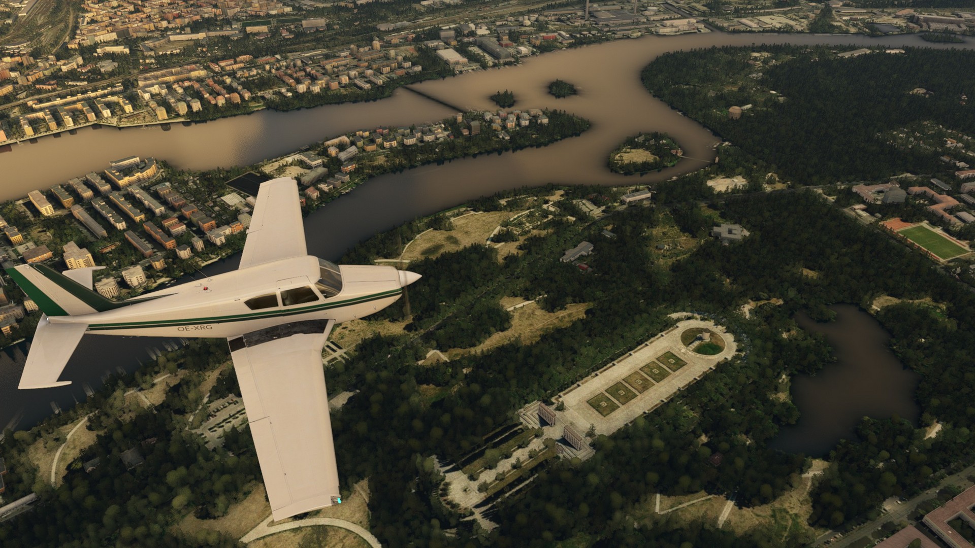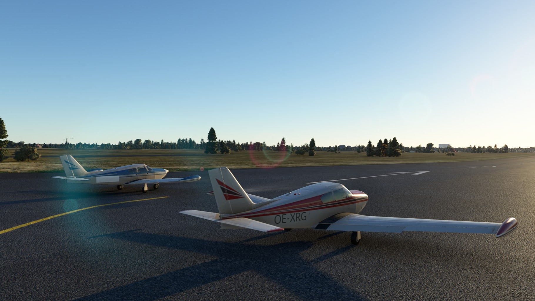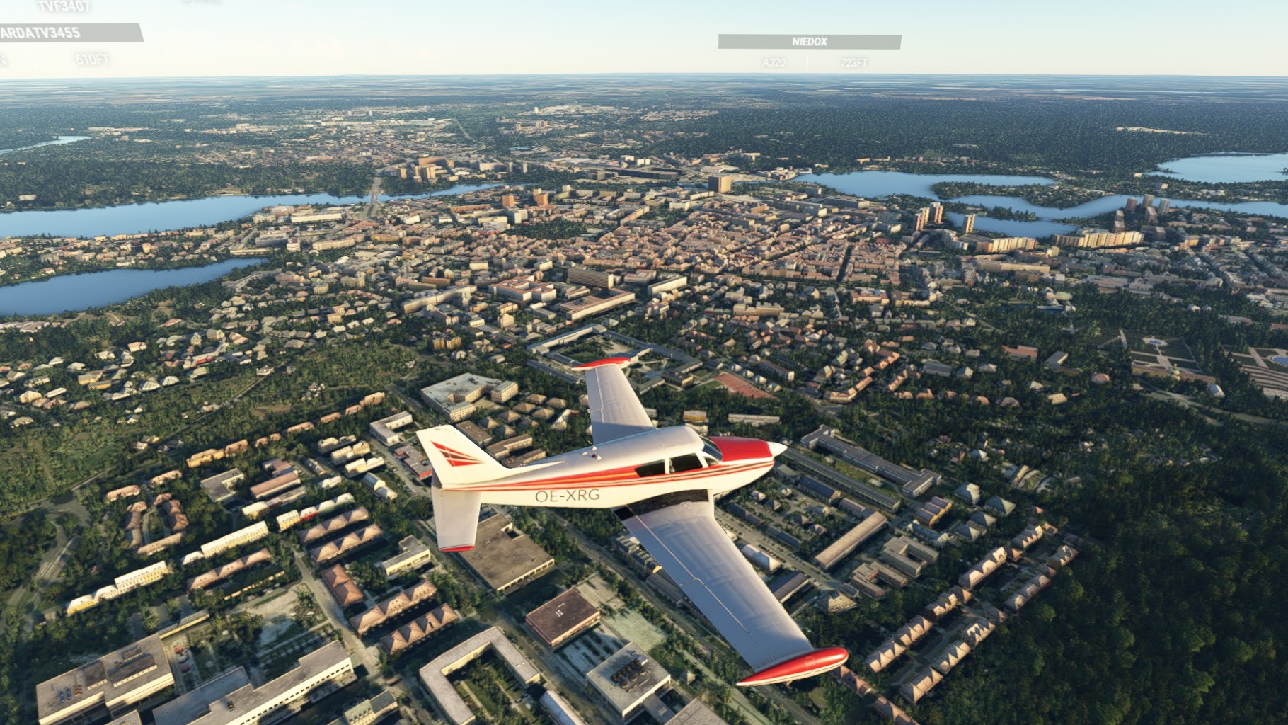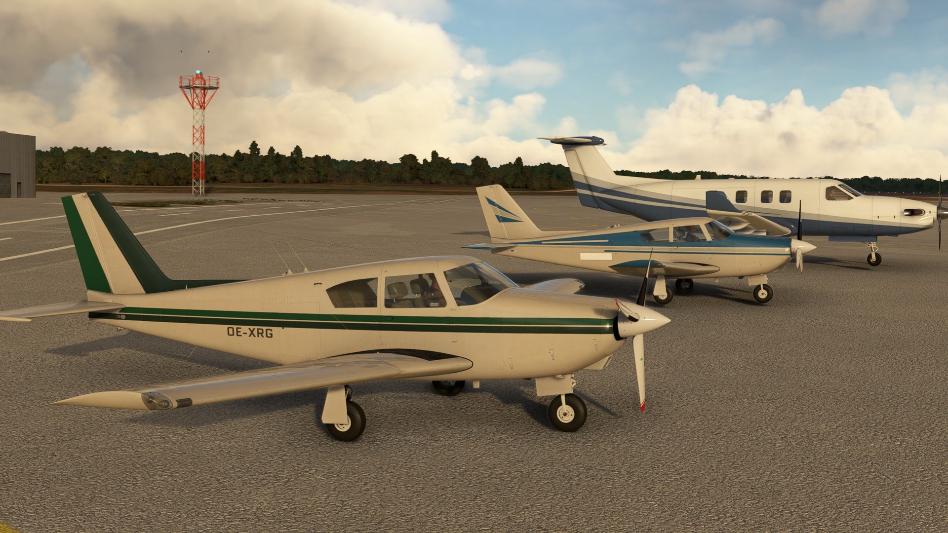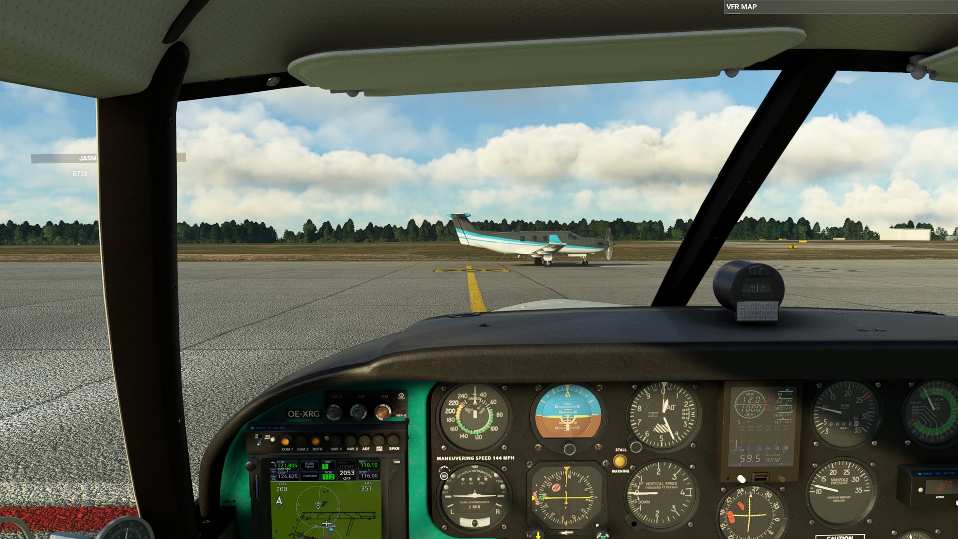 Roughly following the bush trip for MSFS, we (Chergo and Jörg were on board) started up our mixed bunch of planes at the Lufthansa apron in Leipzig. Chergo showed off his brand new TBM850, Jörg opted for the Grand Caravan and I had chosen the trusty Comanche. Hence I was the slowest of the bunch and would dictate cruising speed.