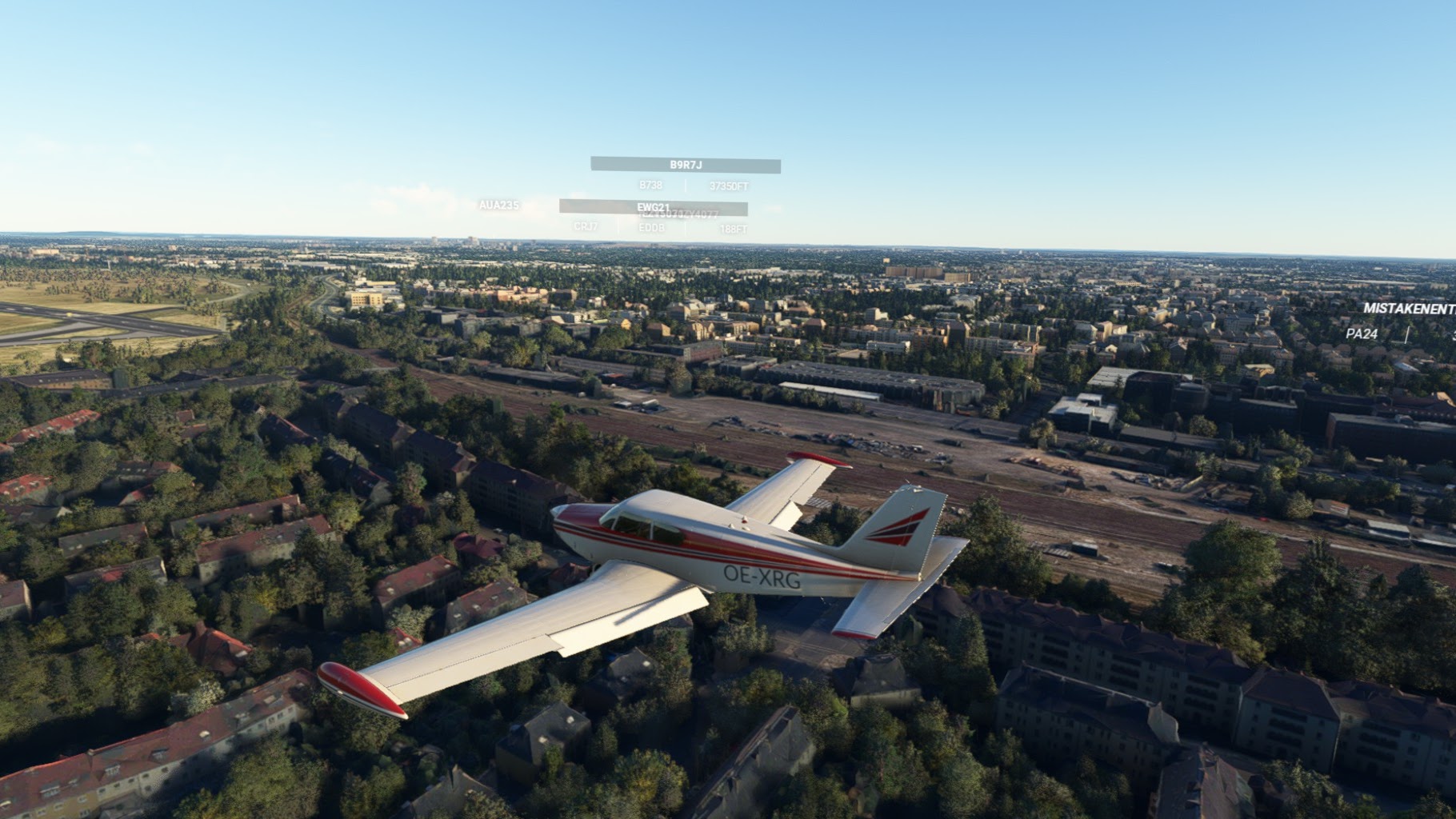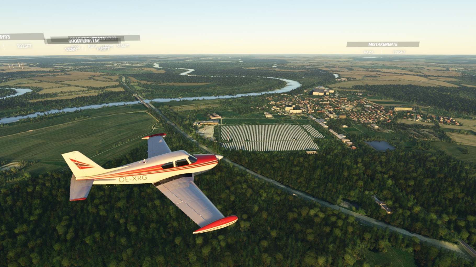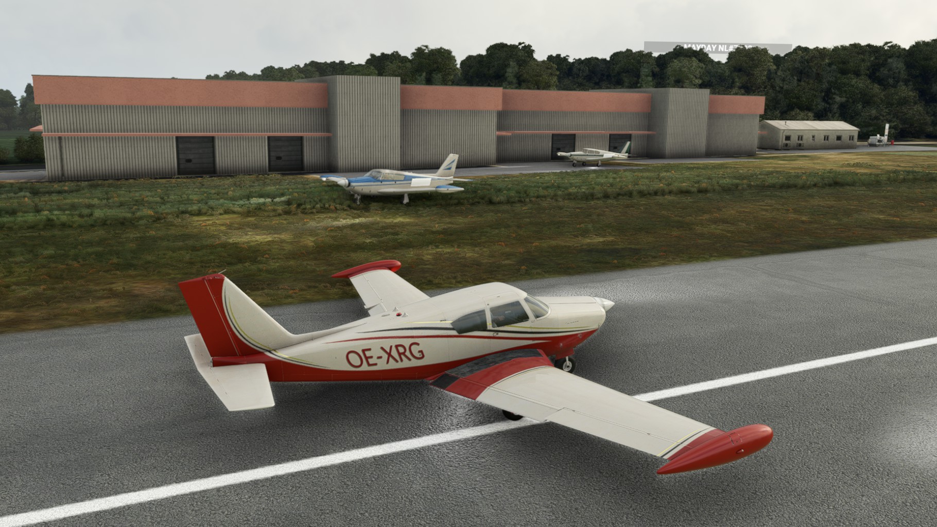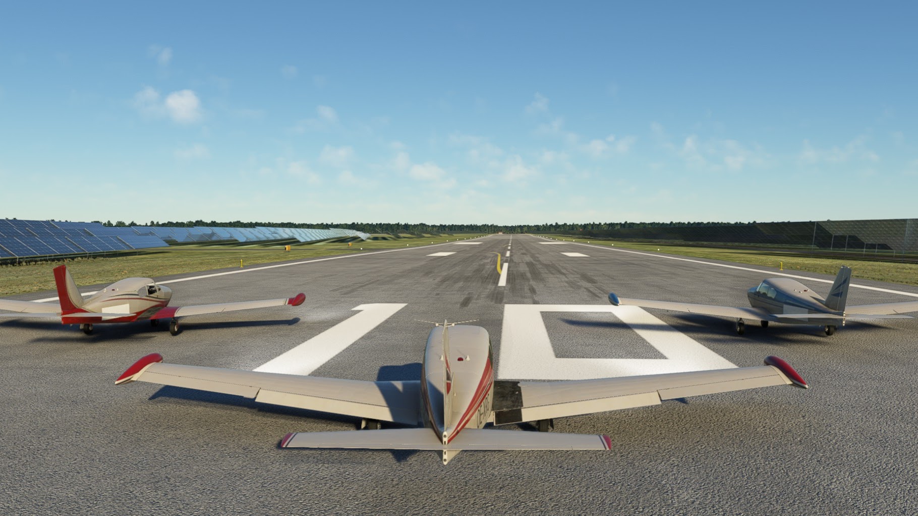 Roughly following the bush trip for MSFS, we (Chergo and Jörg were on board) started up our mixed bunch of planes at the Lufthansa apron in Leipzig. Chergo showed off his brand new TBM850, Jörg opted for the Grand Caravan and I had chosen the trusty Comanche. Hence I was the slowest of the bunch and would dictate cruising speed.