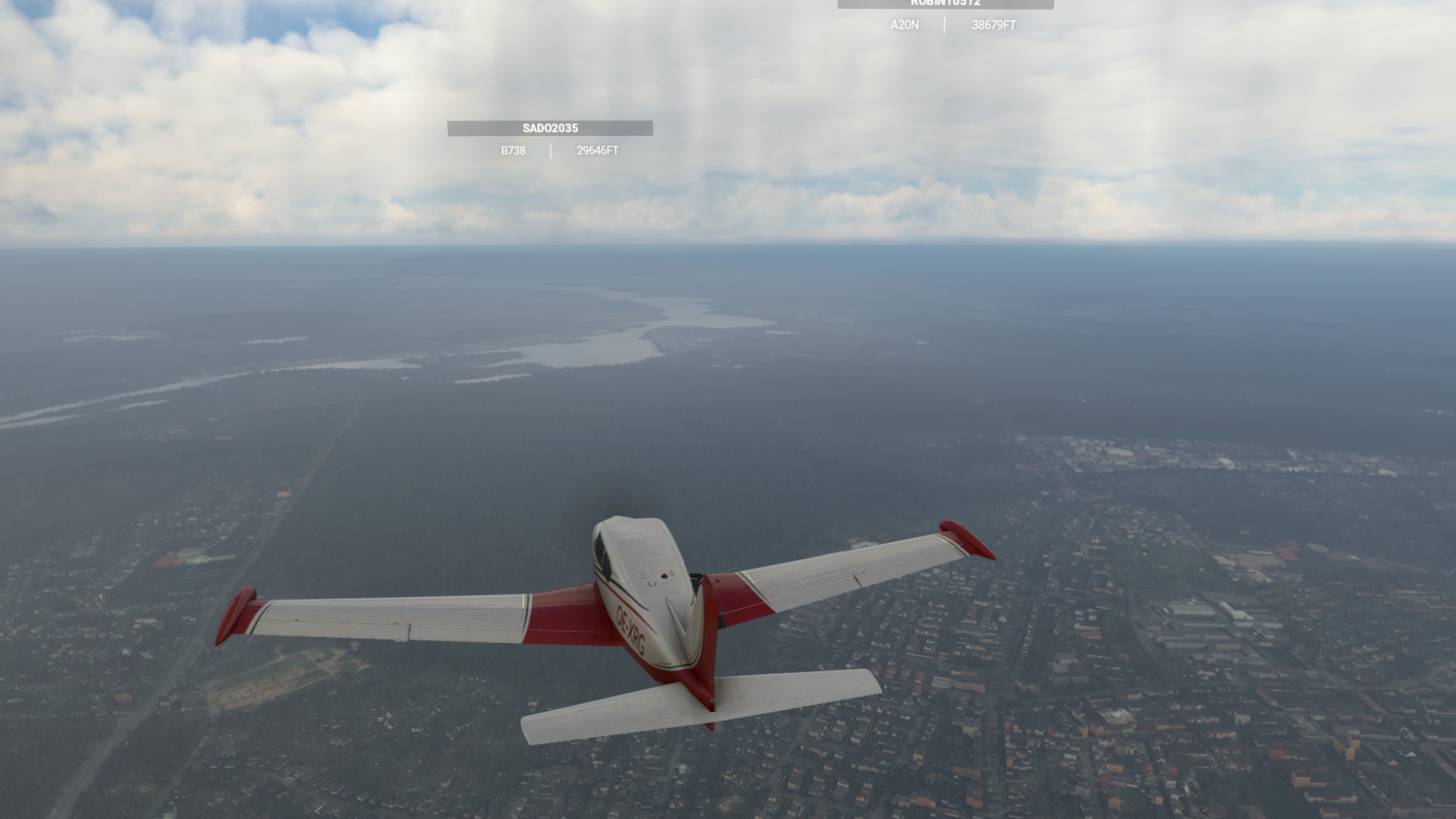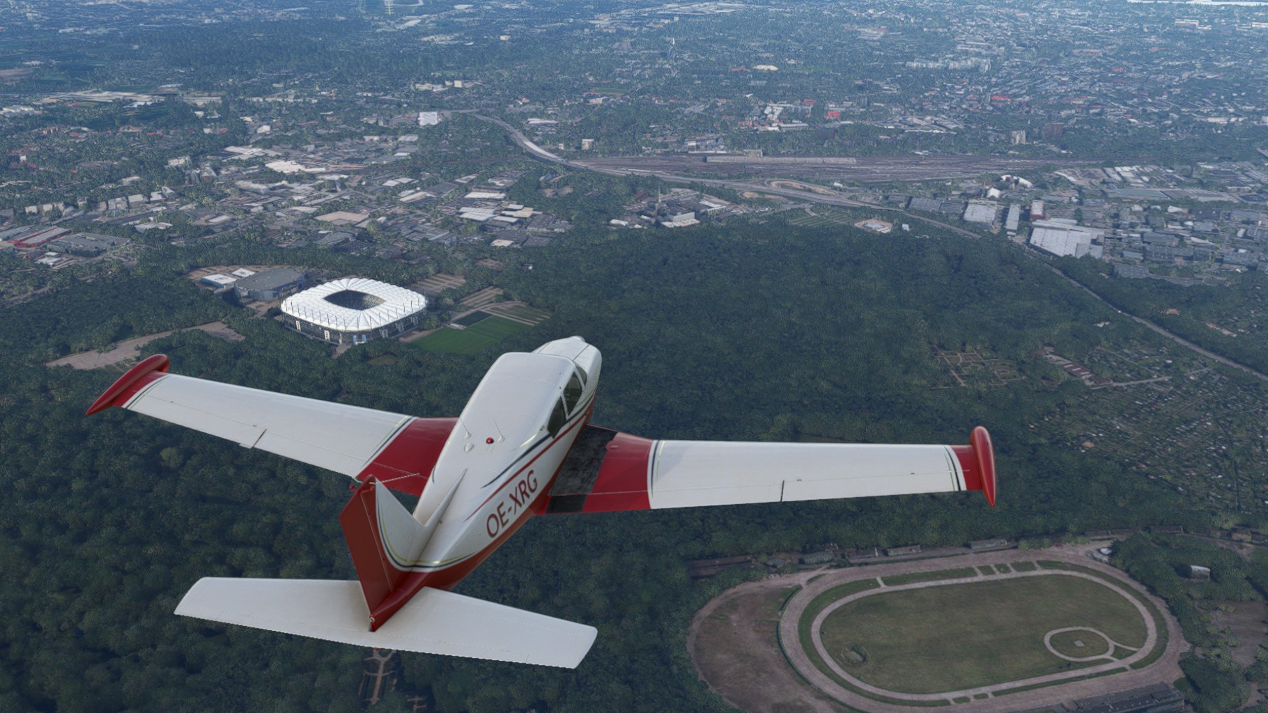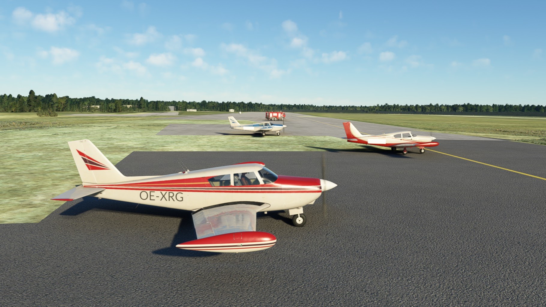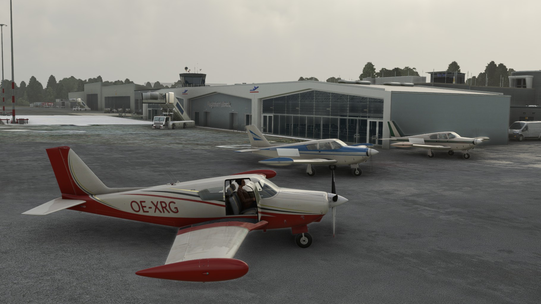 Roughly following the bush trip for MSFS, we (Chergo and Jörg were on board) started up our mixed bunch of planes at the Lufthansa apron in Leipzig. Chergo showed off his brand new TBM850, Jörg opted for the Grand Caravan and I had chosen the trusty Comanche. Hence I was the slowest of the bunch and would dictate cruising speed.
