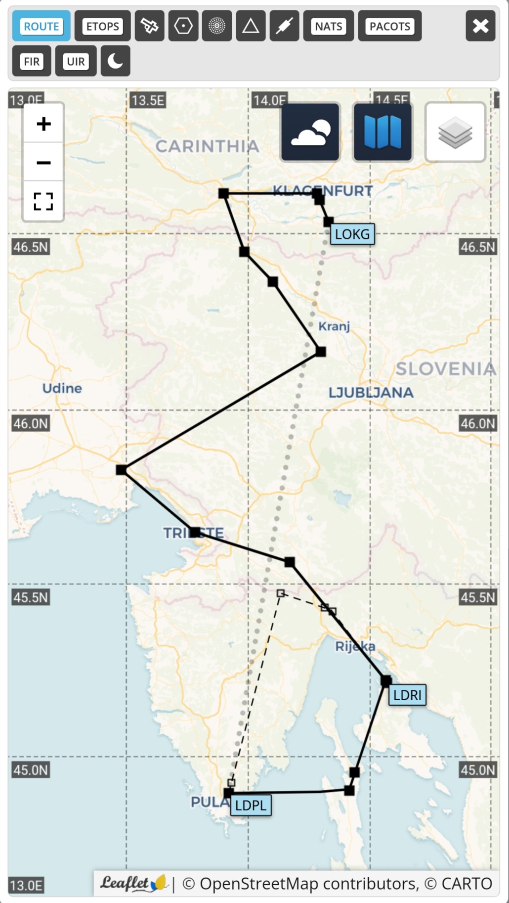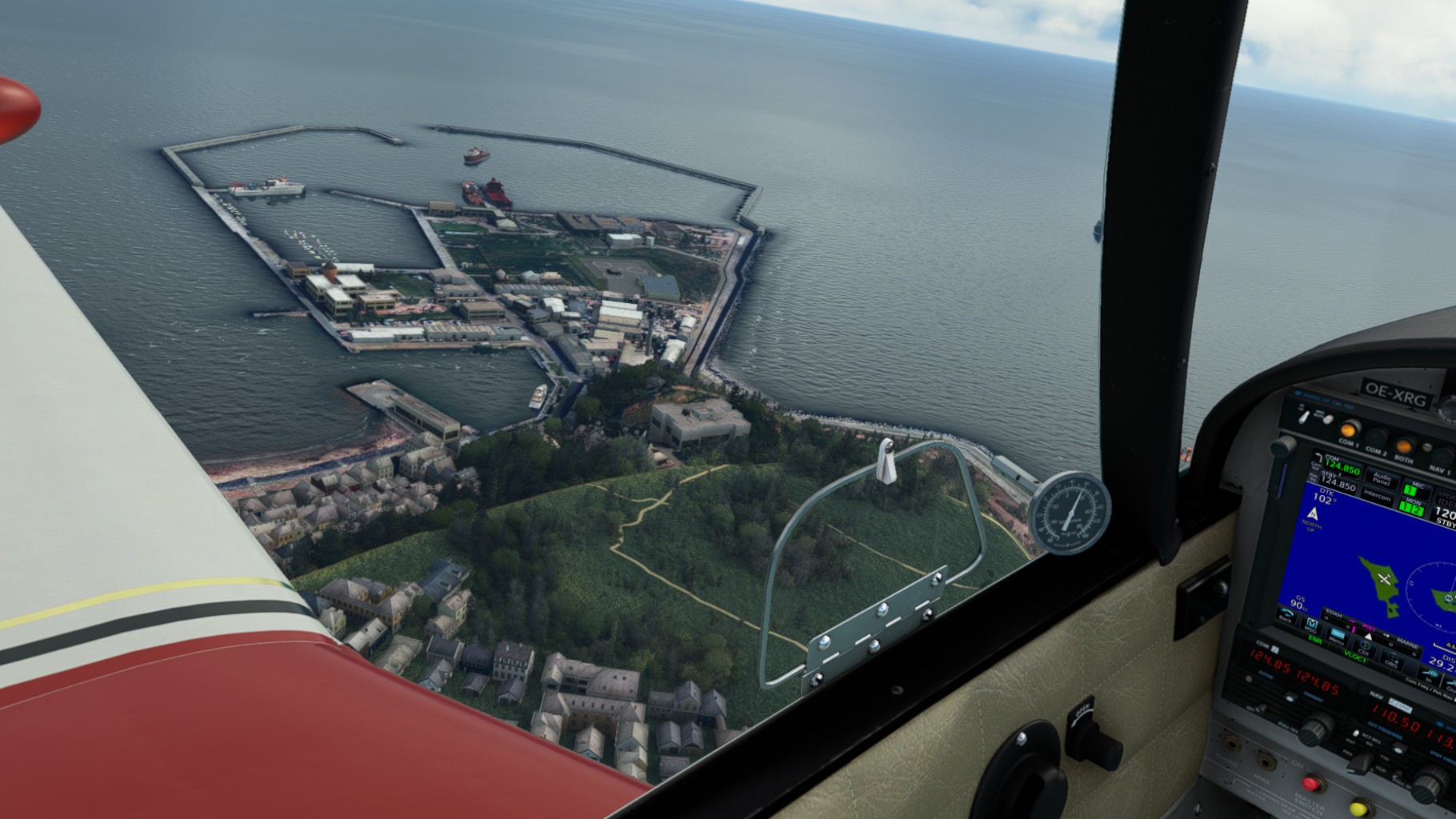 Görz with its castle was our first point of interest in Italy. We continued down the Isonzo river until we met the Mediterranean Sea at Monfalcone (host to the Trieste airport). As we flew down the coast to Trieste we encounterd another castle in Miramare. We made a small detour to Porsecco airfield. Quite a challenging land on its 400m grass runway. After takeoff, we continued towards Trieste and cut off the Pula peninsula into Croatia.