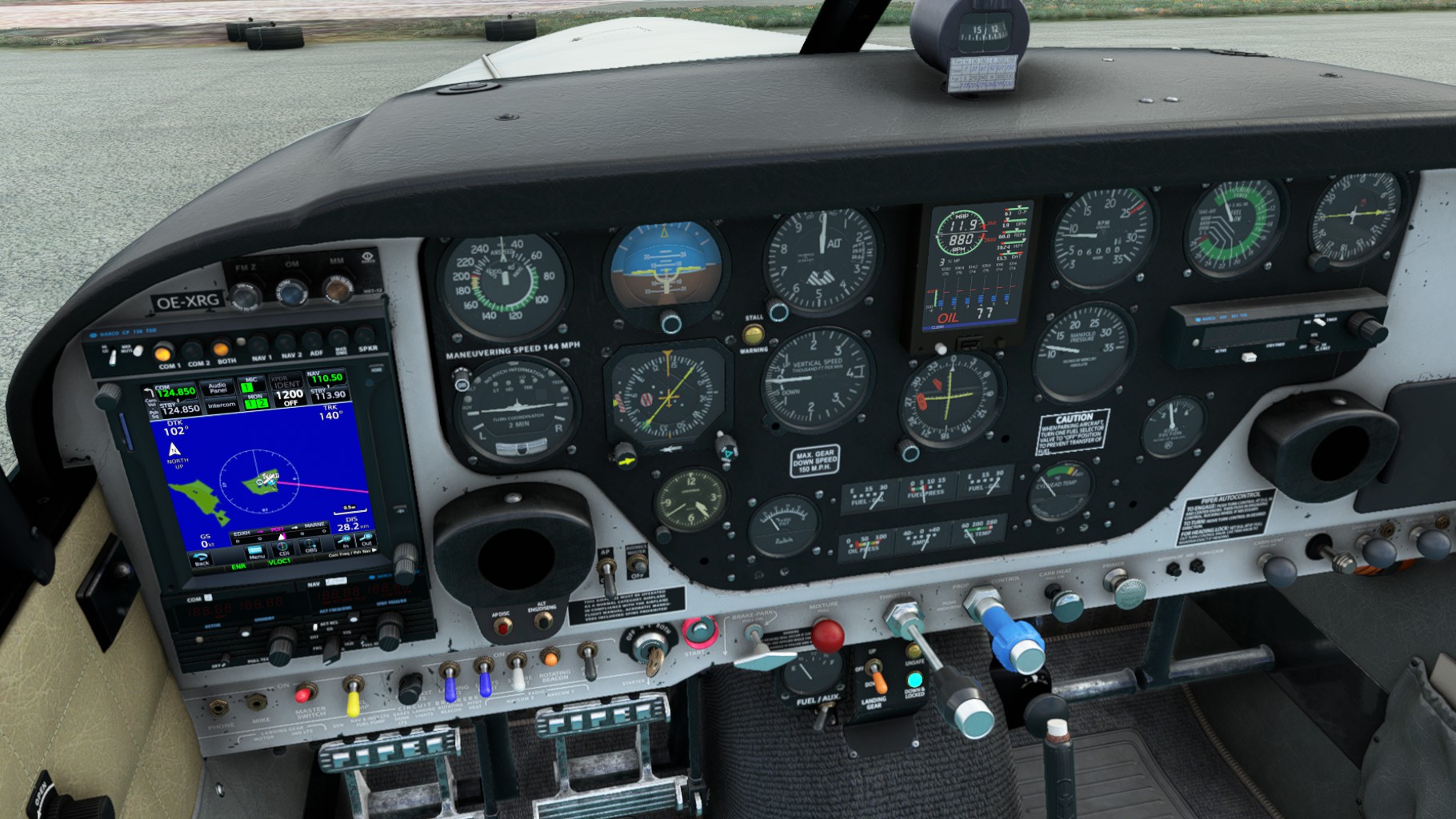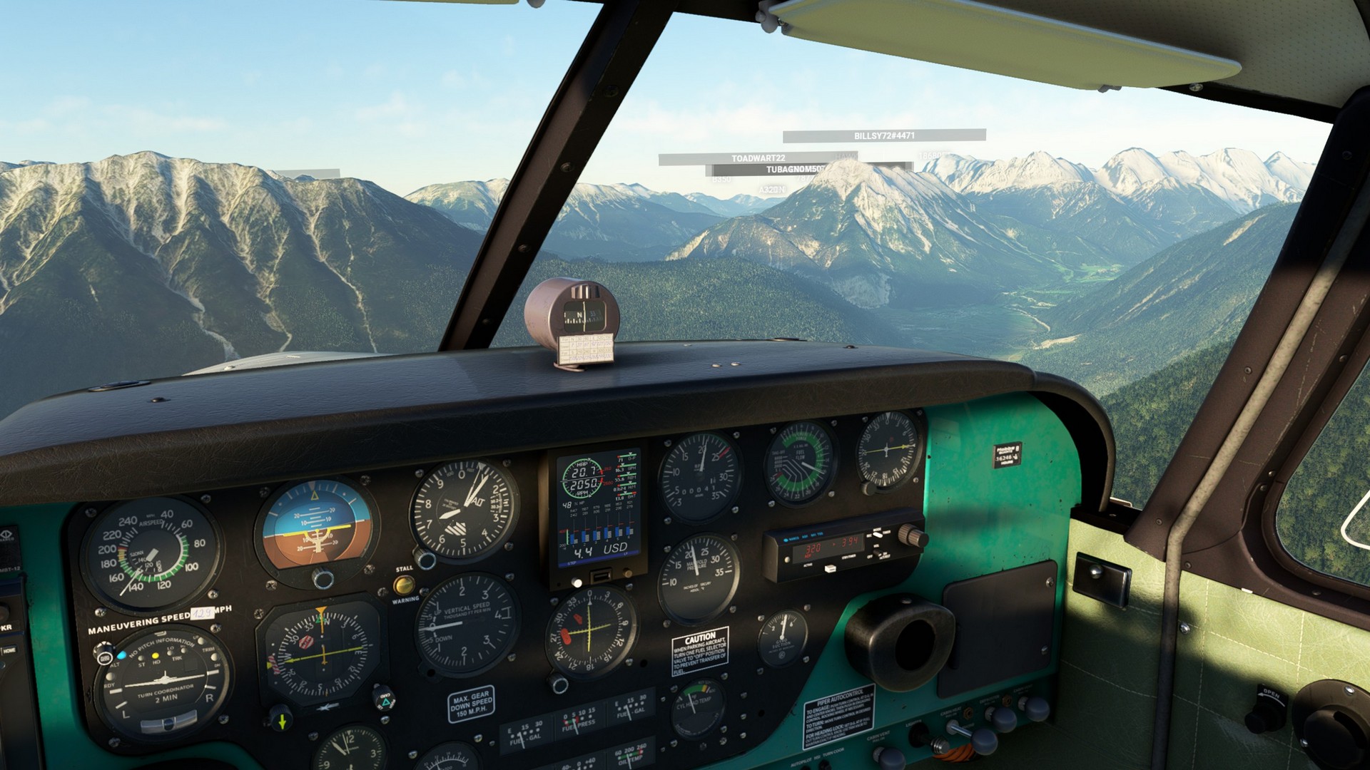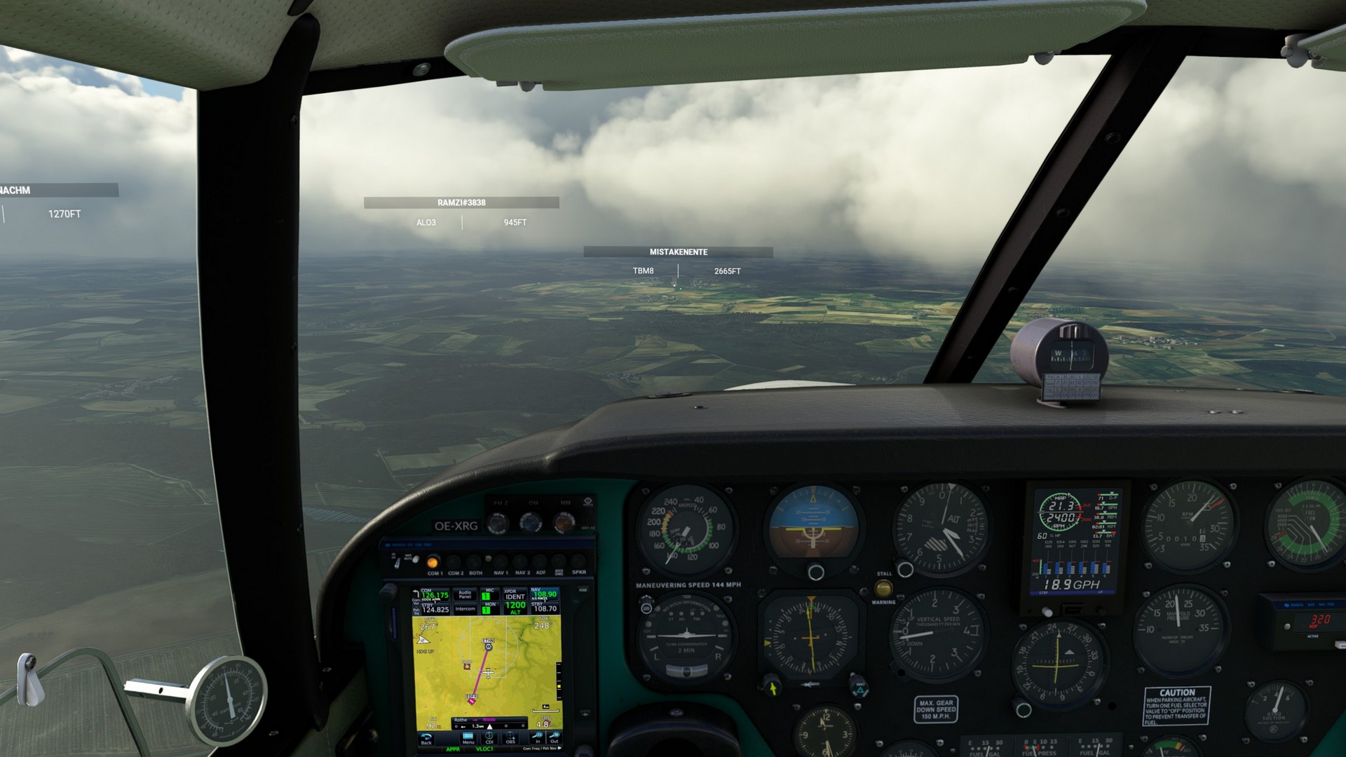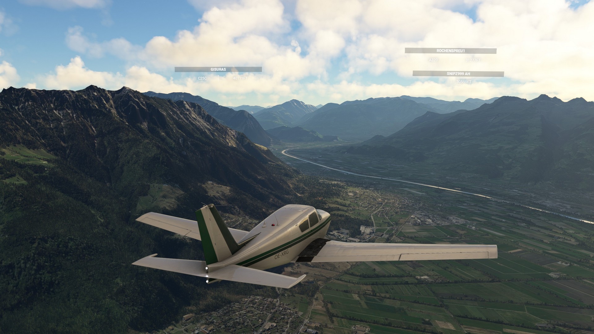 On this group flight, Chergo had chosen the Caravan, while Jörg and me went for the Comanche. These two planes are close enough in cruising speed (max cruise difference about 20kts) to not have any issues in cruise.