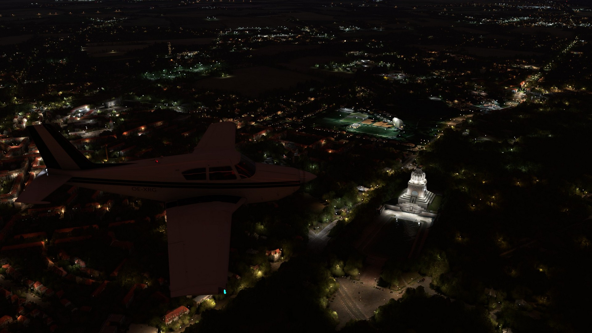 Crossing over the Elbe river we were halfway there and the sun sunk ever deeper in the sky over Germany. When we finally reached Leipzig, light was nearly gone. We caught a glimpse of the Völkerschlachtdenkmal in the south of Leipzig before returning to Leipzig-Halle airport. Strong headwinds made the landing tricky, but we all got down in one piece and assembled for a final photo on the Lufthansa apron.