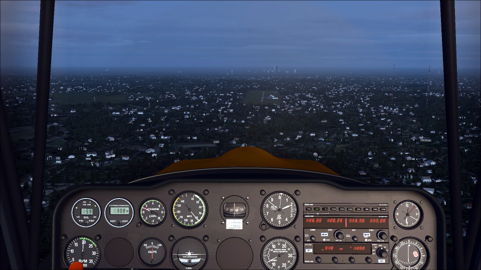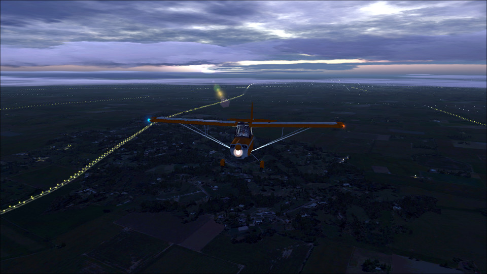 Eigentlich nur als kurzer Hüpfer gedacht, hatte ich den ganzen Flug über schwere Probleme mit Stotterern (neuer Grafikkartentreiber, “never change a running system”) und ich war froh wieder unten zu sein. Die Route war wieder einmal die schon bekannte Interstate 70 W. Besonders genossen habe ich den Sonnenaufgang und die FTX Lichter. So ist es selbst bei wenig Licht möglich nur nach den Strassenlichtern zu fliegen. Toll!