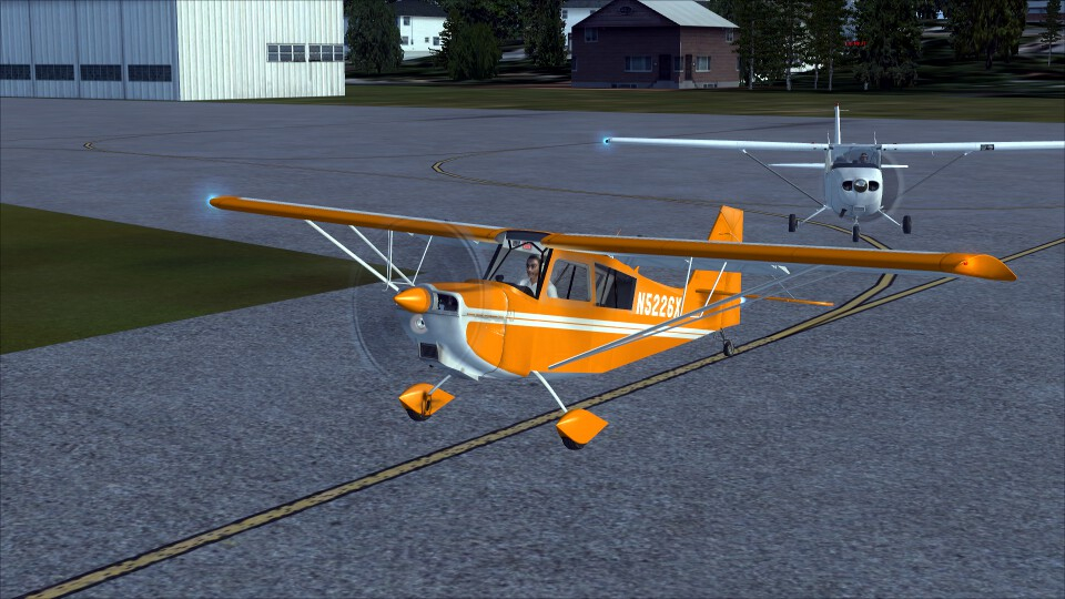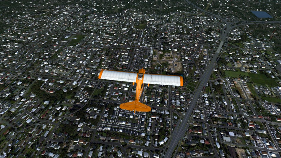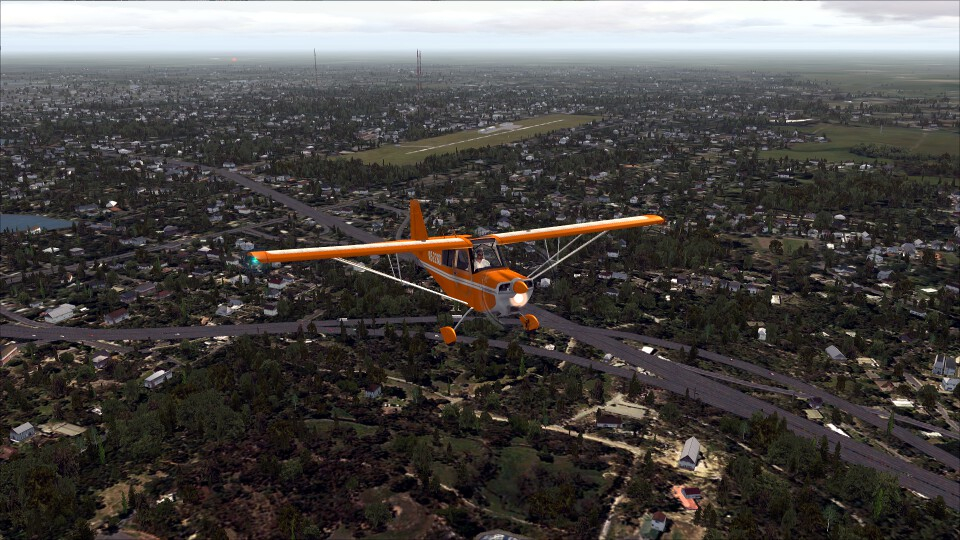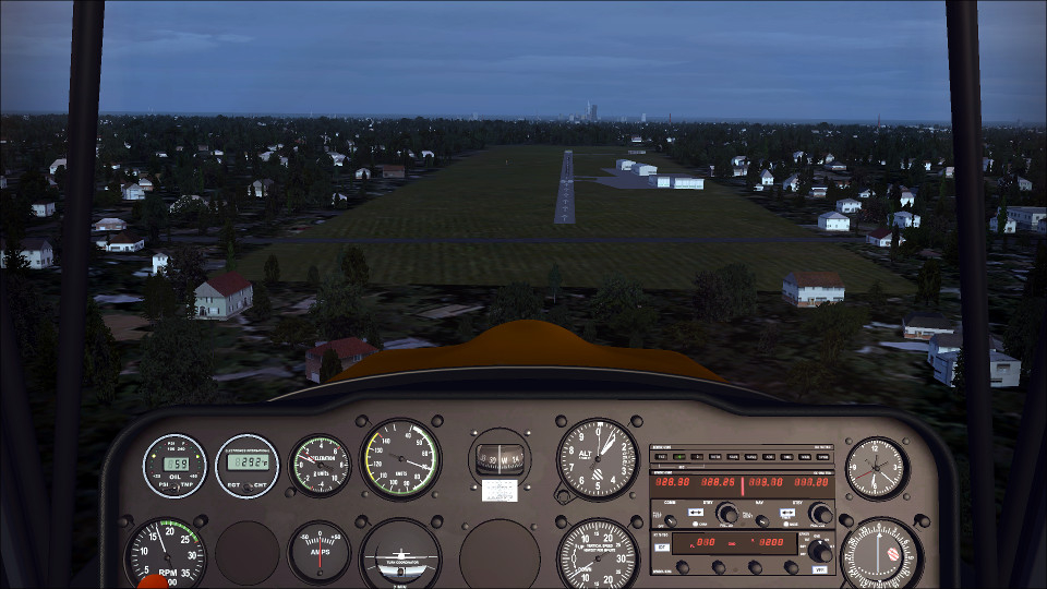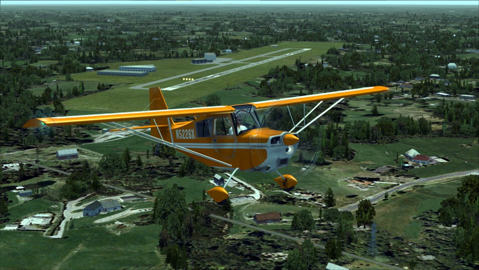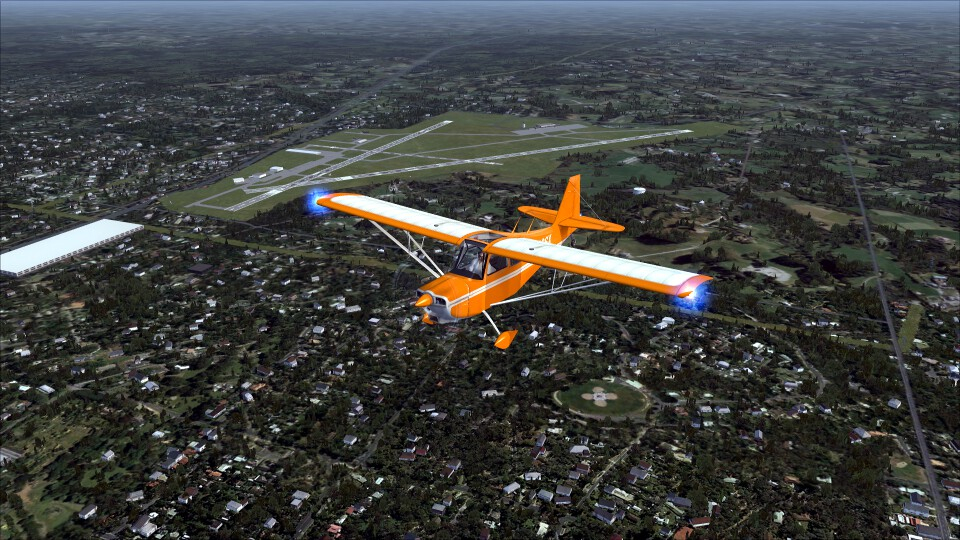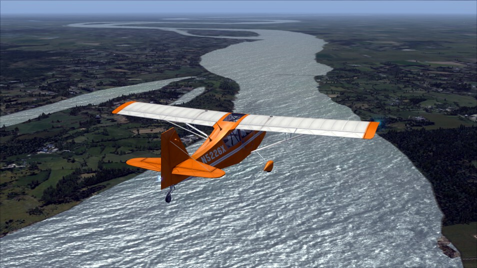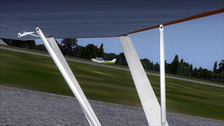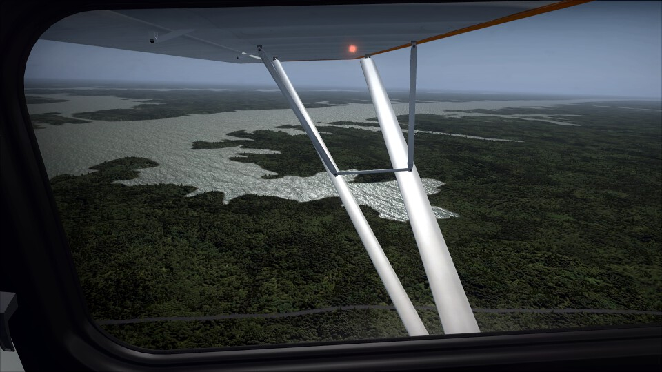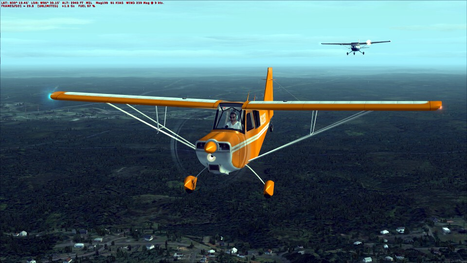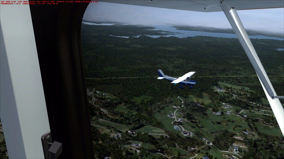 Hier stiess mein Fliegerkollege Jörg zu mir und wir machten uns gemeinsam an den längsten Leg des Tages. Trotz meiner Frameprobleme wollte ich nicht aufgeben und tatsächlich wurde es ausserhalb der Stadt besser. Wir wechselten uns bei der Navigation ab, den unterschiedliche FTX Vector Versionen führten zu unterschiedlichen Eindrücken. Bei mir auf v1.00 fehlte ein Stück der Interstate 69, bei Jörg mit v1.15 dafür wieder eine Insel im Ohio River. Als Team haben wir aber alles gemeistert und wurden am Schluss zuerst mit einem tollen Blick über den Kentucky Lake belohnt und dann mit einem Anflug zwischen Häusern und Bäumen hindurch nach Fulton hinein.