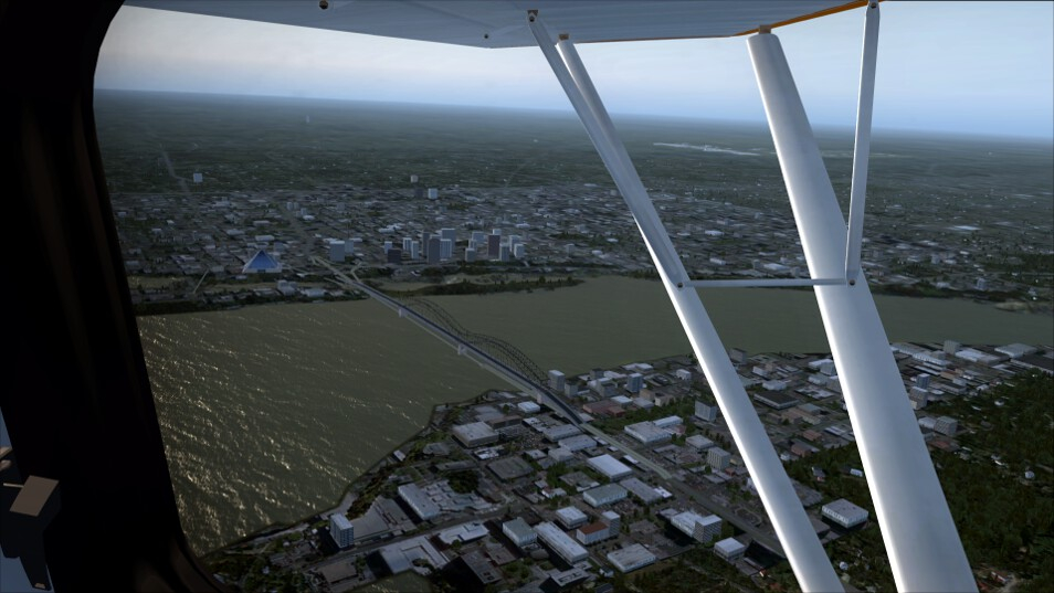 Kaum dass die Sonne aufgeht, gehts auch schon wieder weiter. Diesmal am Mississippi entlang bis hinunter nach Memphis, dann über die Suburbs von West Memphis weiter Richtung Westen. Zuerst zieht sich dieses letzte Stück, aber dann taucht unerwartet schon der Zielflughafen auf und ich muss ziemlich steil runter.