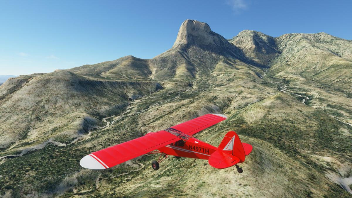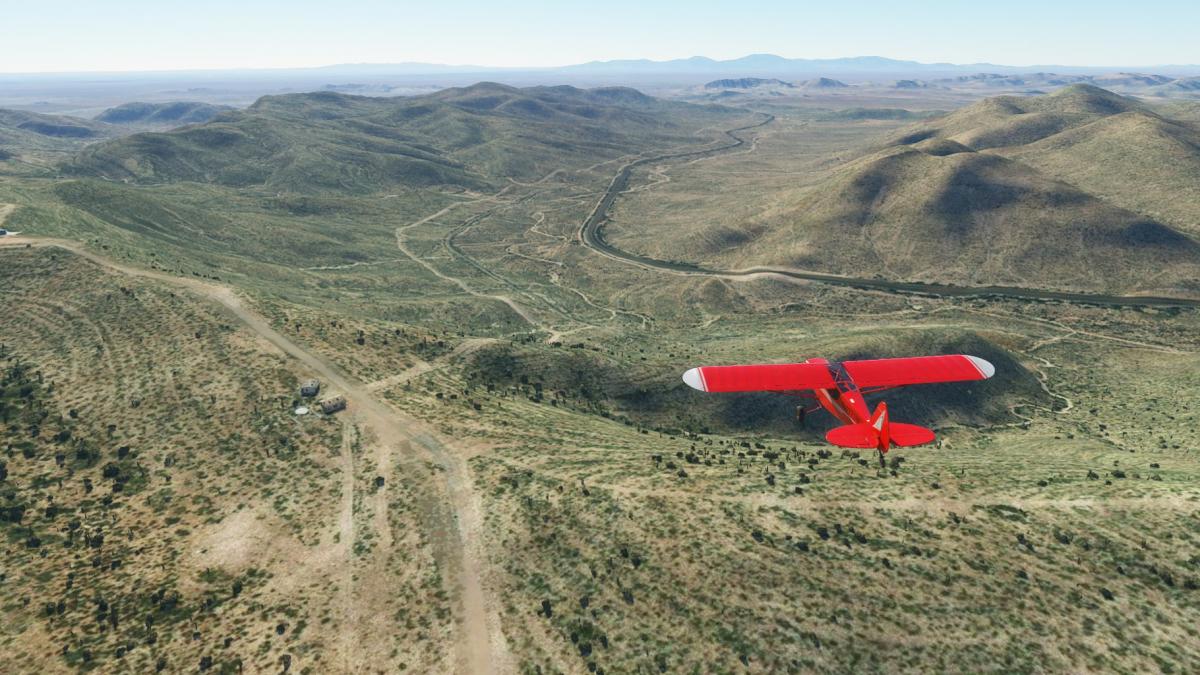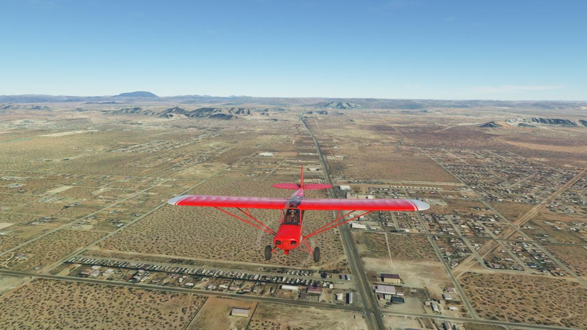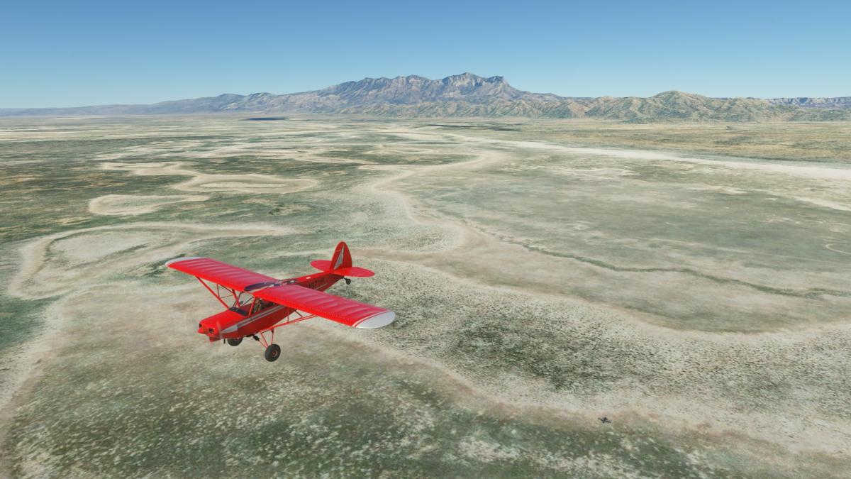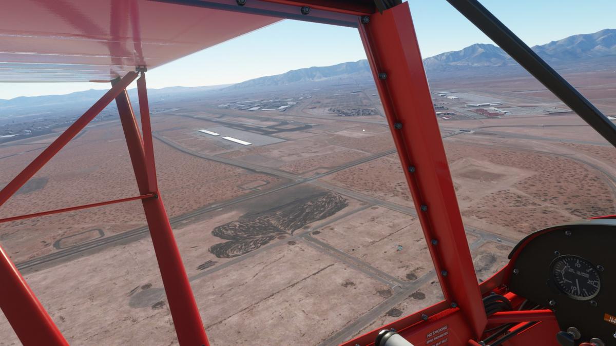 Nach dem Start in Carlsbad folge ich dem Highway 62, er führt über den Guadalupe Pass bis nach El Paso. Ich überfliege Whites City und begebe mich danach in den Schutz der Berge. Es schüttelt ganz schön bis ich in Pine Springs ankomme, die am Fuss der umliegenden Berge liegt. Bis 6000ft muss sich die Cub hinaufkämpfen, bis El Capitan hinter uns liegt. Danach geht es hinunter zum Linda Lake, von dem nicht mehr übrig zu sein scheint. Nun folgt ein langes Stück dem Highway entlang, bis sich der nochmal durch einen kleinen Gebirgszug schlängelt. Dann noch über Homestead Meadows, ein Vorort von El Paso, und in den Flughafen hinein.