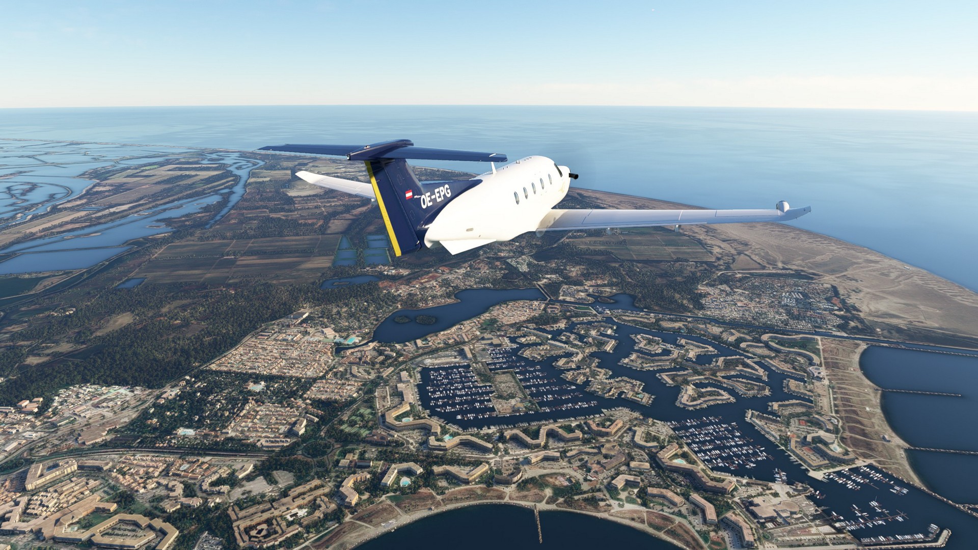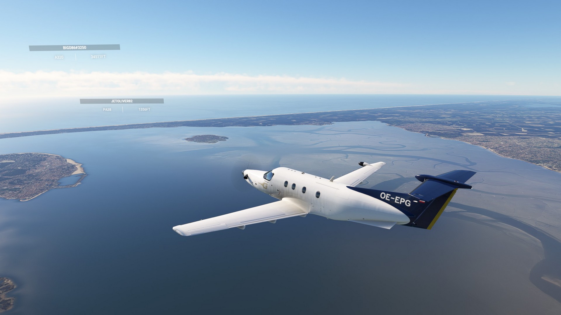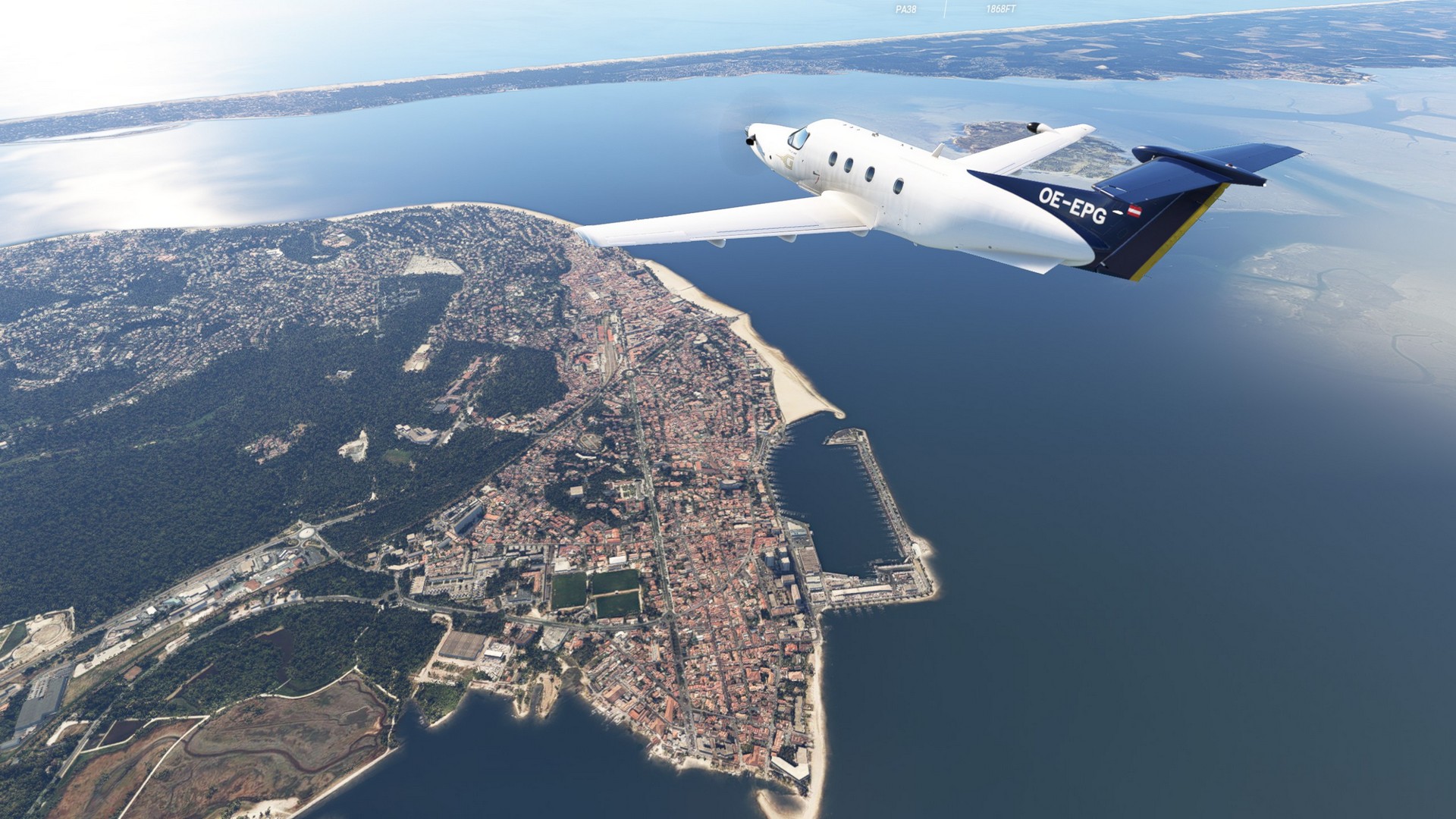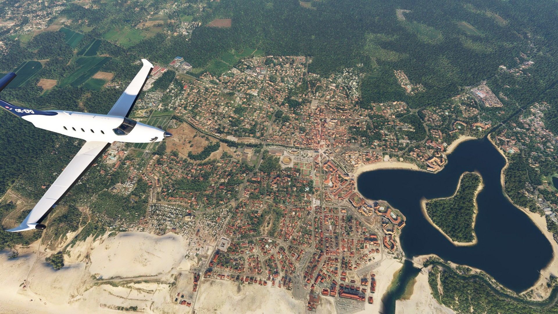 We started out from Bordeaux and were greeted by dense forests and the first impression was a rather dull one. But we did not even reach cruise altitude as the scenery changed drastically. Via Arcachon bay we were lead to the Atlantic coast. We would stay on these seemingly endless shores admiring the beaches and dunes for the reminder of the flight only making short detours to the airports Arcachon and Aquitaine.