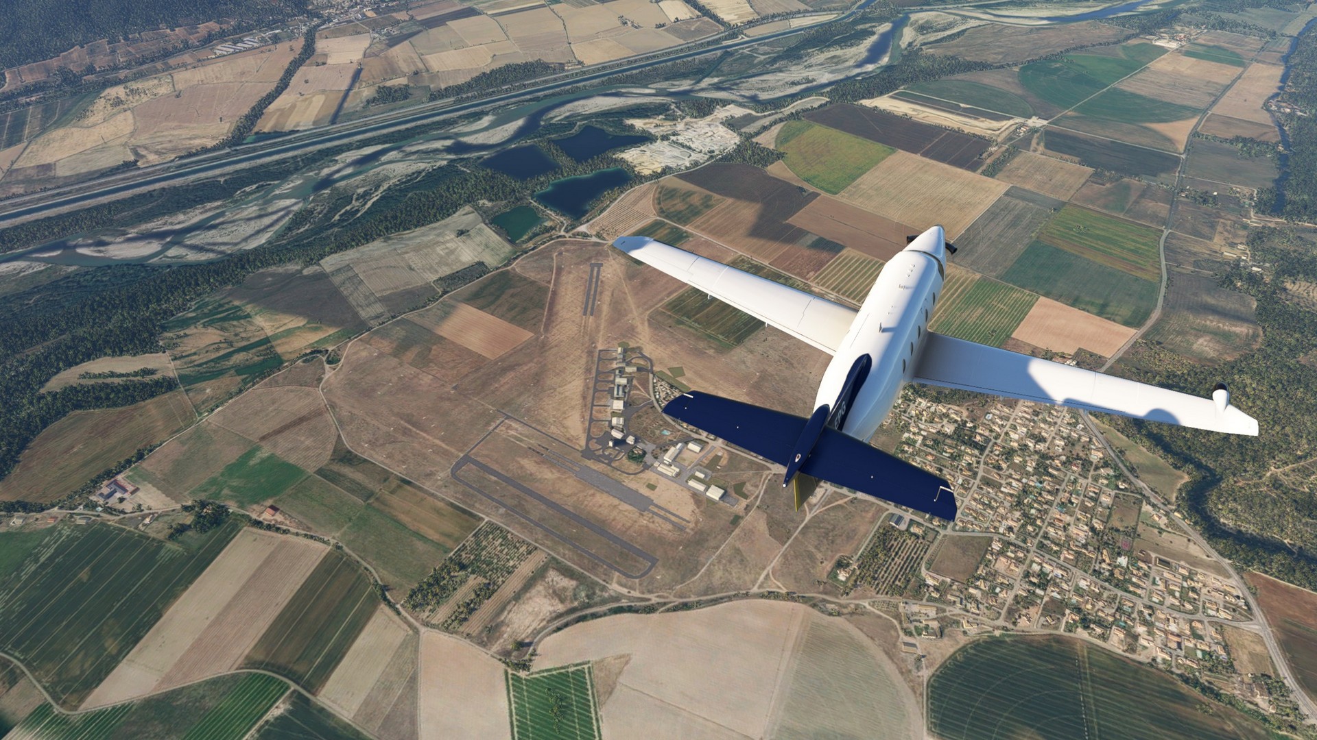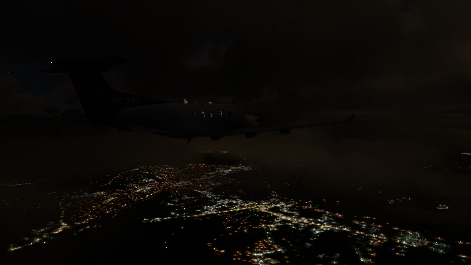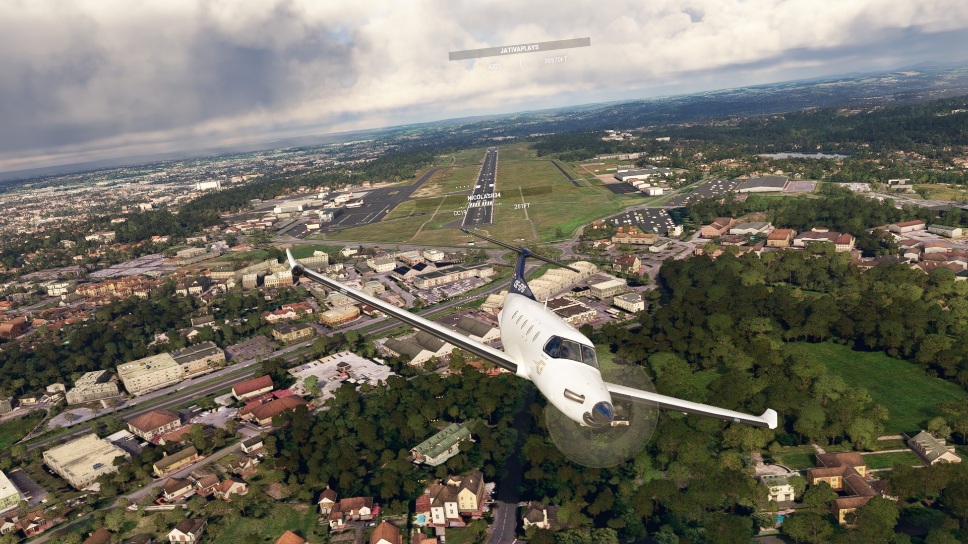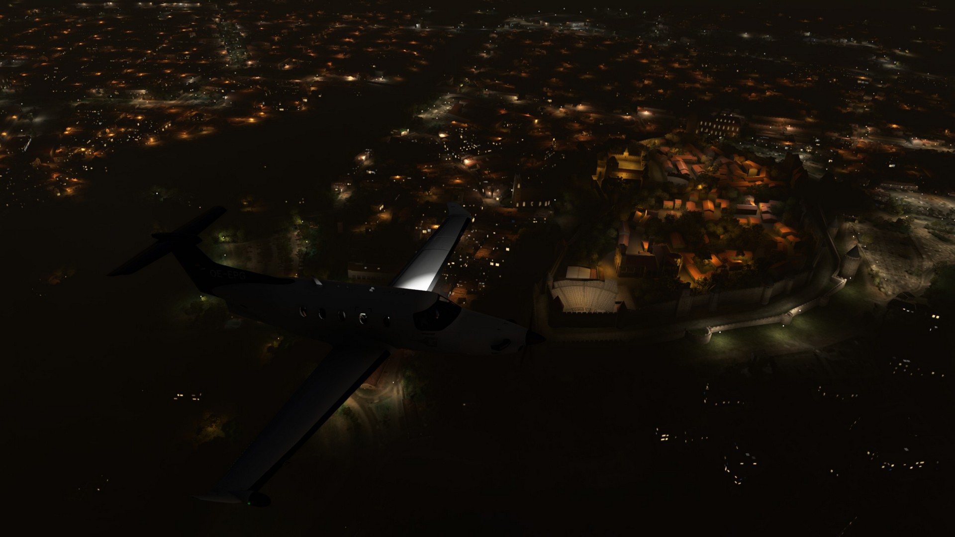 We flew north towards Carcassonne airport. By then the clouds had moved in and it was pitch black on the approach. On getting in the air again, we passed the old city center of Carcassonne, an astonishing site, even in MSFS.