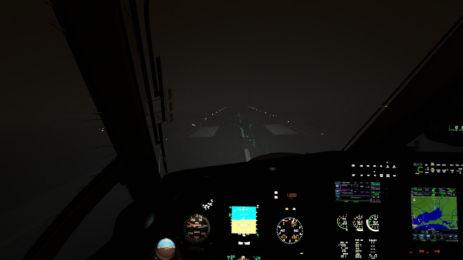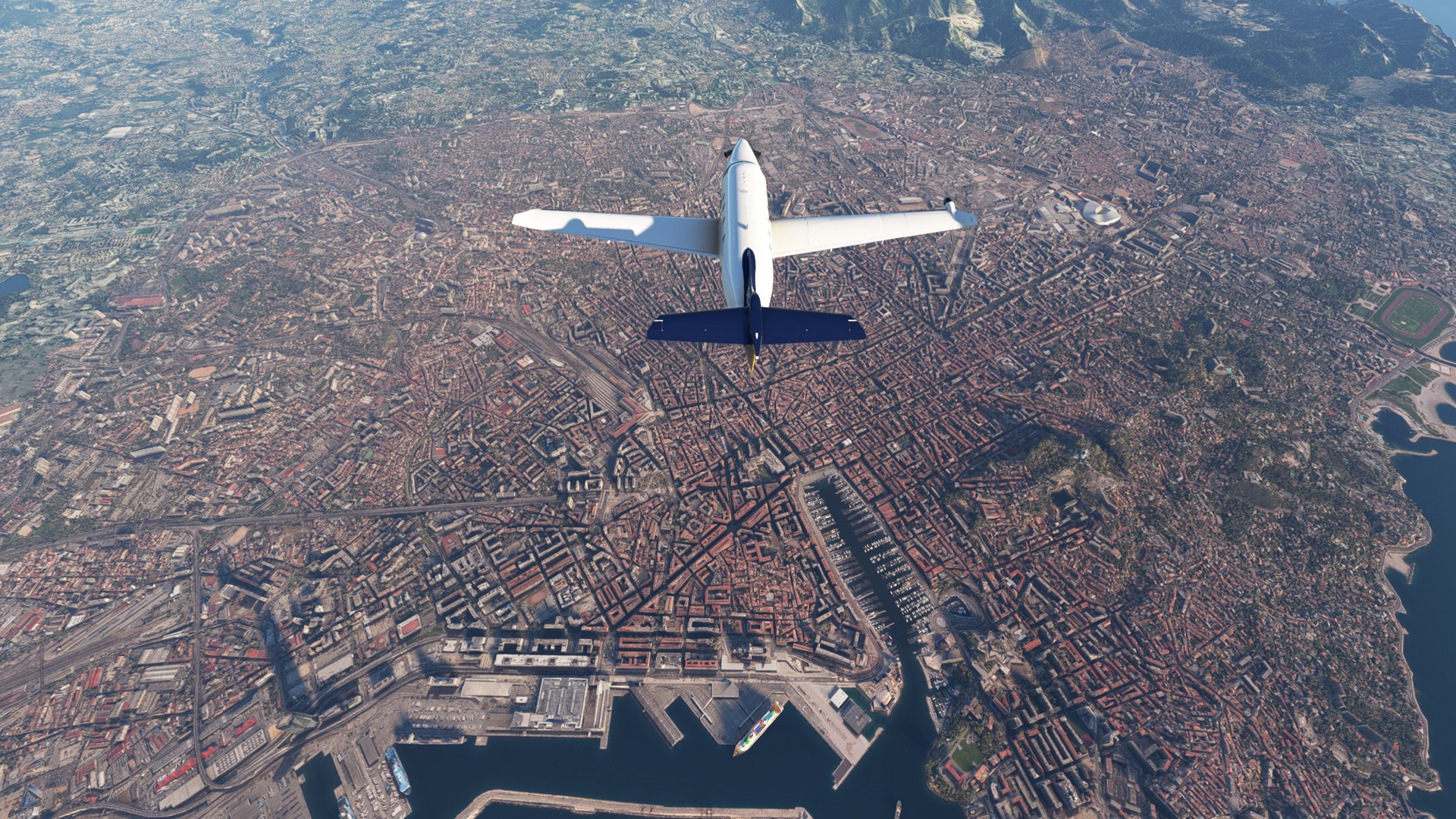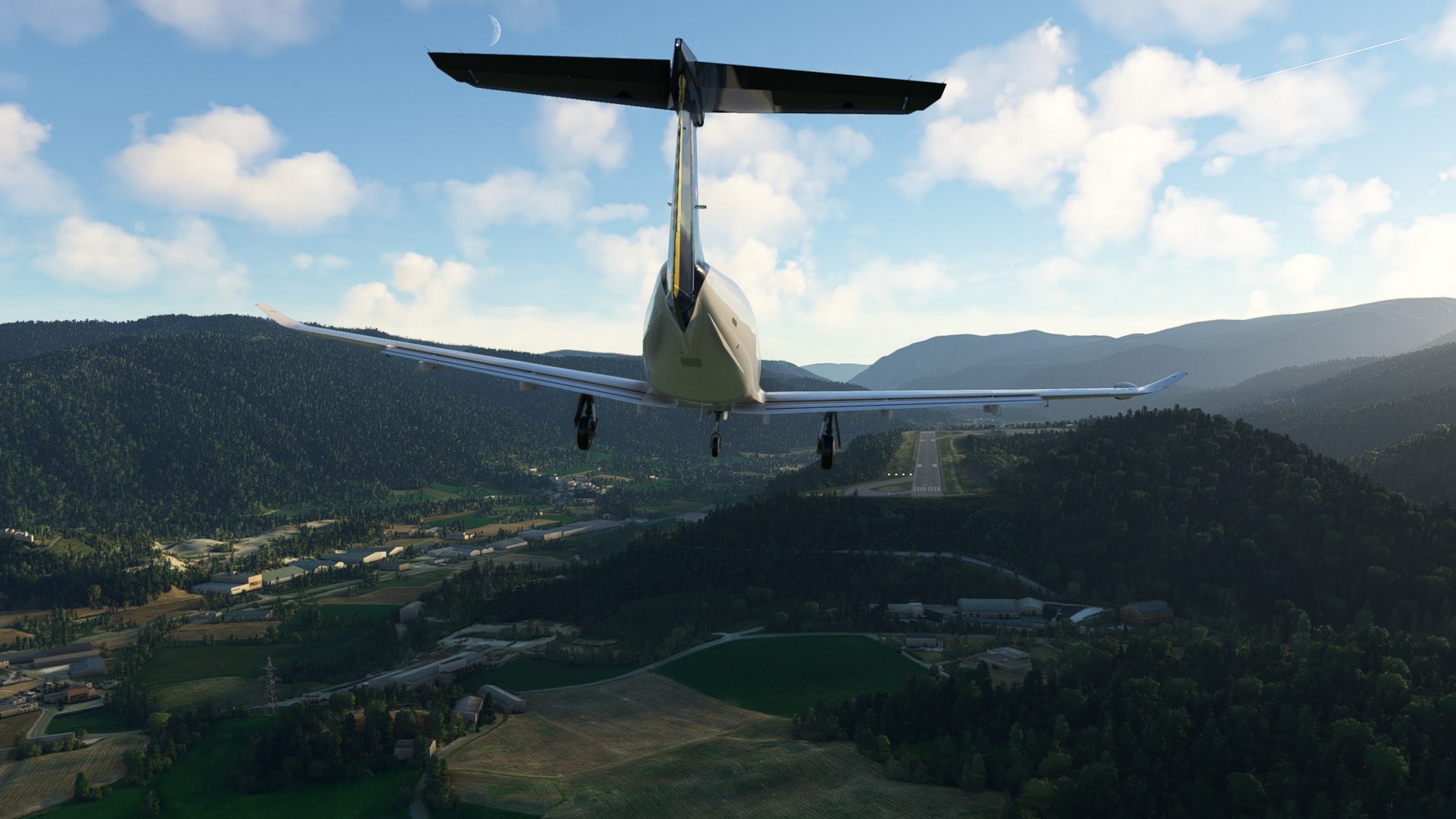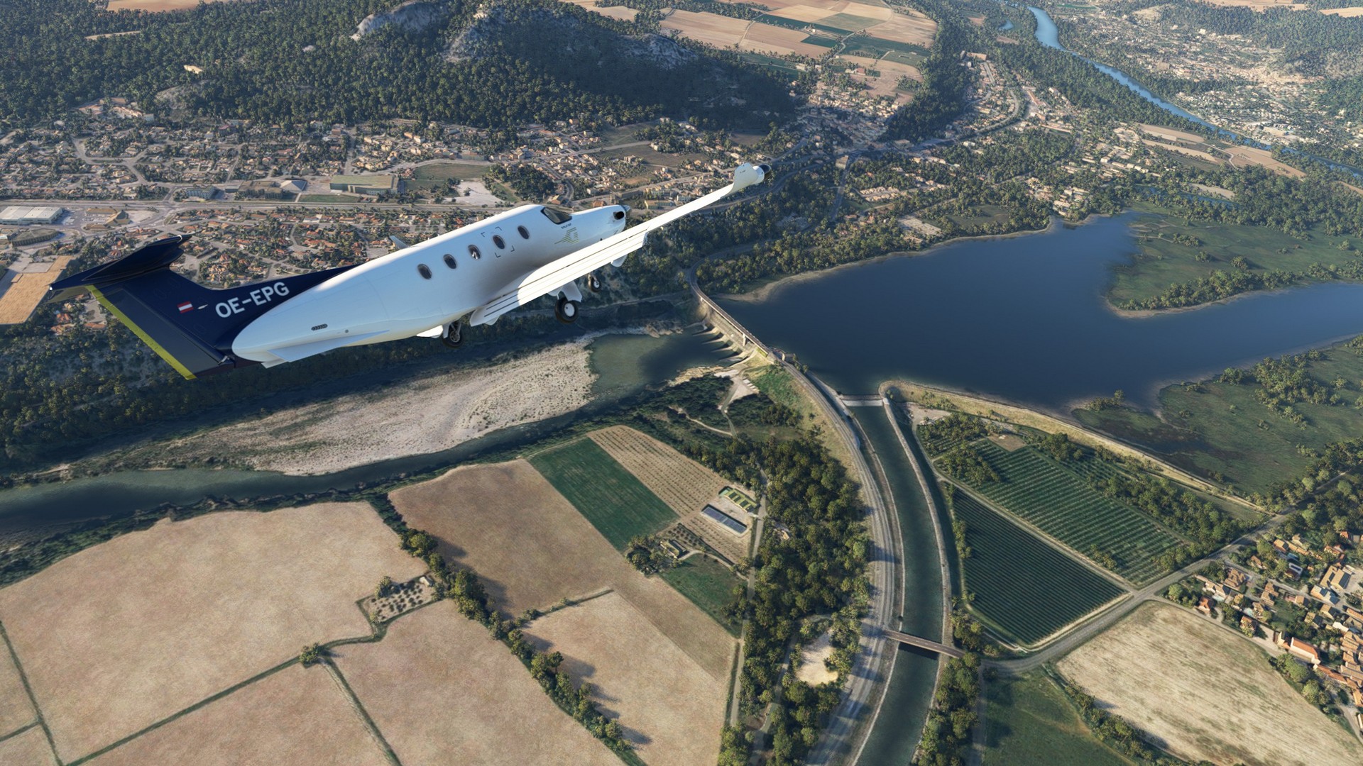 We flew north towards Carcassonne airport. By then the clouds had moved in and it was pitch black on the approach. On getting in the air again, we passed the old city center of Carcassonne, an astonishing site, even in MSFS.