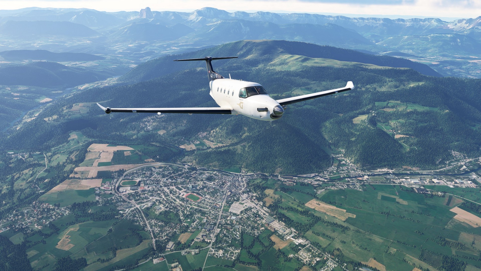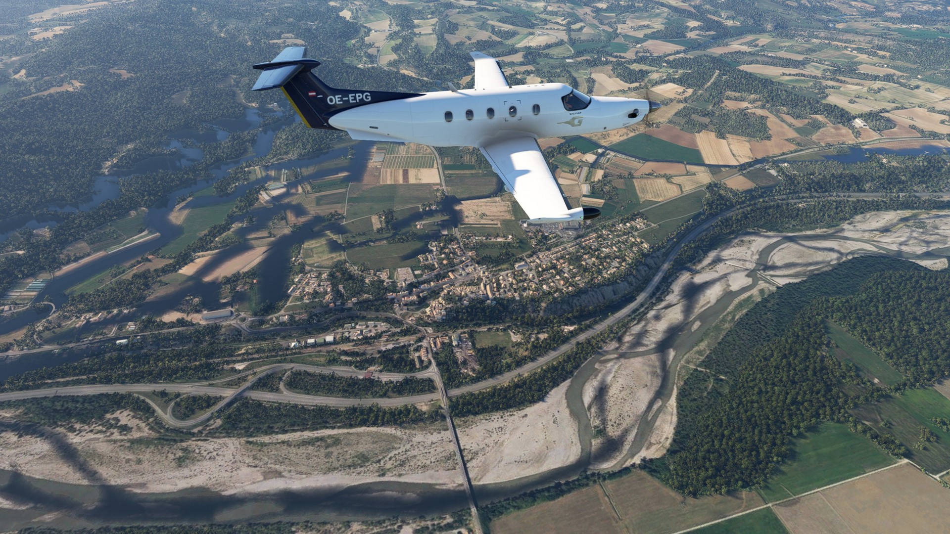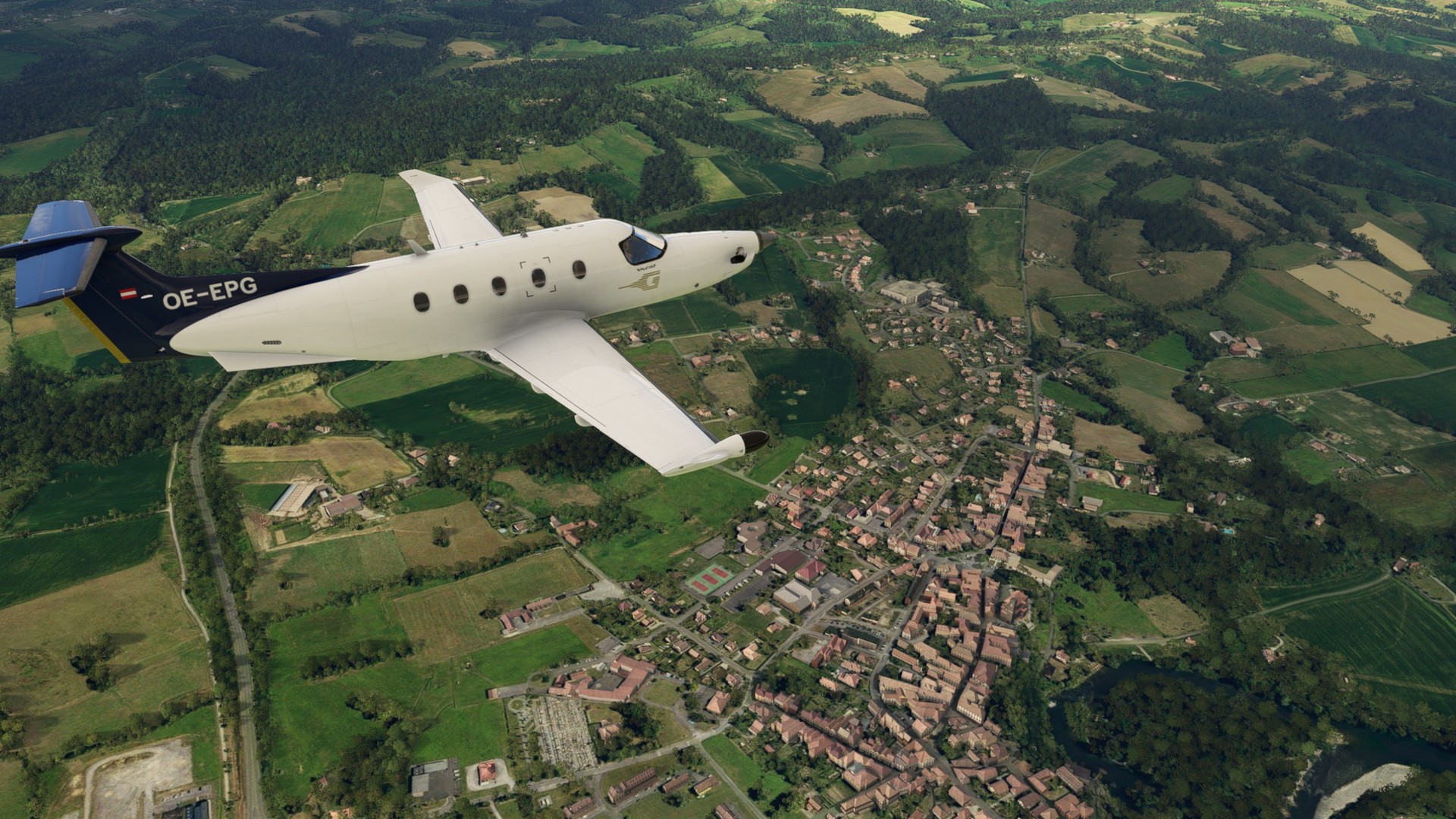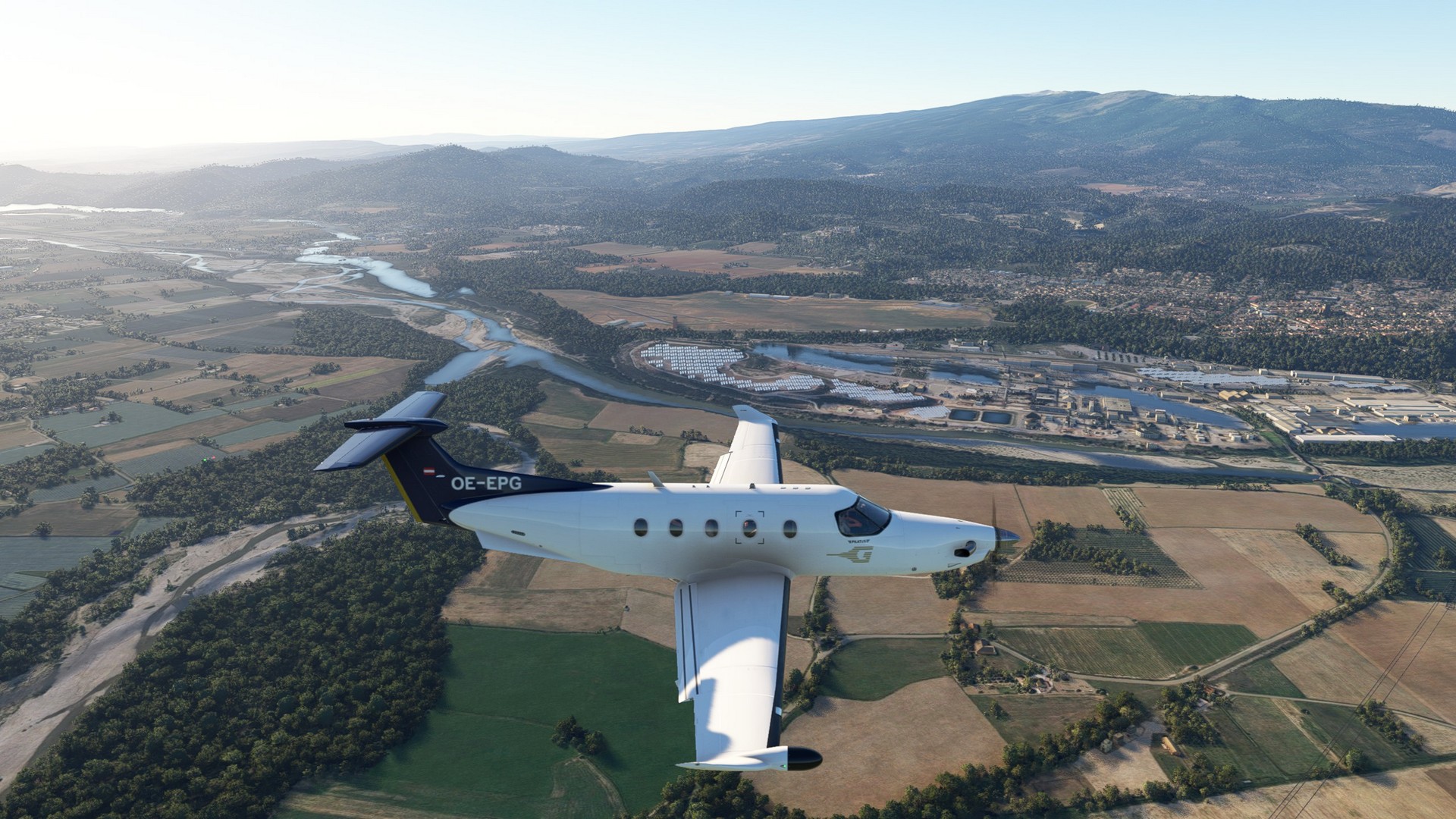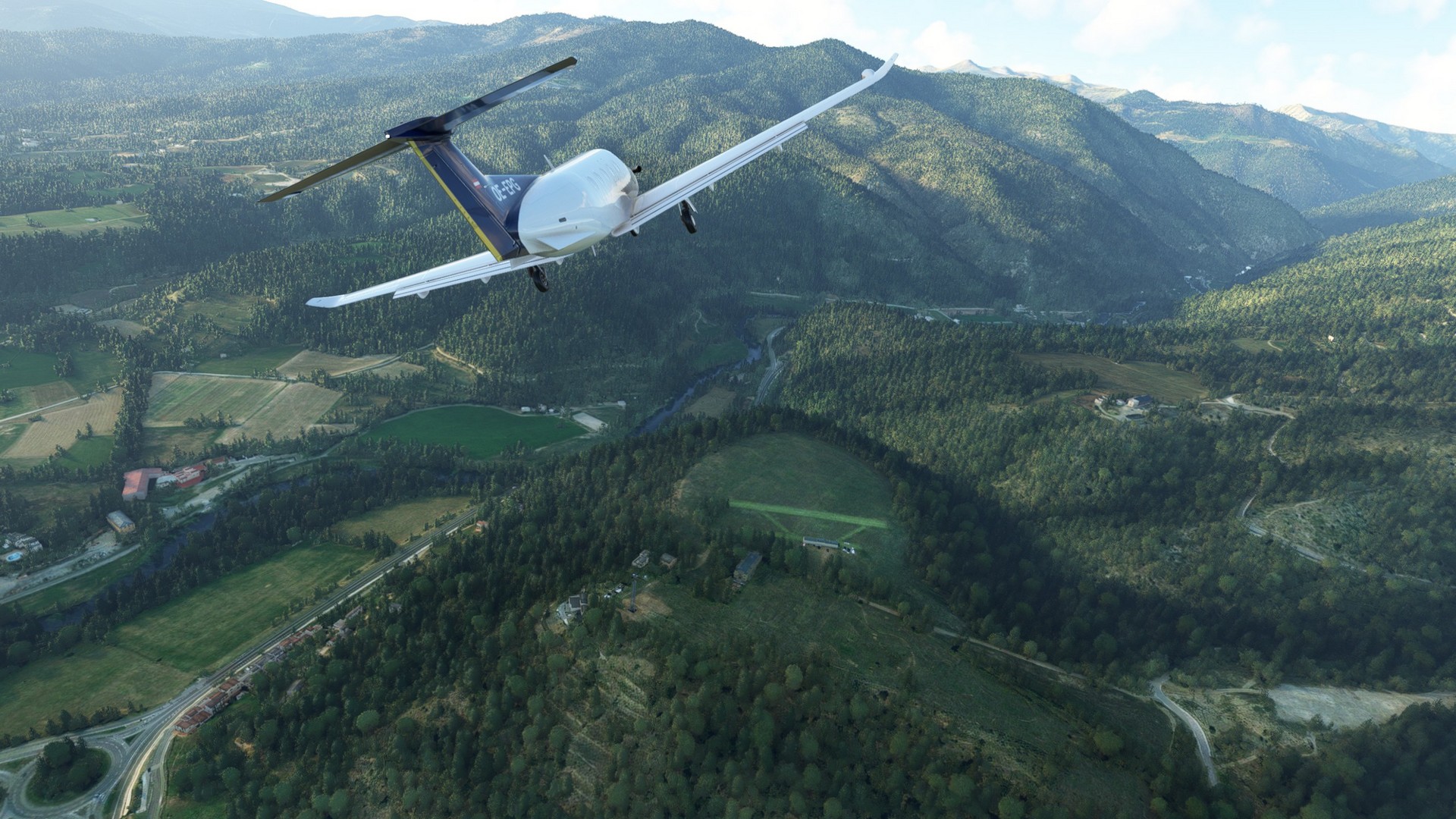 We flew north towards Carcassonne airport. By then the clouds had moved in and it was pitch black on the approach. On getting in the air again, we passed the old city center of Carcassonne, an astonishing site, even in MSFS.
