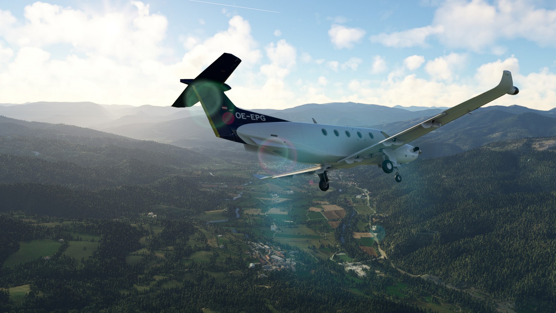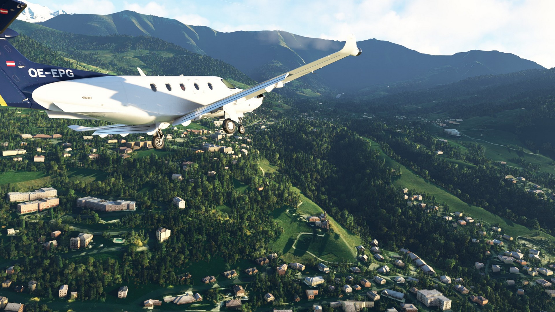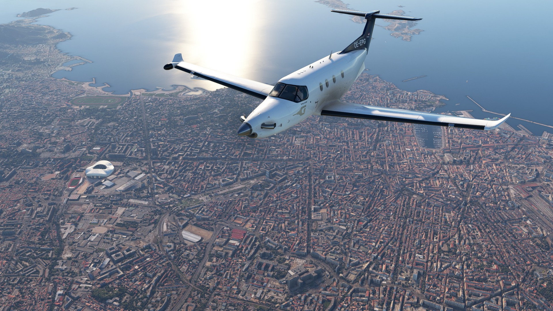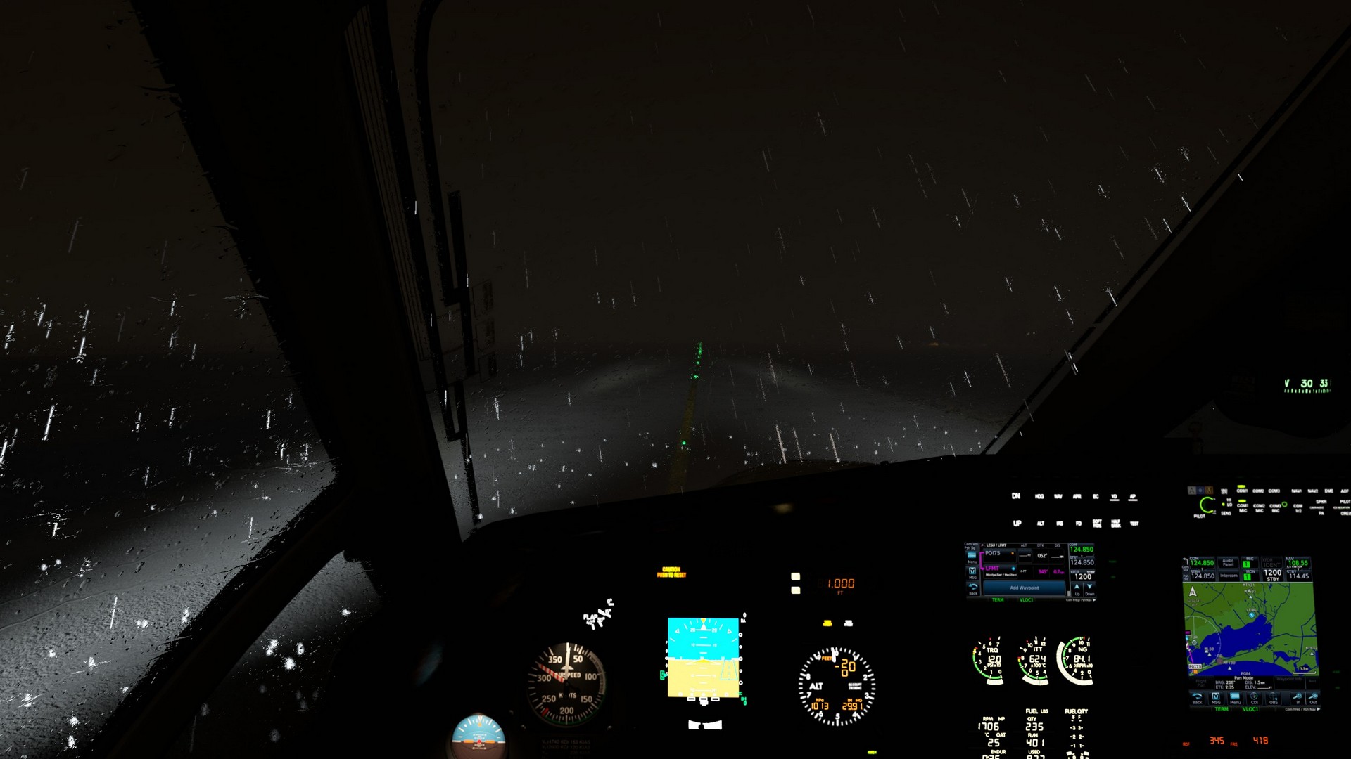 We flew north towards Carcassonne airport. By then the clouds had moved in and it was pitch black on the approach. On getting in the air again, we passed the old city center of Carcassonne, an astonishing site, even in MSFS.