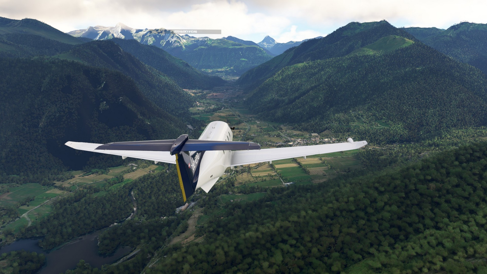 Now the weather got worse. We climbed into the mountains and even had snow falling. The occasional hole in the clouds gave breathtaking views at the Pyrenees. Our next stop should have been Castillon De La Laquette, but we found this to small a strip to land on. And it is entirely fictional after all.
