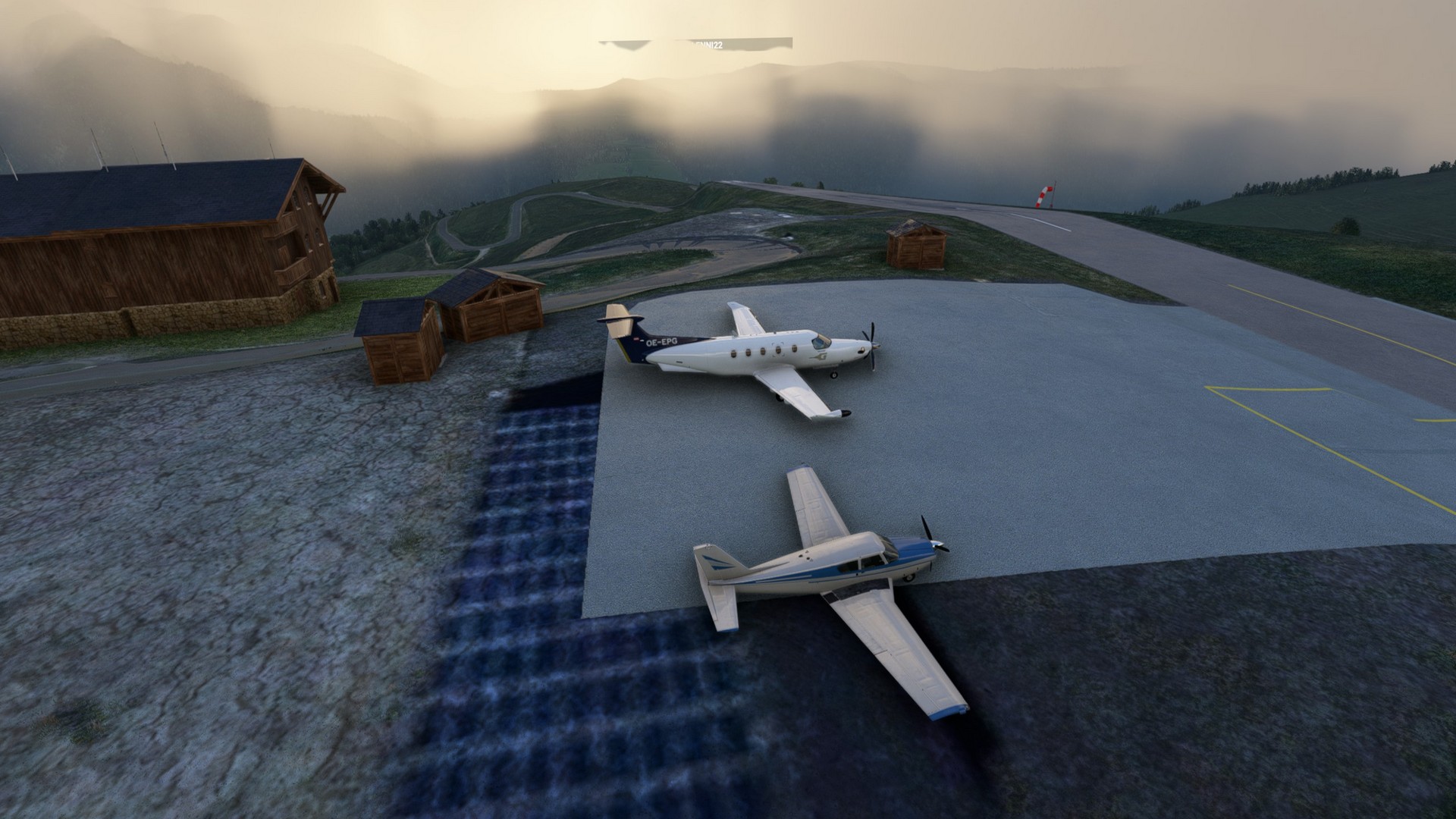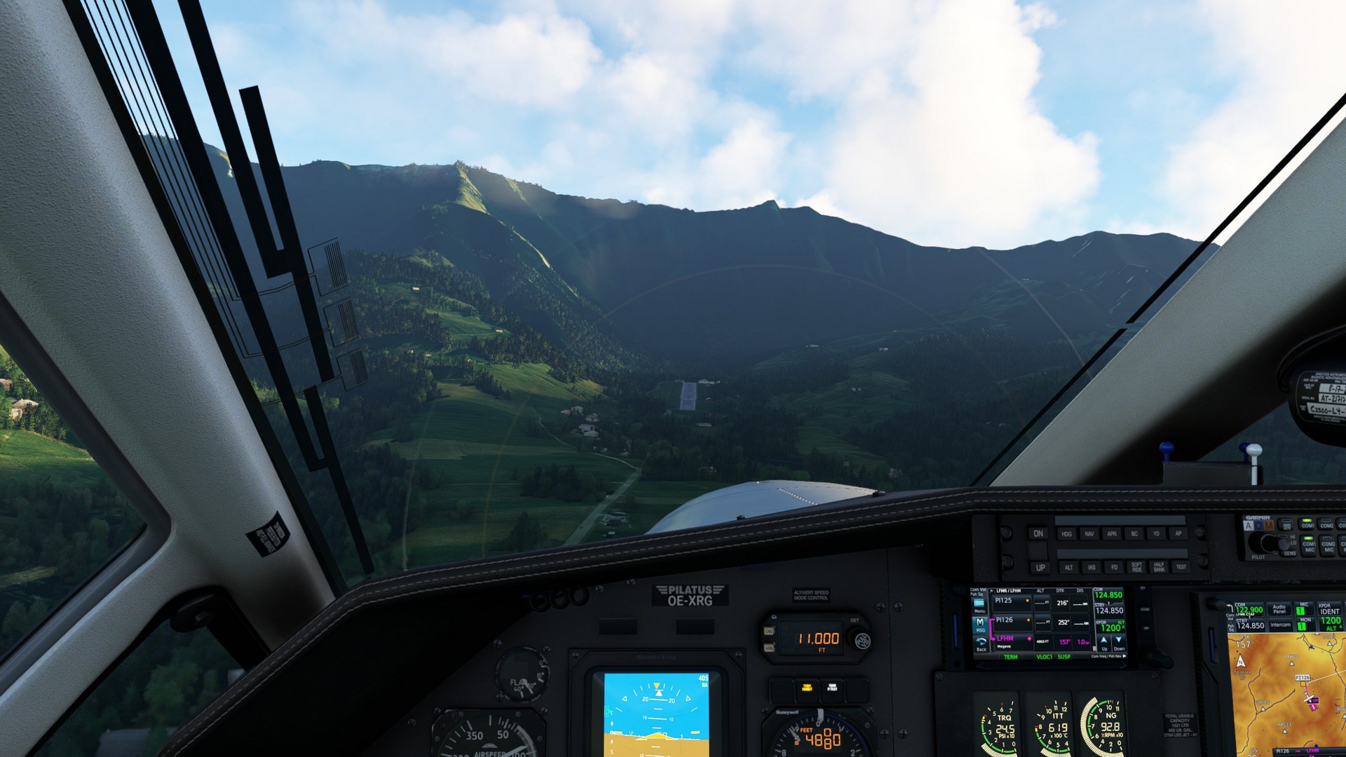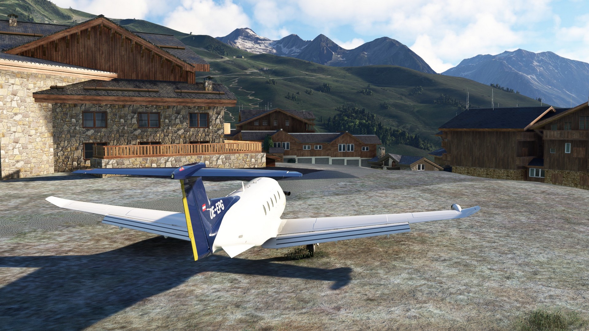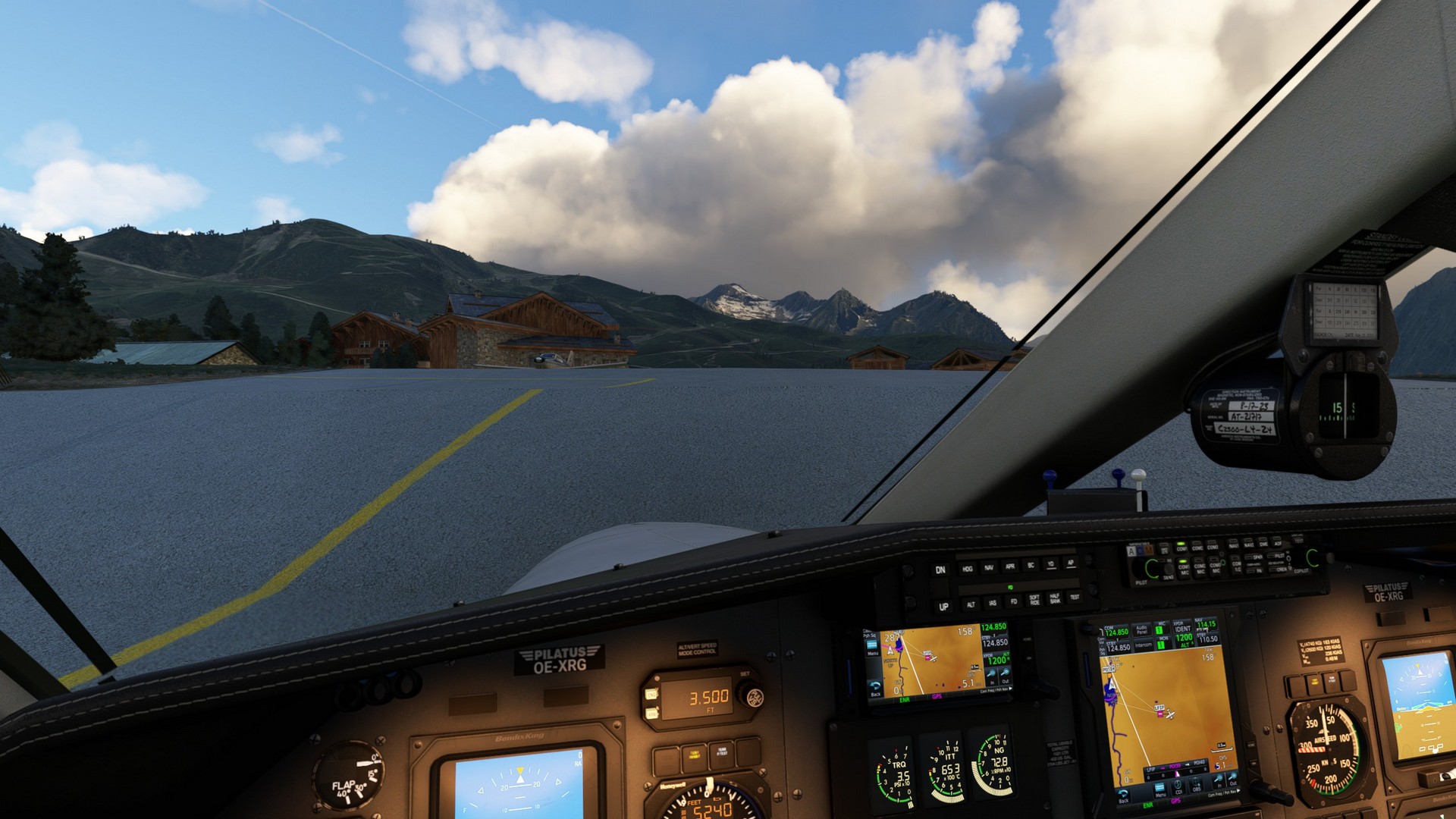 So we continued climbing out of the valley and searched for our first altiport on this trip at 5000 feet. Being high and fast on the approach (this seems to be evolving into a bad habit in the Pilatus), I had to make another turn out of the valley before trying again. The final was messy, the sloped runway tricked me quite a bit and the landing was rather hard. But the view that greeted me afterwards was spectacular.