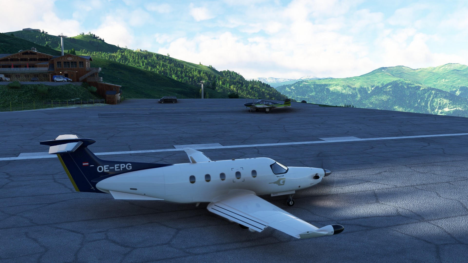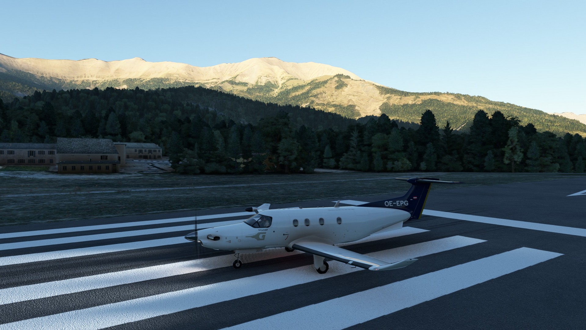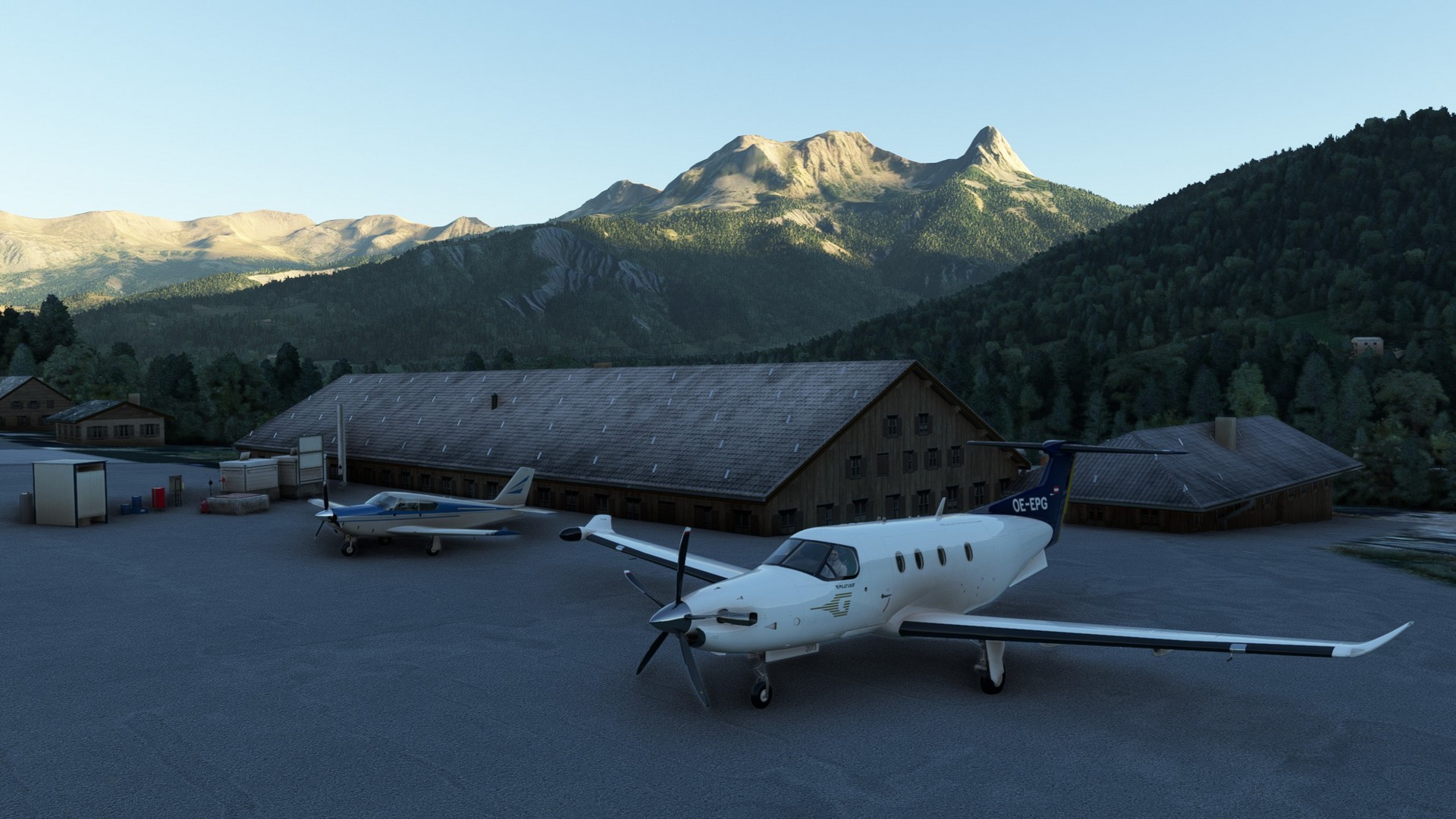 So we continued climbing out of the valley and searched for our first altiport on this trip at 5000 feet. Being high and fast on the approach (this seems to be evolving into a bad habit in the Pilatus), I had to make another turn out of the valley before trying again. The final was messy, the sloped runway tricked me quite a bit and the landing was rather hard. But the view that greeted me afterwards was spectacular.