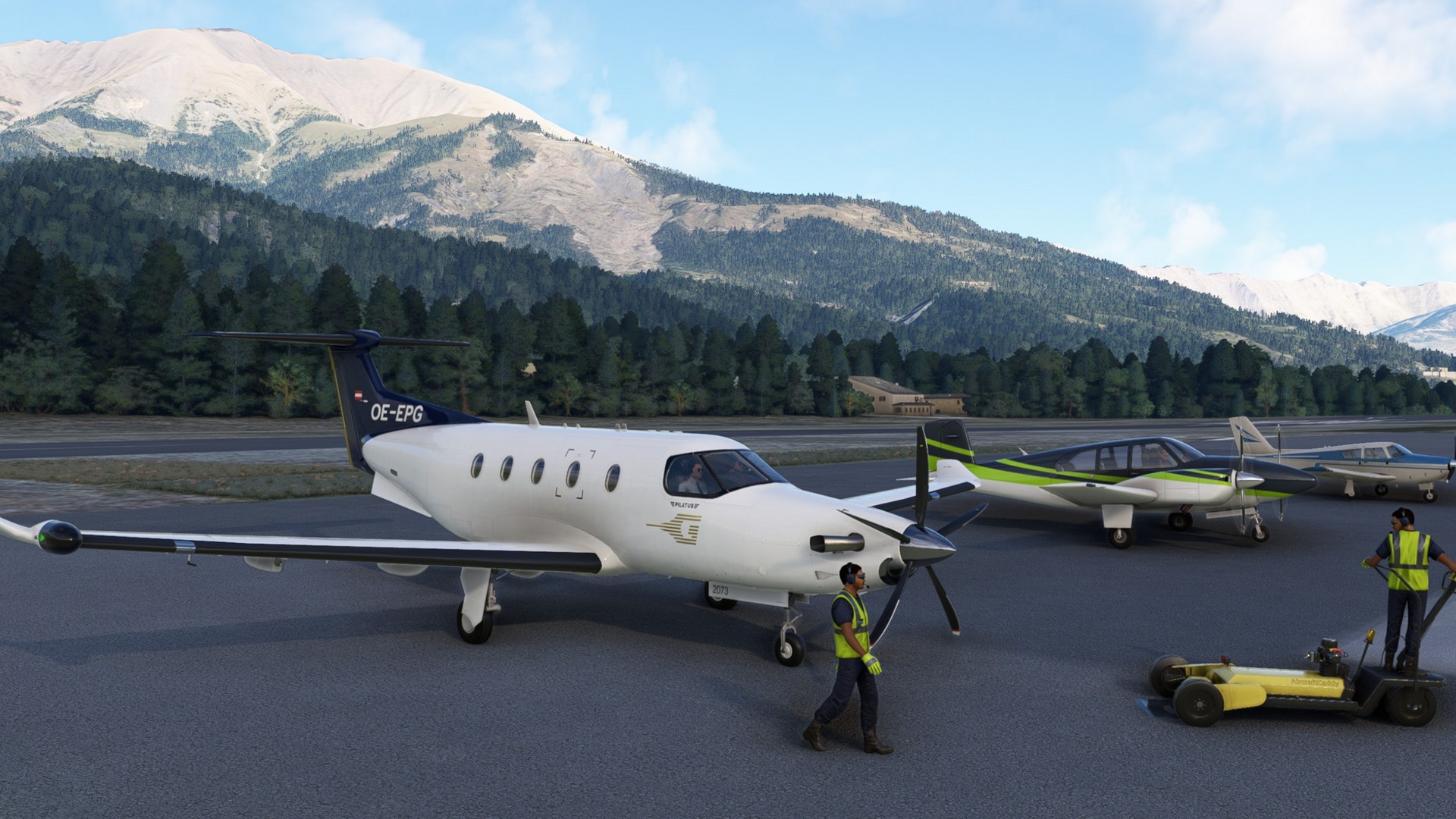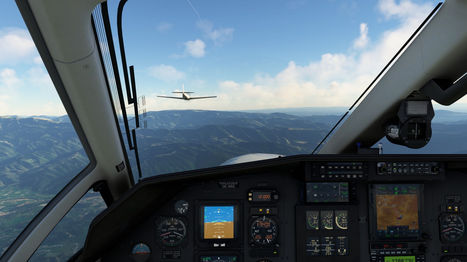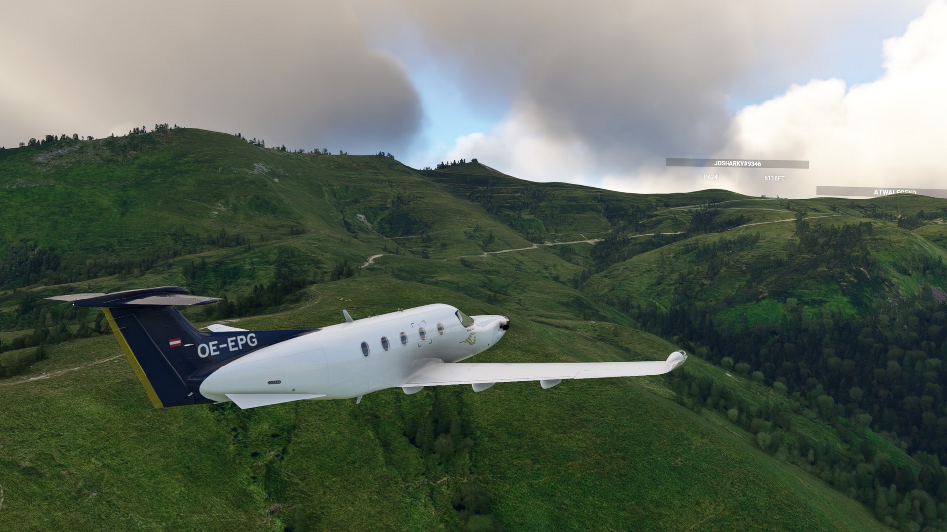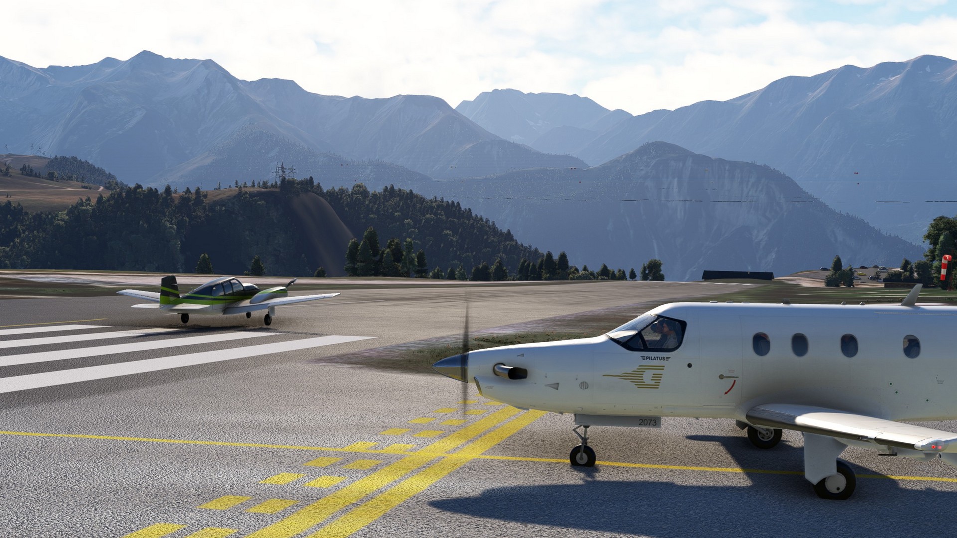 So we continued climbing out of the valley and searched for our first altiport on this trip at 5000 feet. Being high and fast on the approach (this seems to be evolving into a bad habit in the Pilatus), I had to make another turn out of the valley before trying again. The final was messy, the sloped runway tricked me quite a bit and the landing was rather hard. But the view that greeted me afterwards was spectacular.