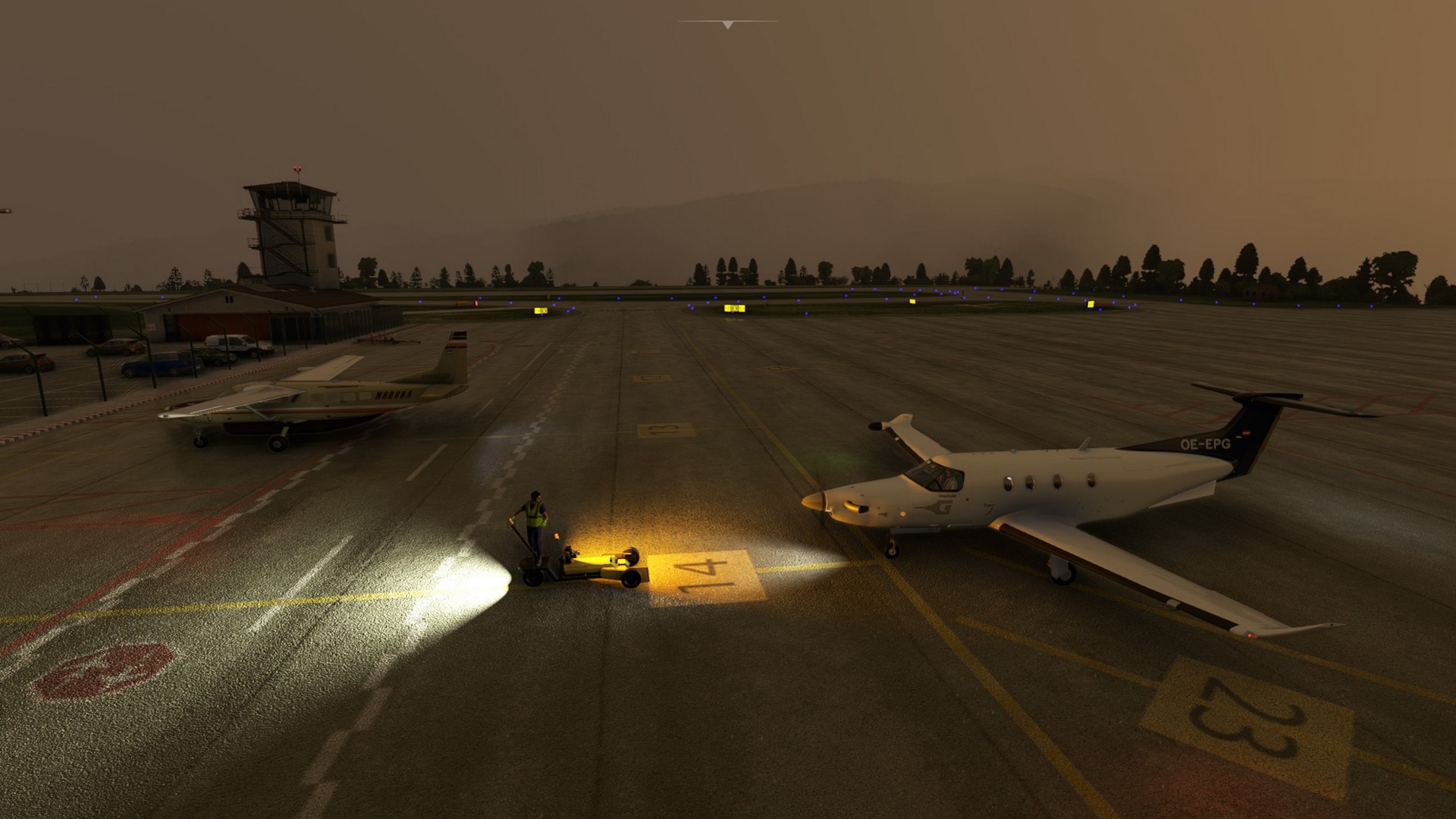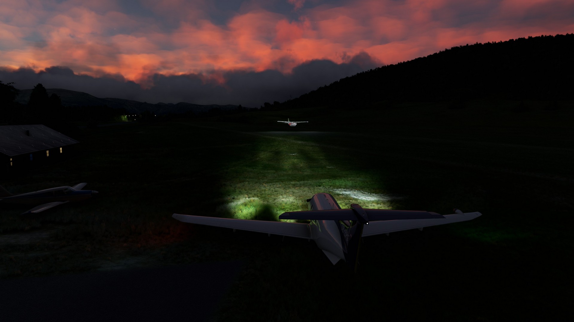 We started our flight during the “golden hour” – sunset. We had to climb quite high to get on top of the clouds at 14.000ft. As we crossed back into France it was nearly dark when we landed at our first stop, Mont-Louis La Quillane, a small double runway gras strip right next to the ski resort.