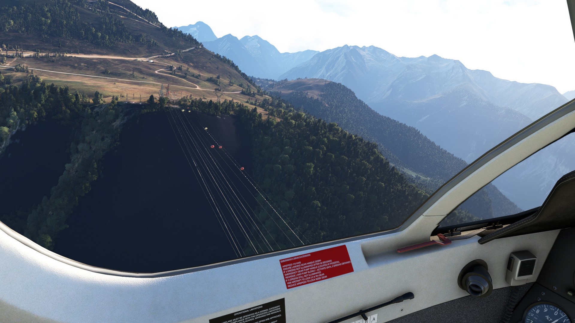 The altiport next to it was a bit too small for us, so we continued north towards L’Alpe D’Huez. The power lines right in front of the airport made it tricky to go in and out, but we managed none the less.