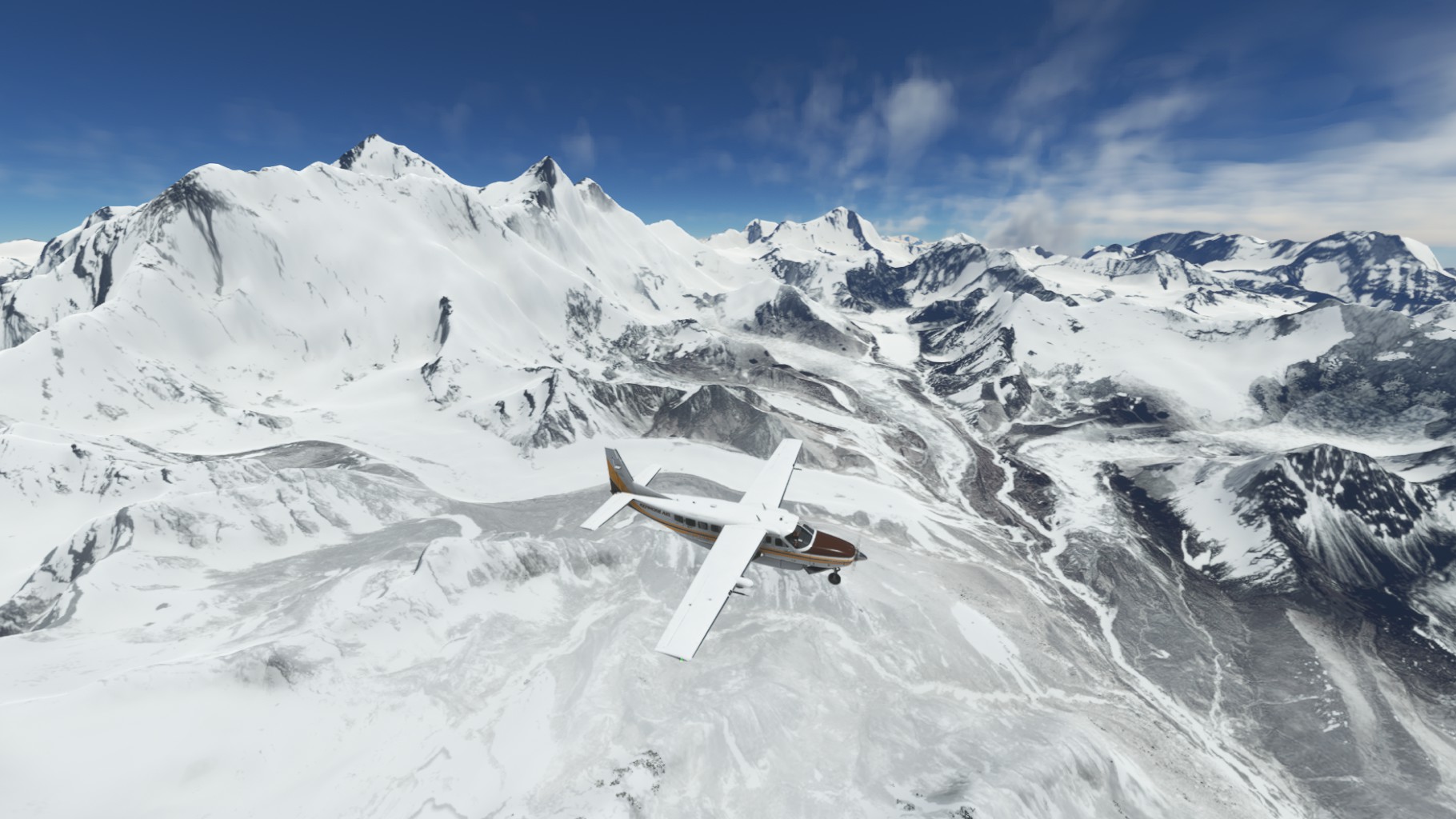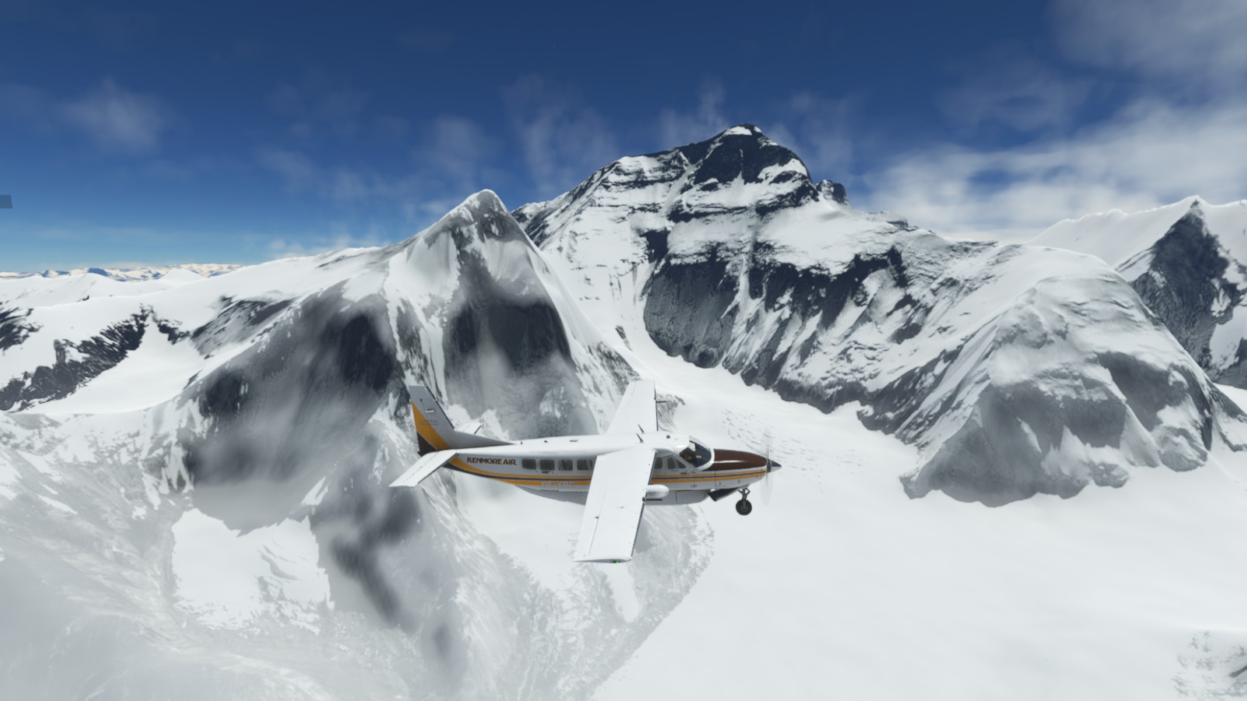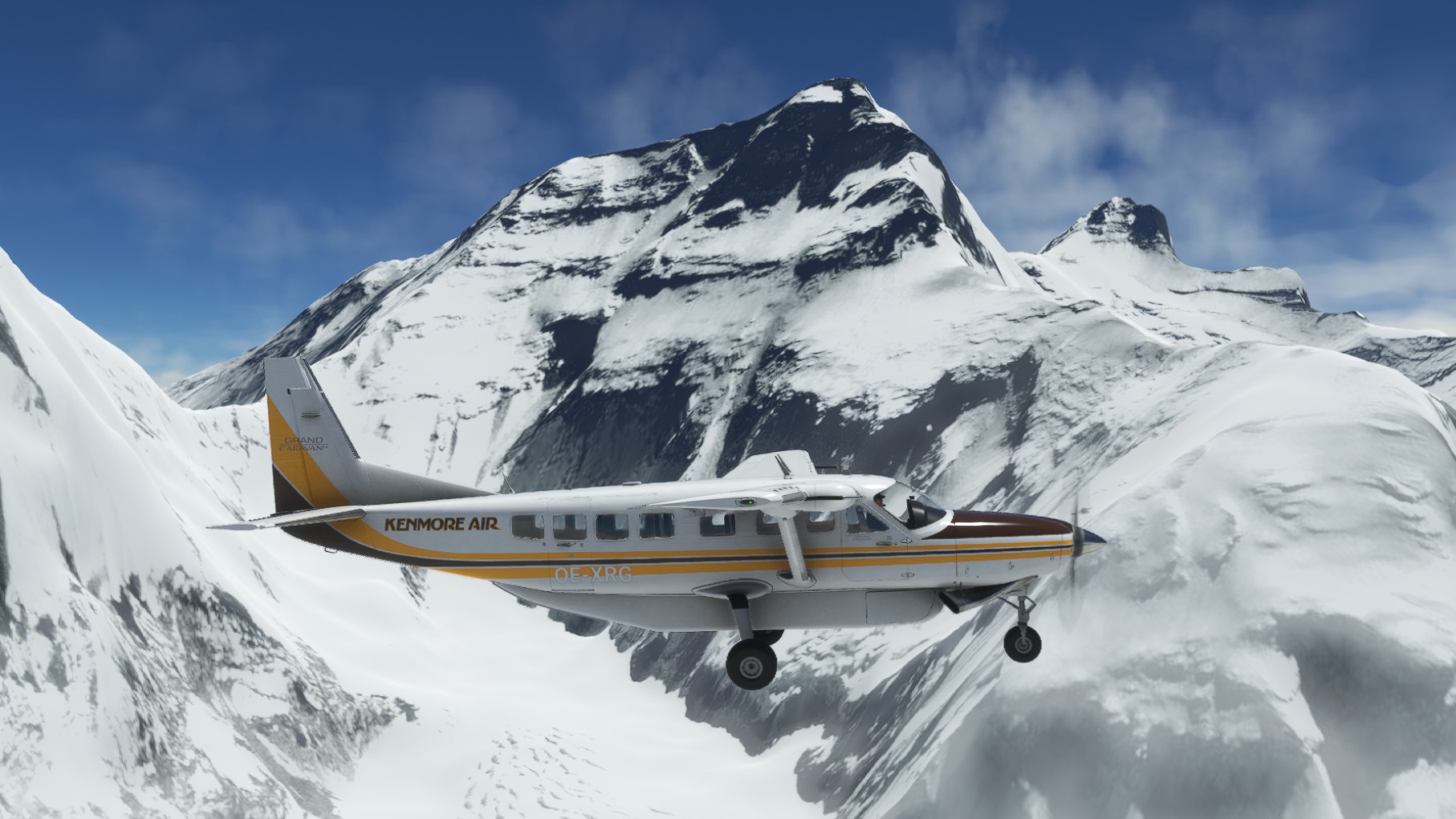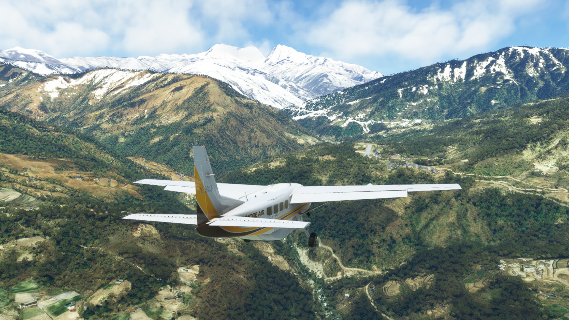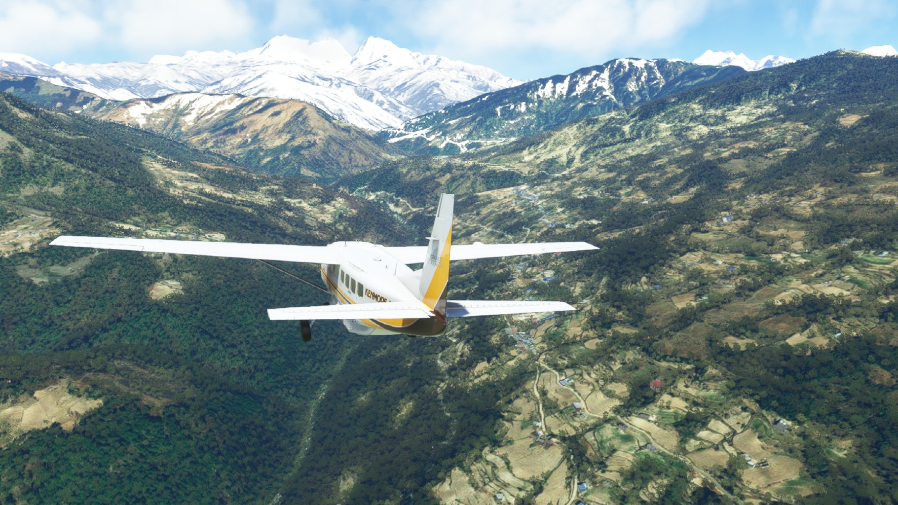First time I used this aircraft for a bit longer. Made a few flights in the Mount Everest area and tried out numerous airports. The Caravan is really fighting as its engine looses quite some power going up that high. A real challenge on the hight altutude fields around Lukla.