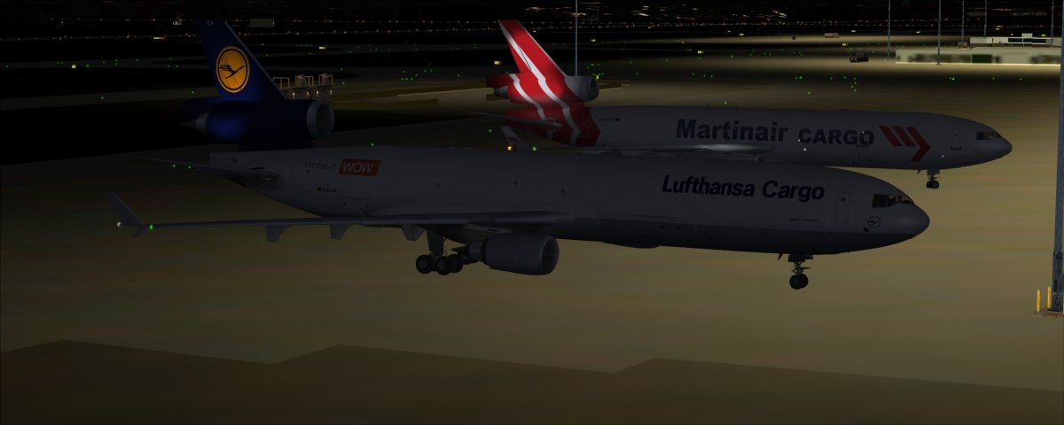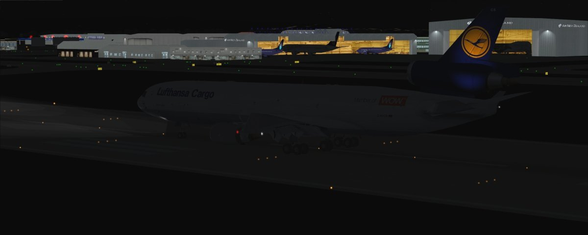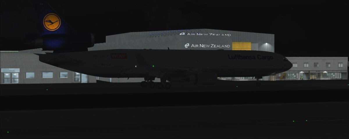 Diesmal wurde ich wieder von 2 LHAs begleitet und wir starteten ohne grosse Probleme pünktlich von den Fijis. Auf der Luftstrasse selbst herrschte dann ausser etwas Gegenwind bestes Wetter und wie erwartet wenig Verkehr. Im Anflug auf Auckland wechselte der Wind und wir mussten unsere Landebahn nochmal ändern. Noch dazu ist der Final der Anflugroute sehr kurz, kaum ist man fertig mit Eindrehen geht es auch schon runter. Im Endeffekt war bei mir sogar der Glidscope vor dem Localizer. Eine Konstellation, die man im Normalfall vermeiden möchte. Die Landungen in ein paar Minuten Abstand alle wie aus dem Lehrbuch, nur gemeinsamen Parkplatz konnten wir in Auckland nicht finden. So standen 2 MD11s am Air New Zealand Apron und eine musste mit dem DHL Apron vorlieb nehmen. Neu Seeland ist ein tolles Reiseziel im Flusi. Leider habe ich keine Bilder davon, da sich mein SimPciShot schon beim Pushback verabschiedet hatte und FRAPS nicht speicherte.
