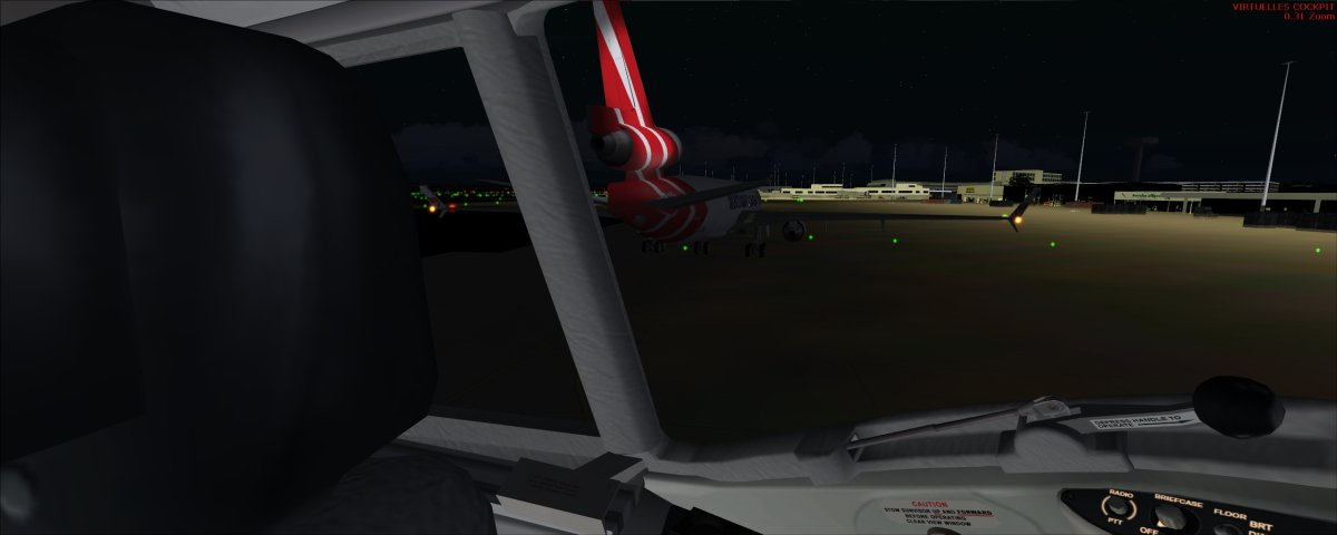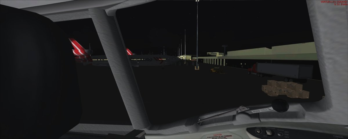 Wir überqueren den australischen Kontinent von der Ost- zur Westküste. Der Start mit der fast leeren MD-11 ist ein Fest, schon bei der Hälfte der Landebahn schiesst der Flieger wie eine Rakete nach oben. Doch kaum das ich in der Luft bin, schmiert mein Flusi wieder einmal ab, das scheint zur Gewohnheit zu werden. Seit ich 2 Bildschrime verwende ist immer irgendwo der Wurm drinnen. Aber dank Zeitbeschleunigung habe ich bald wieder aufgeholt und wir setzen knapp hintereinander in Perth auf.