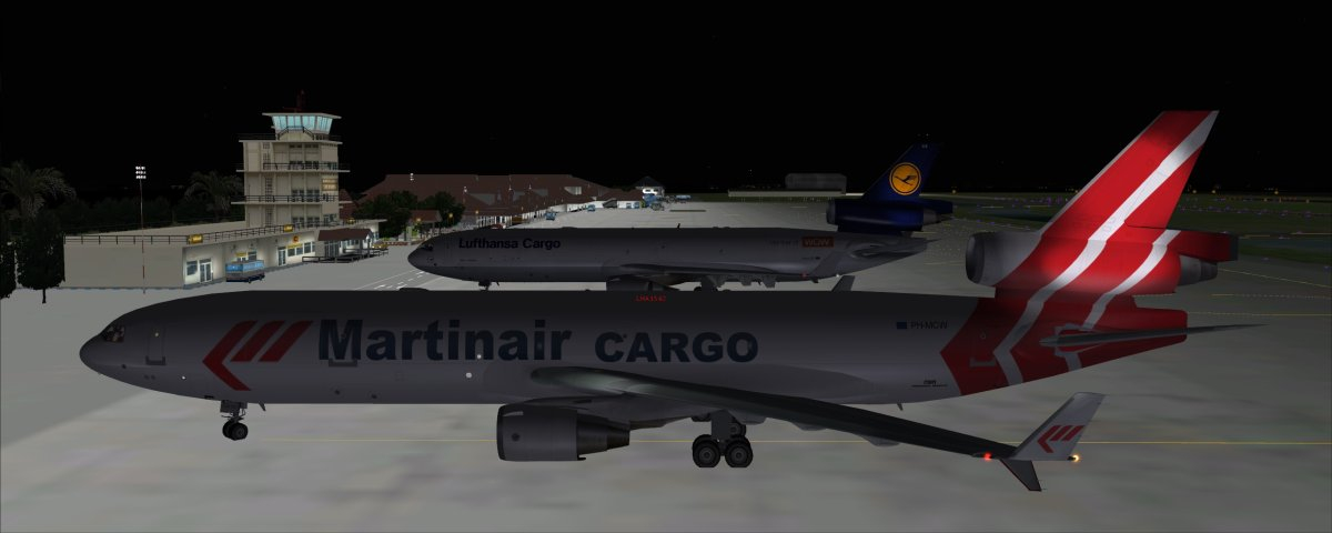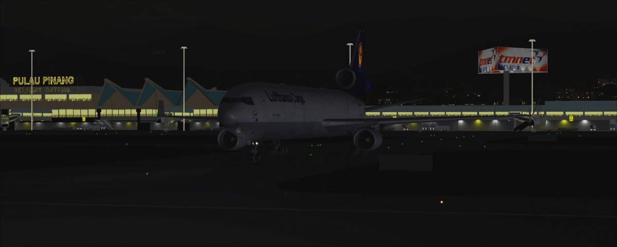 Ich scheine den Flug nach Penang alleine antreten zu müssen. Doch kurz vor knapp erscheinen dann doch noch eine UPS 767 und, wie gewohnt, eine LHA. Schön, schön. Leider ist mein Wetter diesmal so ganz anders als gewohnt und so wird nichts aus einem Formationsflug. Ich muss sogar noch einen Stepclimb hinterher legen, damit der Sprit auch reicht. Bei reichlich Wolken geht es dann als Letzter nach Penang hinein und wir füllen den Cargo Apron gut aus. Toller Flug und auch mein Flusi läuft nun wieder wie am Schnürchen!