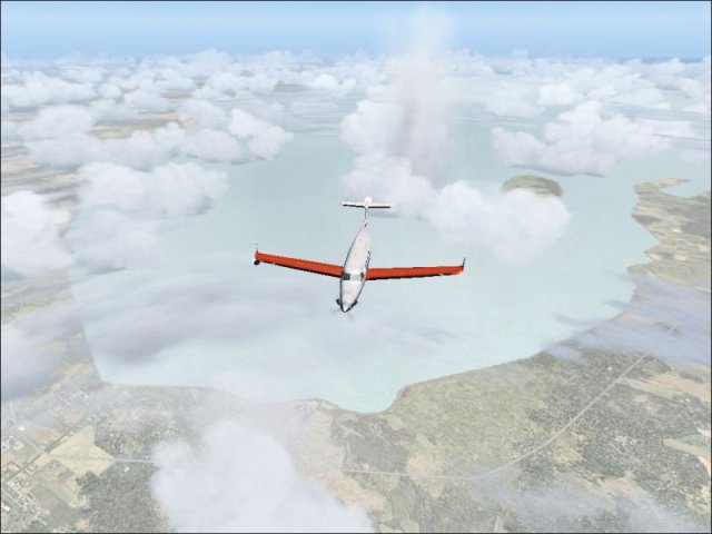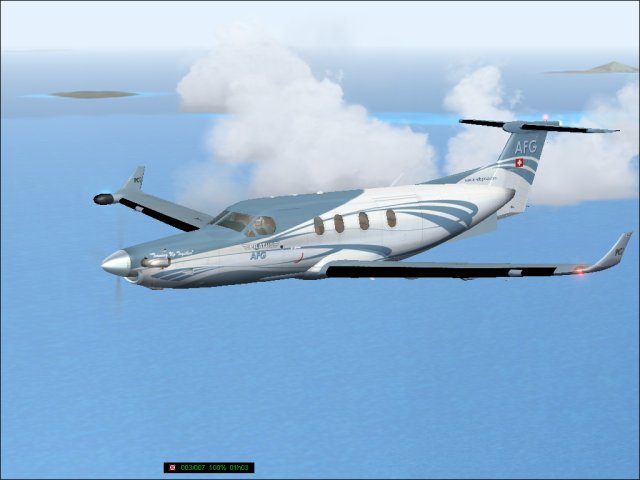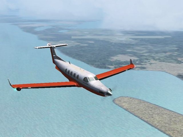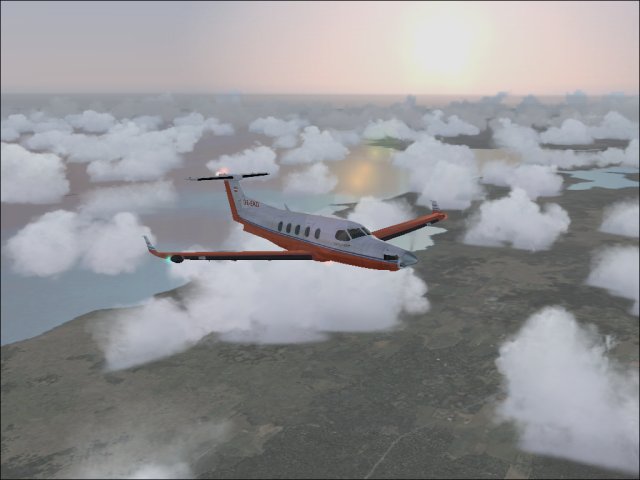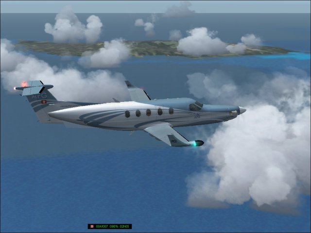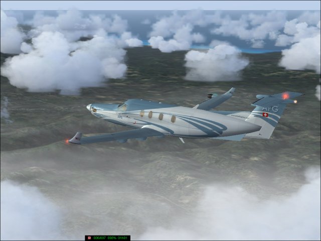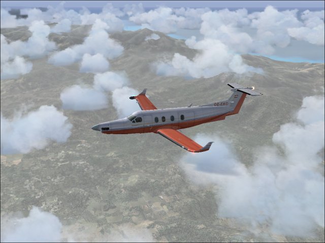 So, endlich wieder mit der Pilatus weitergeflogen. Nach den Reperaturen wurde auch noch neue Farbe aufgetragen. Dieses Muster (Rufzeichen ist OE-EKD, das KD steht für Kurt Durst, E ist die Flugzeugklasse) ist das einzige, das so auch real in Österreich stationiert ist (ausser dem Pilatus Werkshändler, aber der zählt IMHO nicht). Der Pilot Kurt Junghofer hat erst vor kurzem mit mir Kontakt aufgenommen und wird mich hoffentlich demnächst einmal mitnehmen. Zurück zum Flug, der Abflug in Port Haitien. Im Morgengrauen schleiche ich mich ganz heimlich durch die Hintertür aus der Krisenzone hinaus und schraube mich so schnell wie möglich auf 12.000 Fuss. Die Sicht ist miserabel, erst kurz vor Port au Prince kommt die Sonne heraus und bricht die Wolkendecke (1). Dann geht es weiter Richtung Westen nach Jamaica, zeitweise fliege ich da zwischen den Wolkendecken (2). Dann eingedreht nach Norden Richtung Cuba. Dort überfliege ich den Pico Turquino, mit 1994m der höchste Berg Cubas, westlich von Santiago de Cuba (3). Nachdem ich die Insel Richtung Norden überquert habe, gehts zum Landeanflug in Jardines Del Ray, einem kleinen Flughafen auf der Halbinsel östlich von Santa Clara (4). Sauber setze ich auf, diesmal sogar ohne ILS, nur VFR Bedingungen, das Wetter klart pünktlich zur Landung noch etwas auf. Holprig war es trotzdem (5). Trotz der langen Abstinenz habe ich noch alle Schalter und Knöpfe gefunden, bloss das GPS hat mir die ganze Zeit das Weiterschalten auf den nächsten Leg verweigert. Sonst gab es keine Schwierigkeiten. Ok, es war ein bisschen böeig beim Start, aber hey, nichts was einen aus der Ruhe bringen würde.