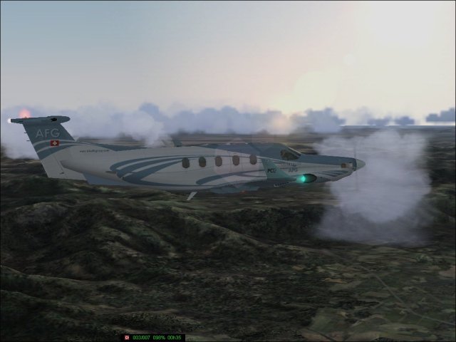 Na, das war ja heute was. Zuerst in San Juan lief noch alles super (1), ein bisschen Wolken, aber nur Schöne. Dann war eigentlich nichts Aufregendes, konnte mir in Ruhe die Landschaft ansehen (2,3,4). Kaum flieg ich in Haiti ein, geht der Teufel los. Warum sagt mir keiner dass das eine Kriegszone ist? Prompt werde ich auch schon beschossen. Zuerst der Tank, dann geht die HĂĽlle zu Bruch und zum Schluss muss auch noch die Hydraulik dran glauben. Trotzdem lande ich “Save” und krieg auch noch massig Punkte. Yeah, der Sonnenuntergang ist zwar schön (5), kann aber nicht ĂĽber die Schäden an meiner PC12 hinweg trösten.