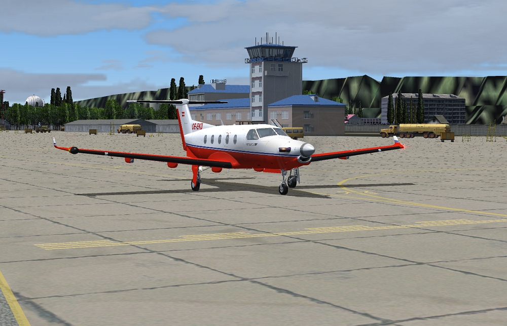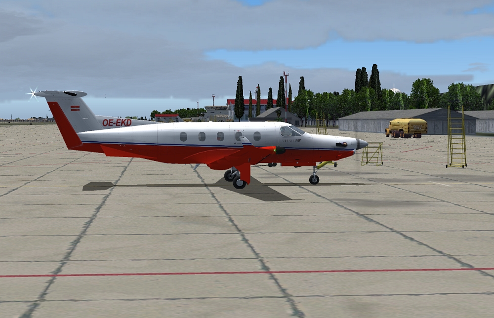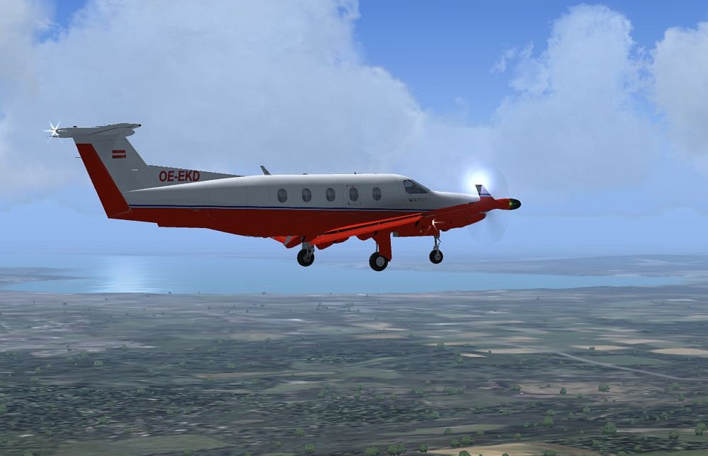 Die SID ist schnell geflogen und im Cruise auf FL240 ist nicht viel los, auch Wetterkapriolen gibt es keine. So bin ich schon sehr zeitig im Anflug auf den Balaton und das NDB Sarmellek. Tja, das DME zeigt aber leider nichts an, obwohl eines da sein sollte. Ebenso ist das, in der Chart verzeichnete, ILS nicht vorrätig. Also von Hand in die STAR und dort passiert mir wieder der gleiche Fehler wie unlängst. Beim Eindrehen vergesse ich auf den IAS Autopiloten und der ALT Autpilot zieht die Kiste im Turn bis zum Stall. Die Passagiere schreien nach den Tüten, aber ich habe die PC-12 gleich wieder unter Kontrolle und setze visual nach LHSM fort. Nach der Landung taxle ich zwischen den ganzen Bunkern zum Apron.