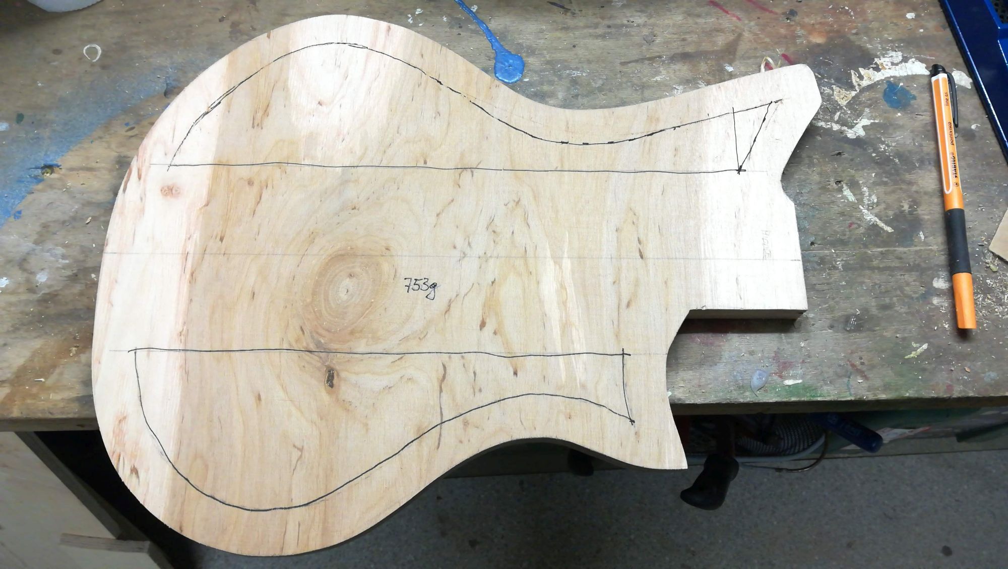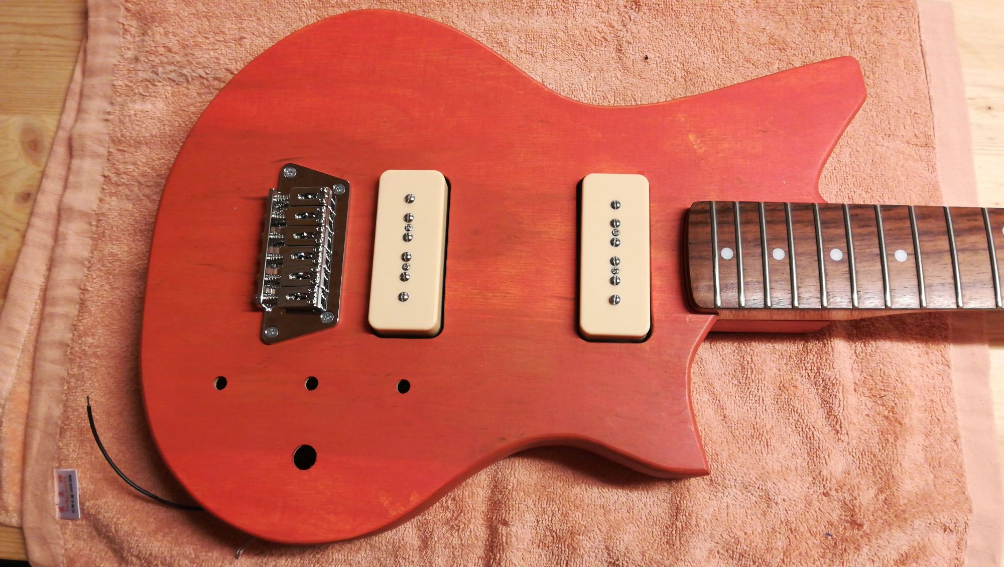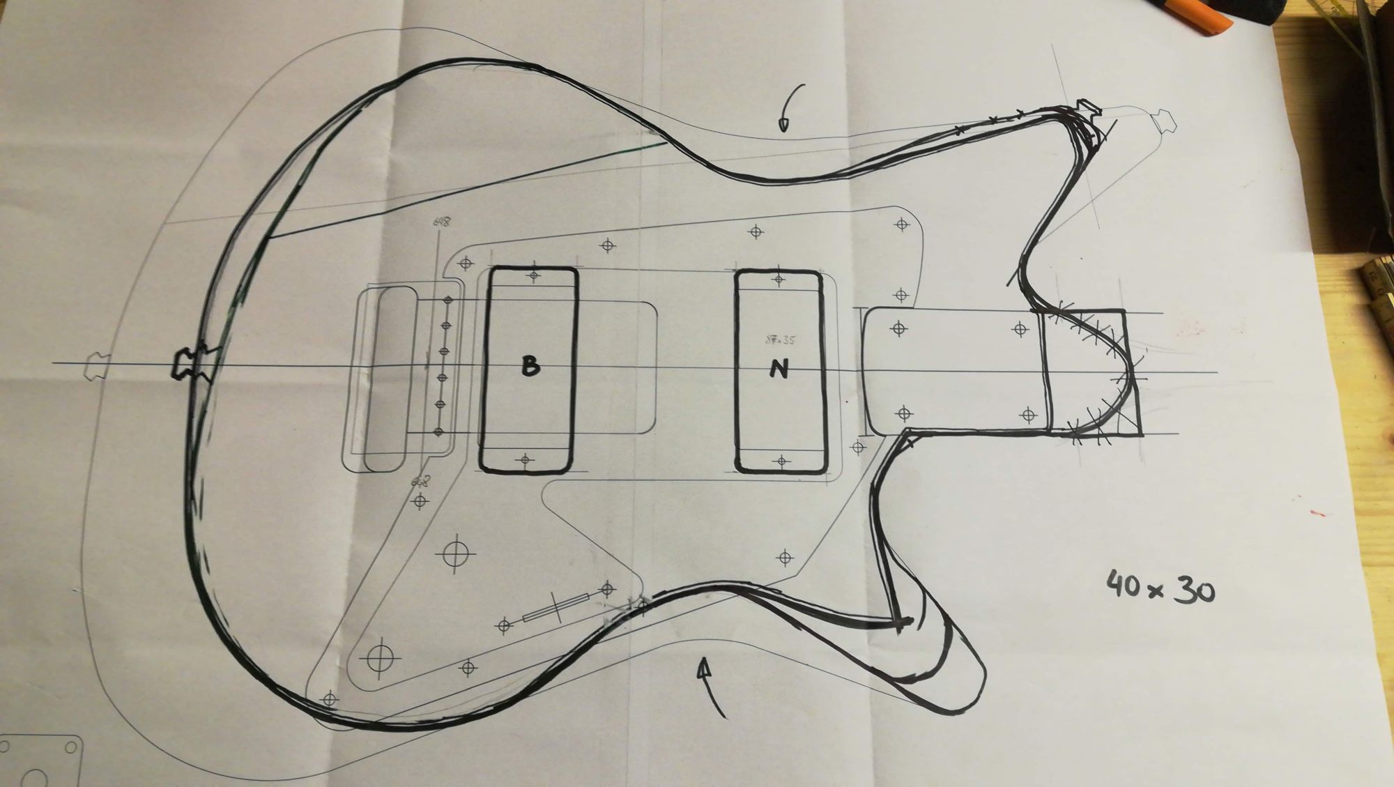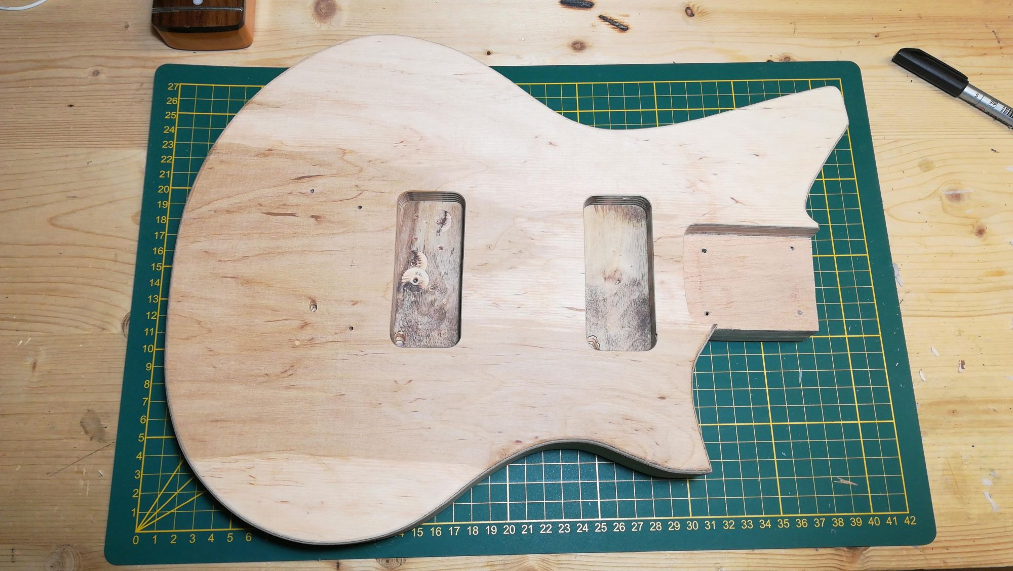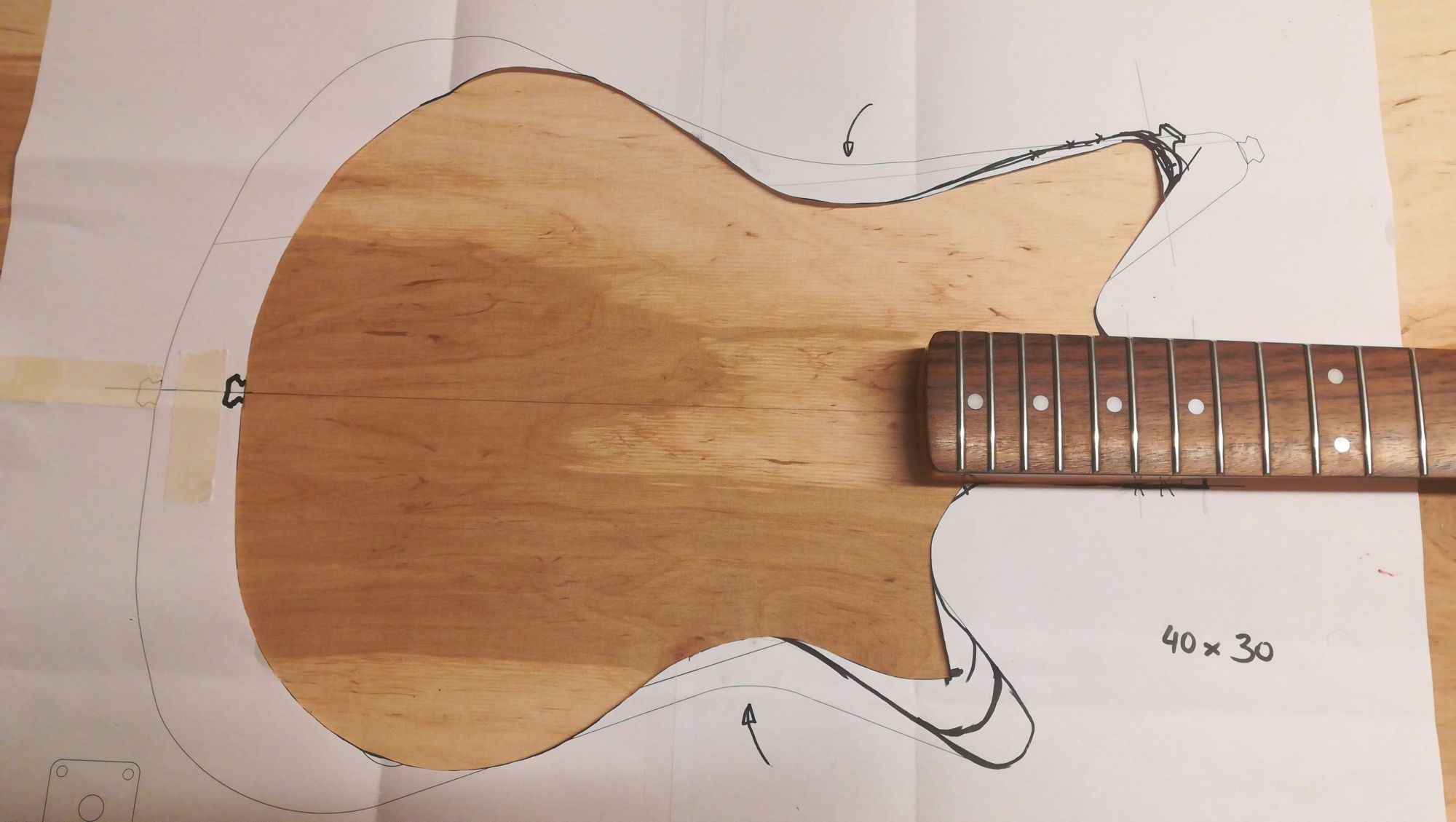 Project “Mars” So far, I had built some Workshop guitars. This one I made from scratch, only the neck was prefabricated. The body was made from birch plywood. It is a very small guitar, comparable to a music man or blueshawk.