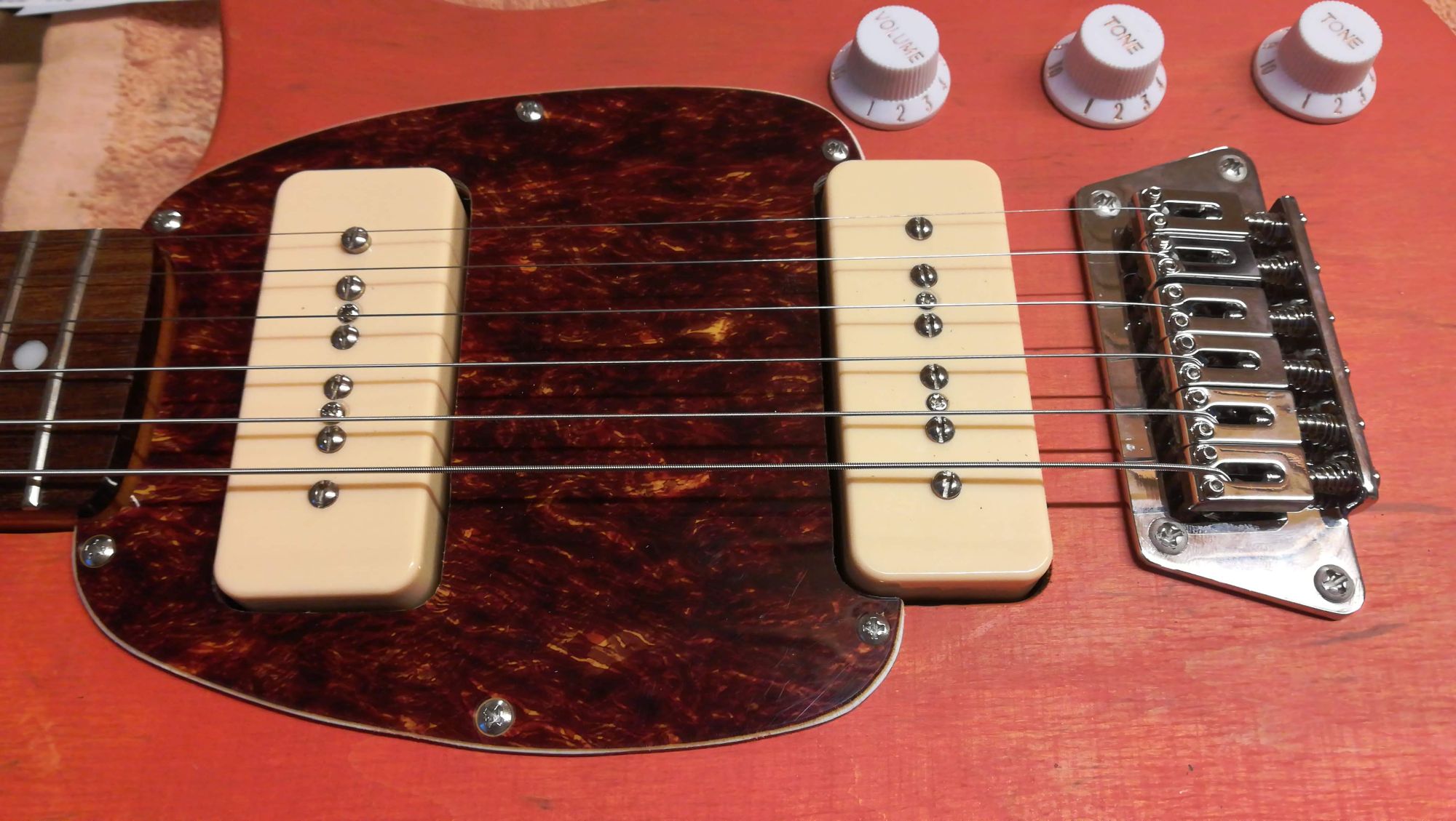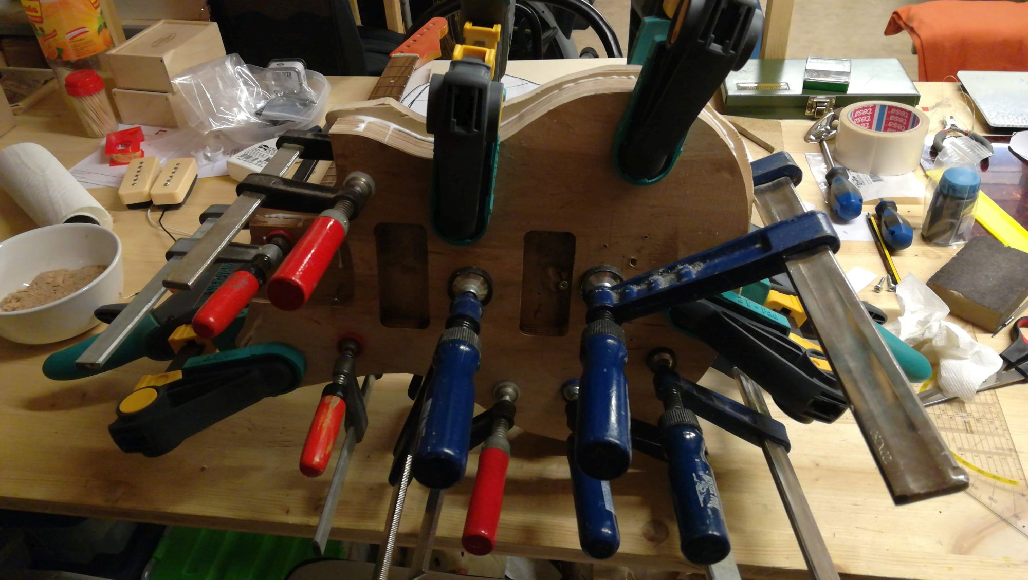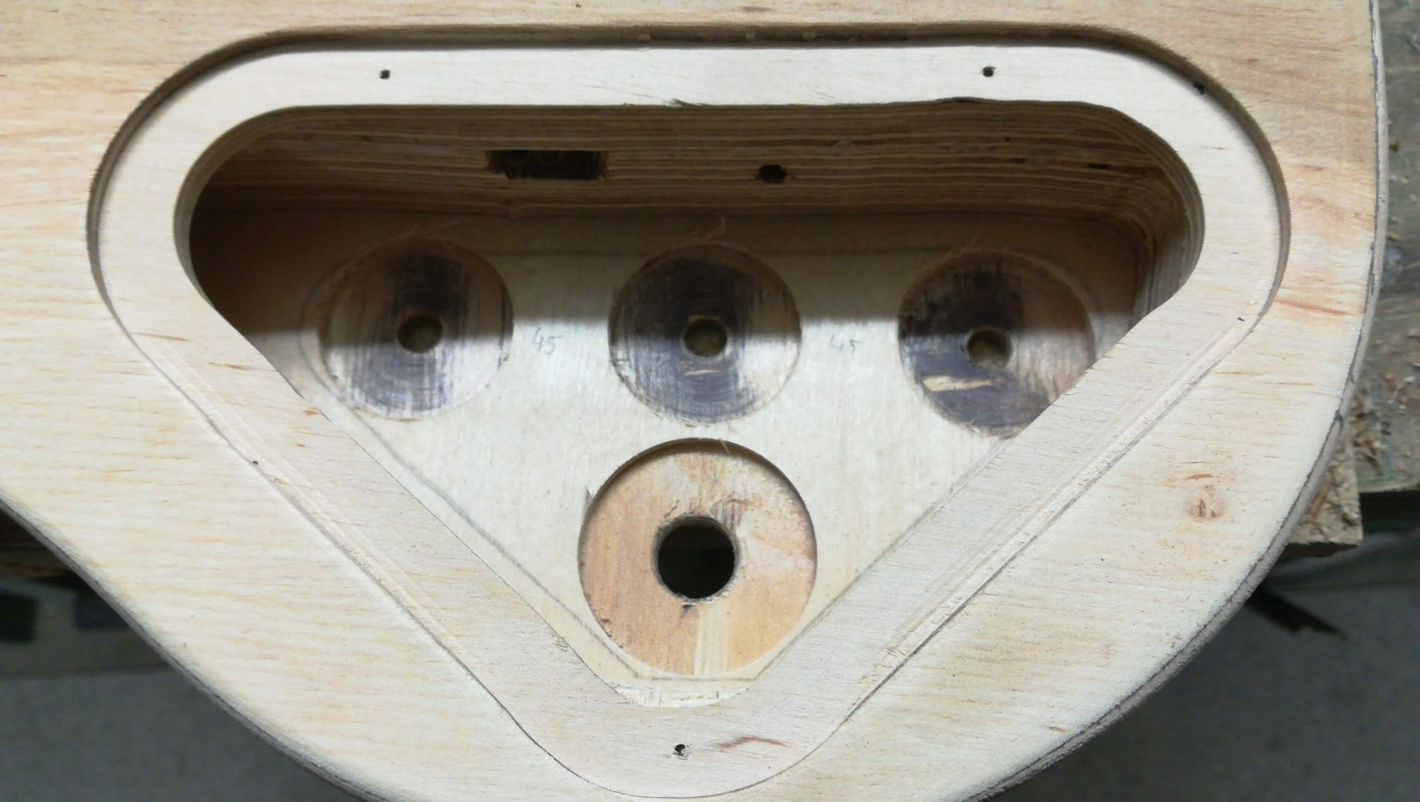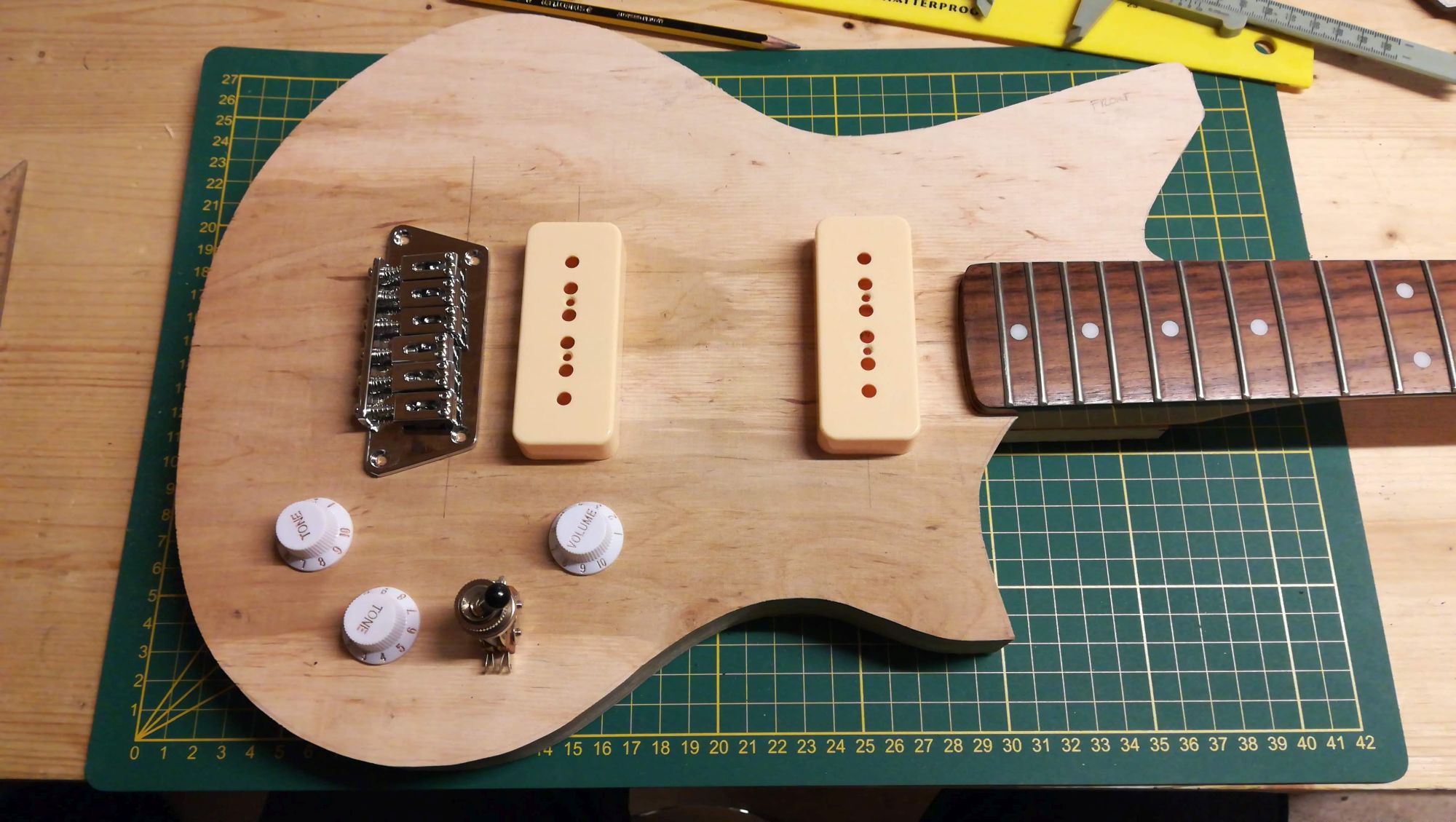 Project “Mars” So far, I had built some Workshop guitars. This one I made from scratch, only the neck was prefabricated. The body was made from birch plywood. It is a very small guitar, comparable to a music man or blueshawk.