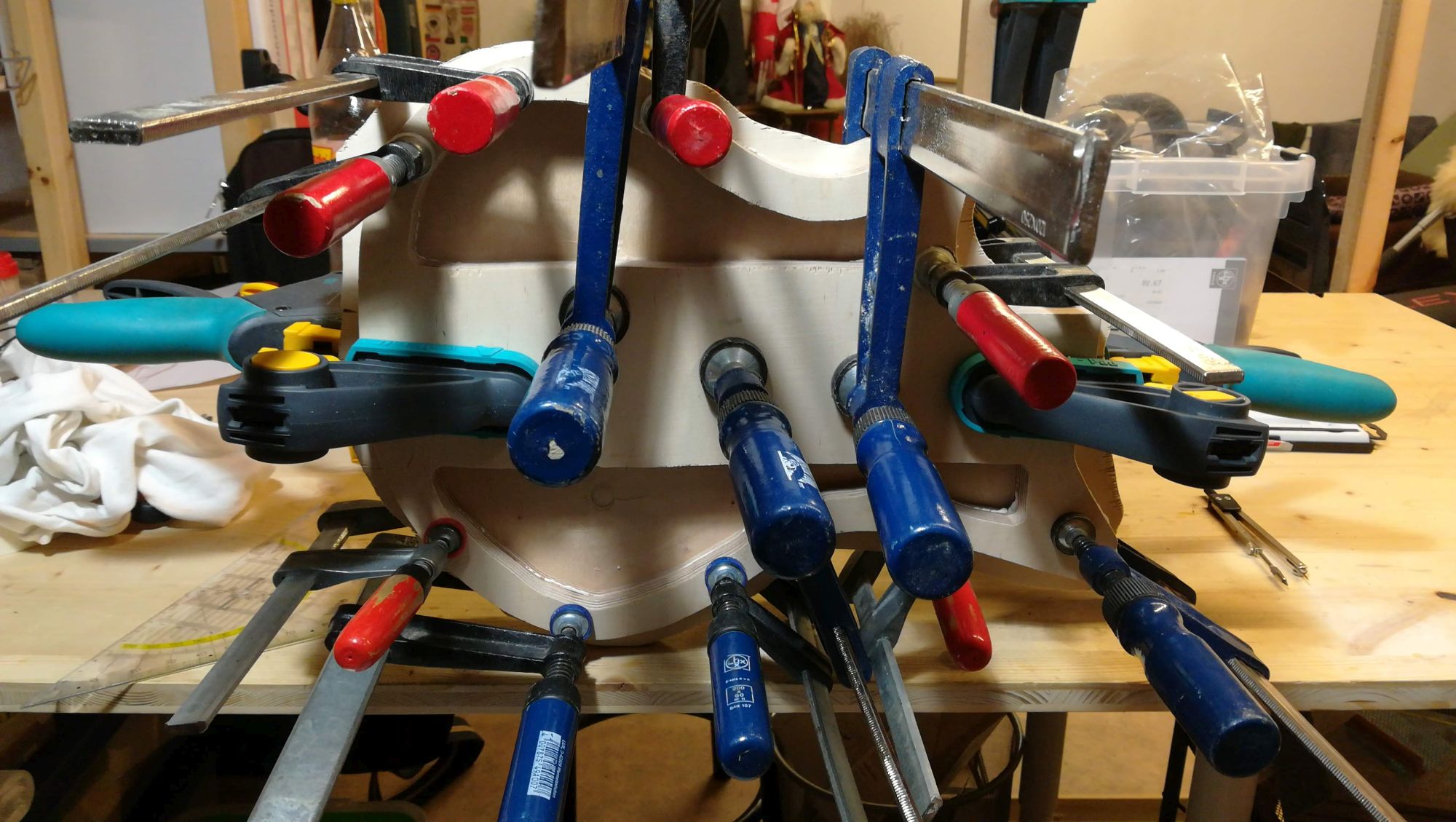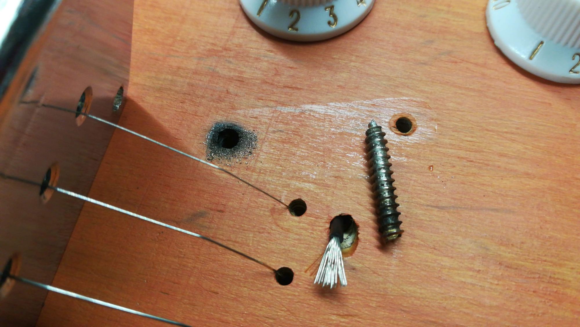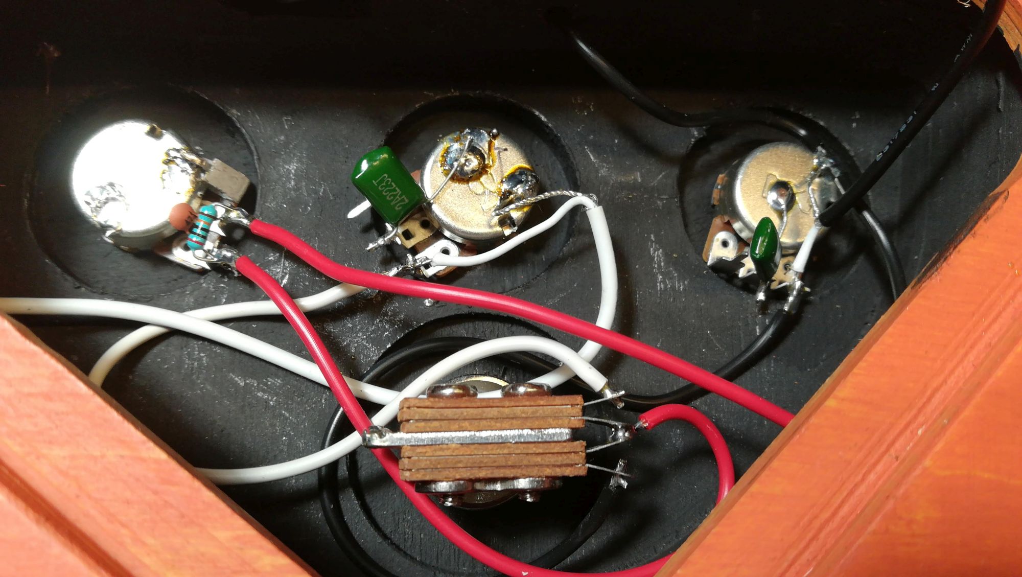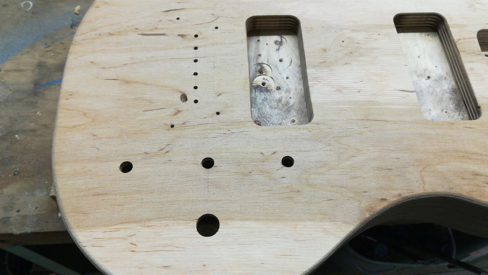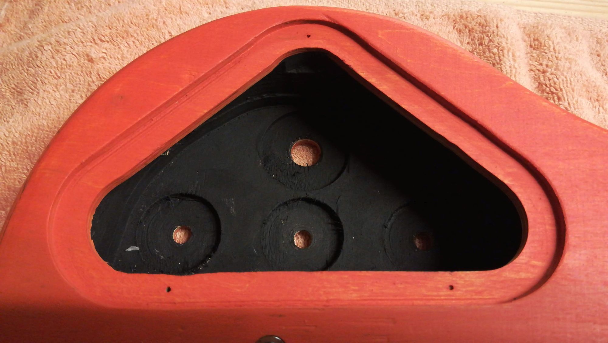 Project “Mars” So far, I had built some Workshop guitars. This one I made from scratch, only the neck was prefabricated. The body was made from birch plywood. It is a very small guitar, comparable to a music man or blueshawk.