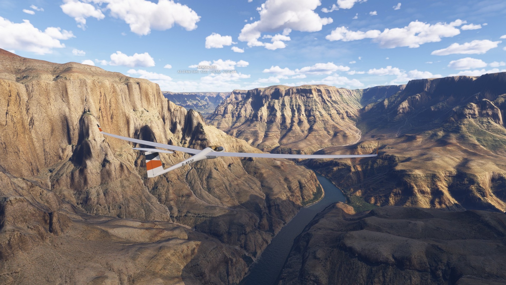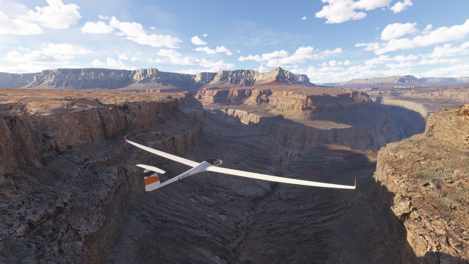 Later on the tour, the winds got more unpredictable and near the end even treacherous. Chergo clipped a rock with his wing and was down right before the last checkpoint. I made it to the finish line (just) and found myself bobbing at 4000ft but the destination airport was outside the canyon at 8000ft. I tried to find an uplift for nearly half an hour before I finally ran out of space and had to crash land in the canyon.