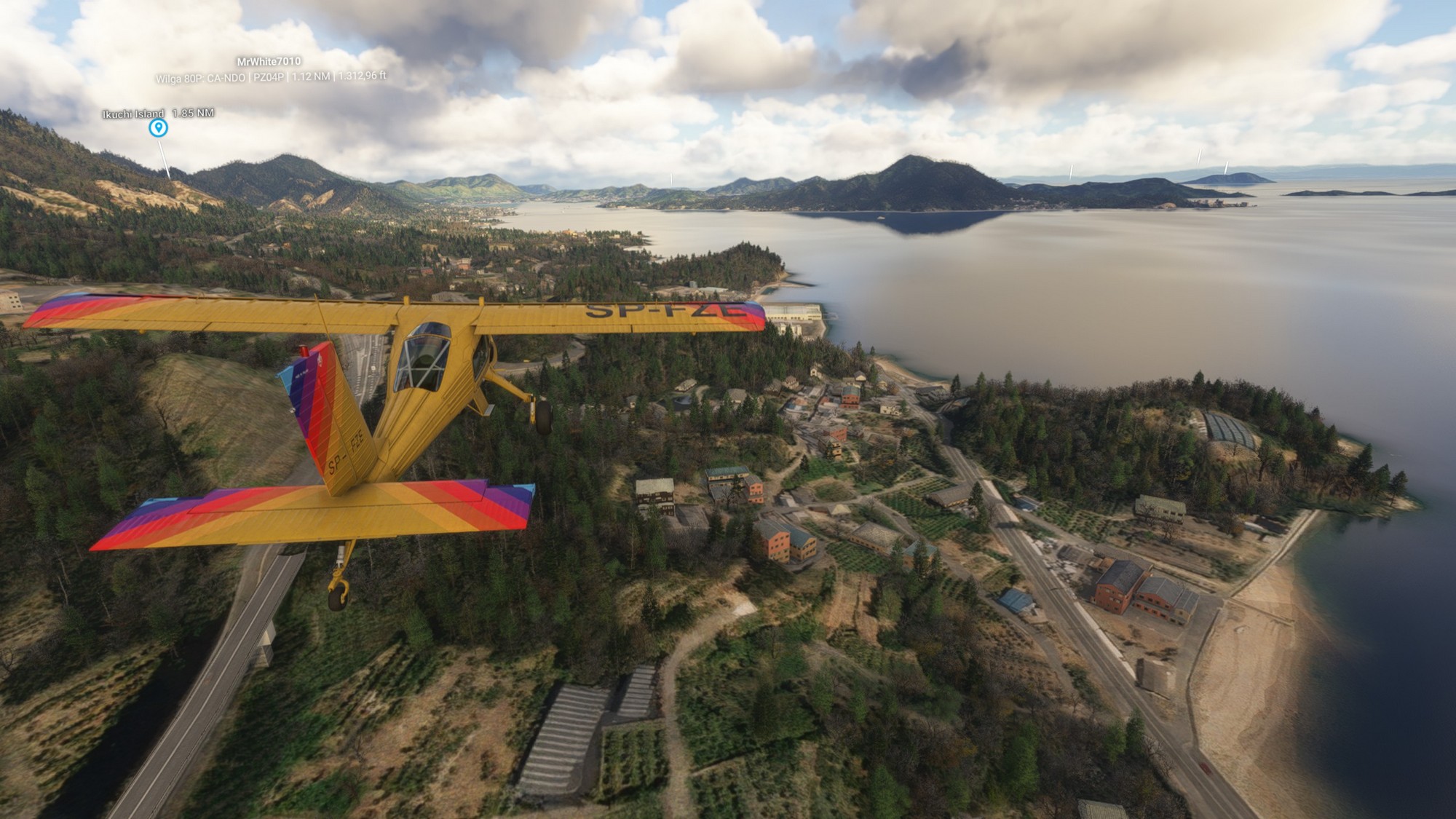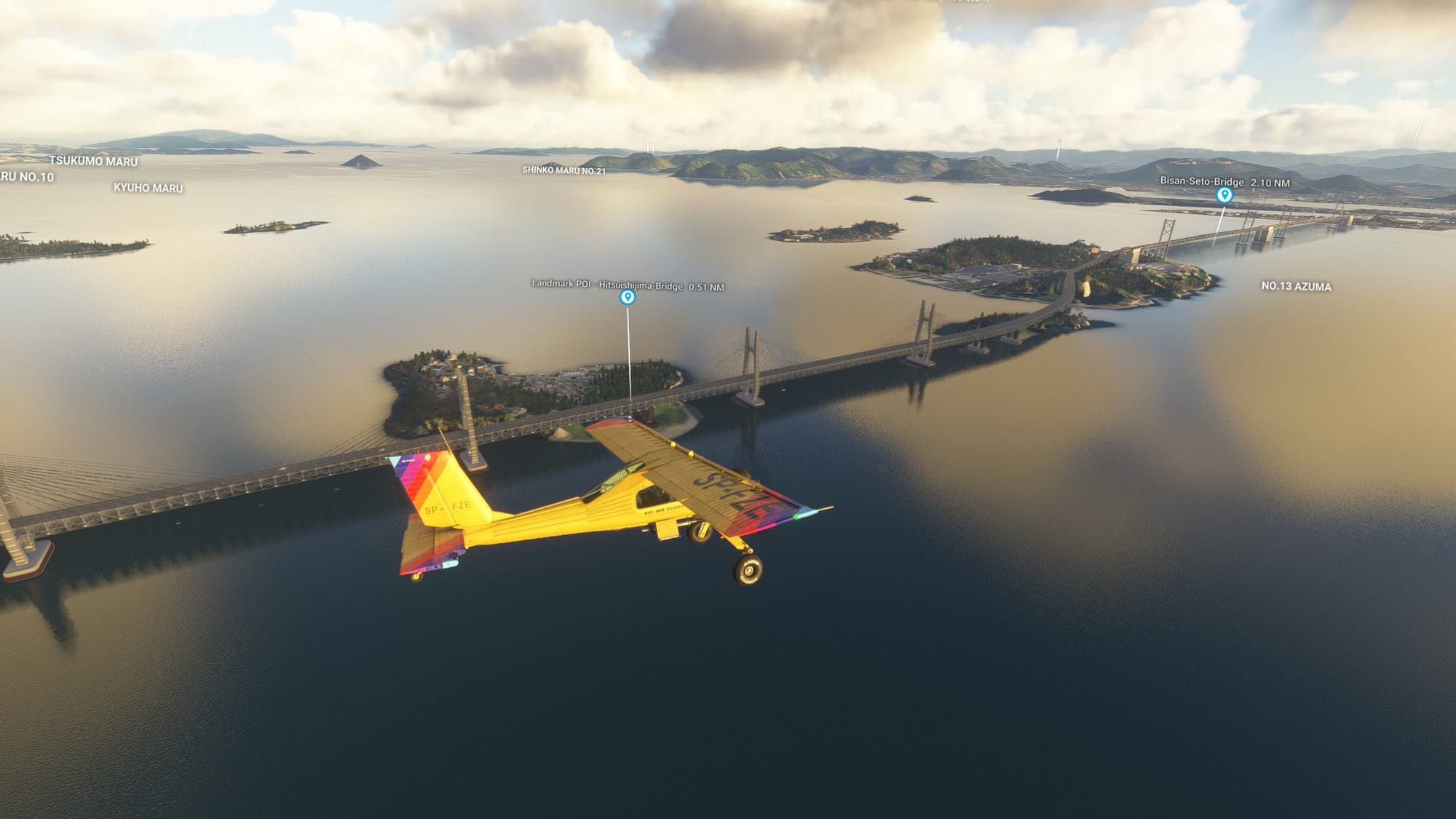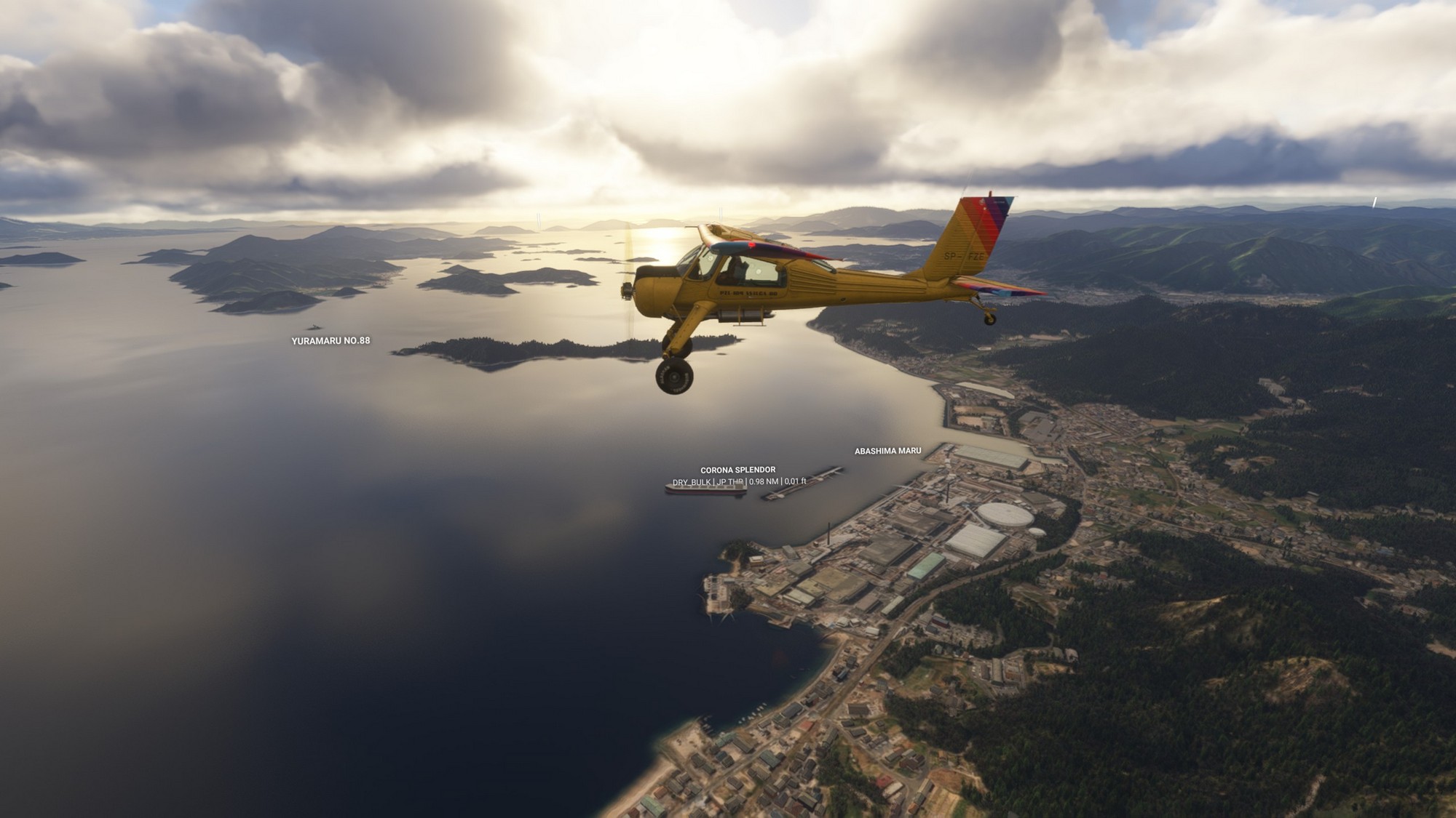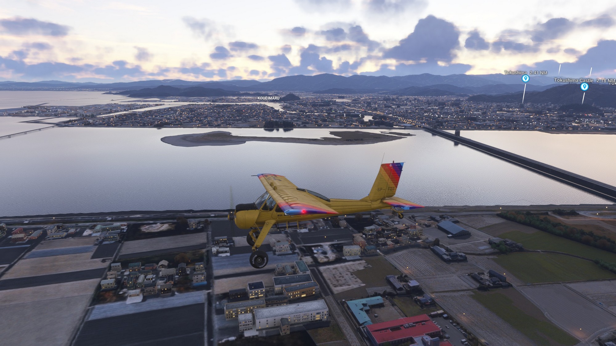 We continued along the highway towards Ikuchi bridge (forming the Nishiseto Expressway together with Tatara bridge) and then further to Fukuyama Castle. In contrast to most castles in Japan taken down during the Edo period, this one is intact. Exiting Fukuyama we passed over Kokancho harbour, greatly detailed down to the coal basins. In general, this part of Japan seems to look great in MSFS2024 with very highly detailed photgrammetry.