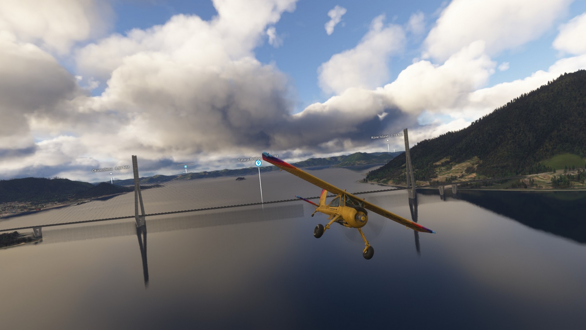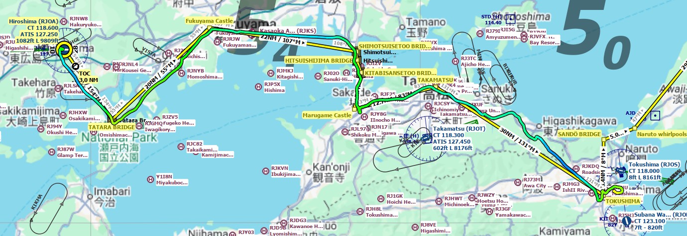 On this flight we (Chergo scouted another great route, this time over the Seto Inland sea in Japan) took off from Hiroshima and continued our trip East. First up was Tatara bridge spanning 980m, making it the longest suspension bridge in the world at the time of opening.