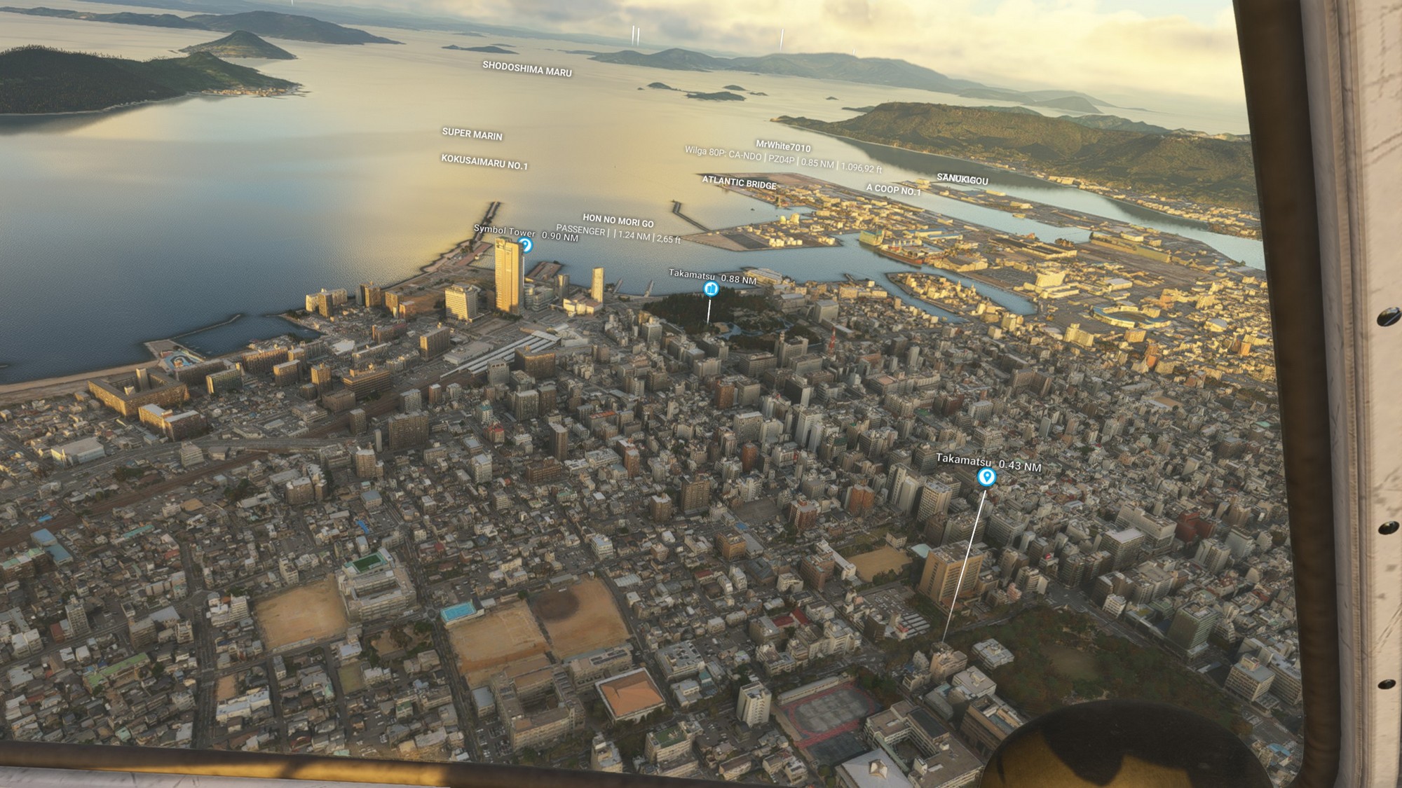 In general, this part of Japan seems to look great in MSFS2024 with very highly detailed photgrammetry. The next city proved this point as we overflew Takamatsu with its Symbol tower standing at 151m tall.
